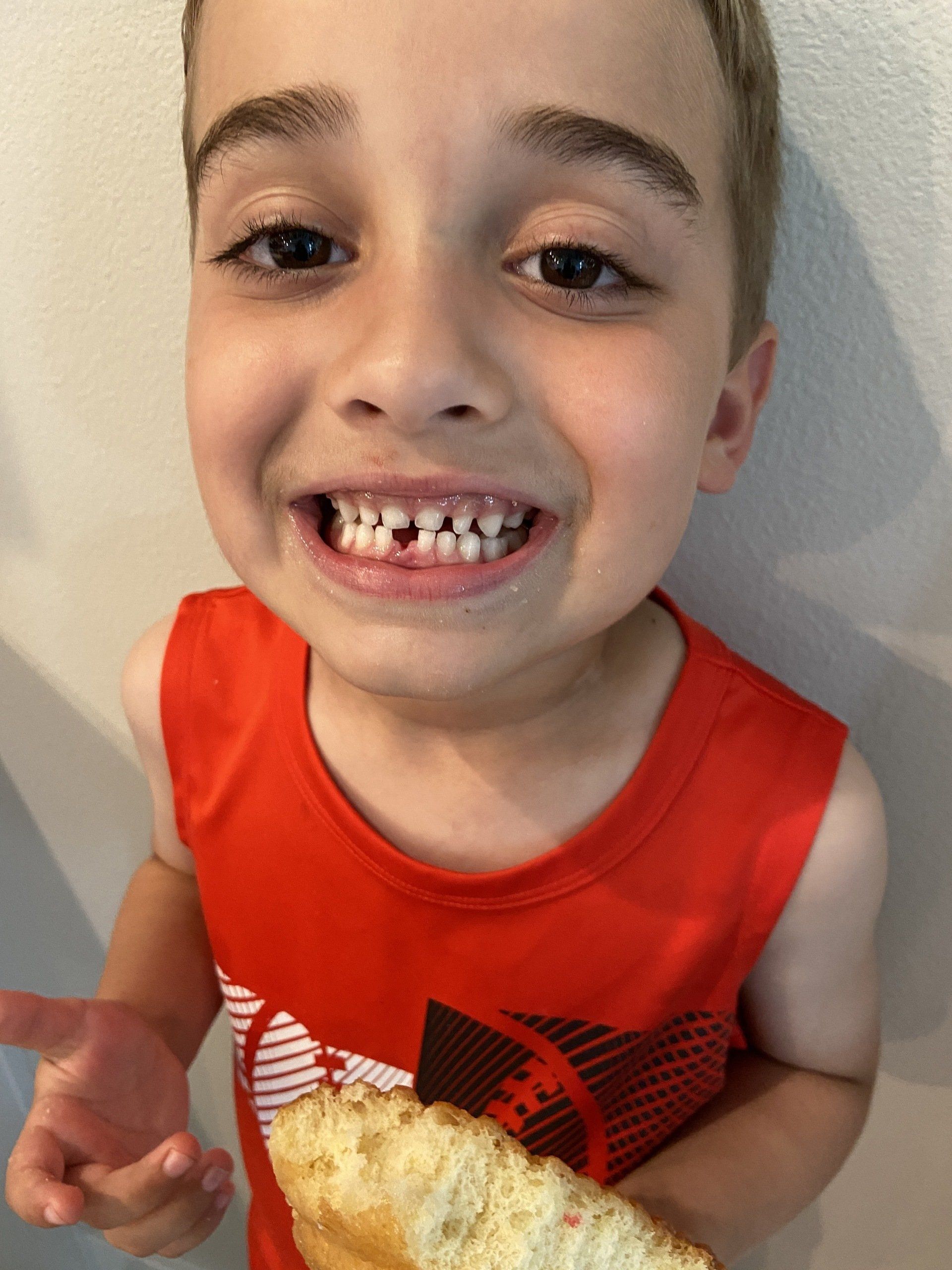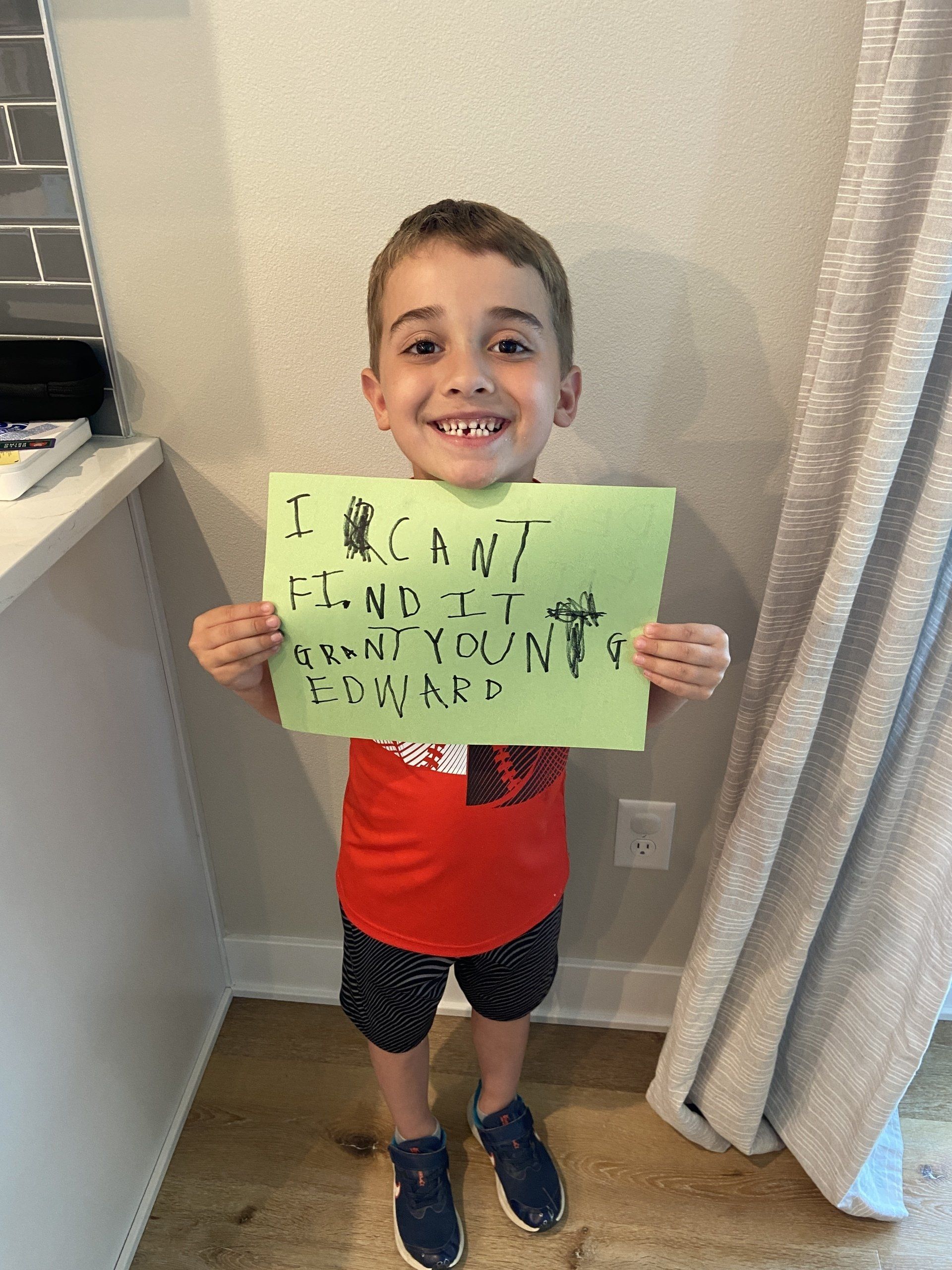 Grant lost his first tooth!!! It had been wiggly for a few weeks but we thought it would be a few more weeks until it fell out. Dad took him to get a donut one day during nap time and it came out when he took a bite of his donut. We never found it! So, of course, we had to write a note to the tooth fairy so they knew he lost his tooth. She gave him $5 for his first tooth.