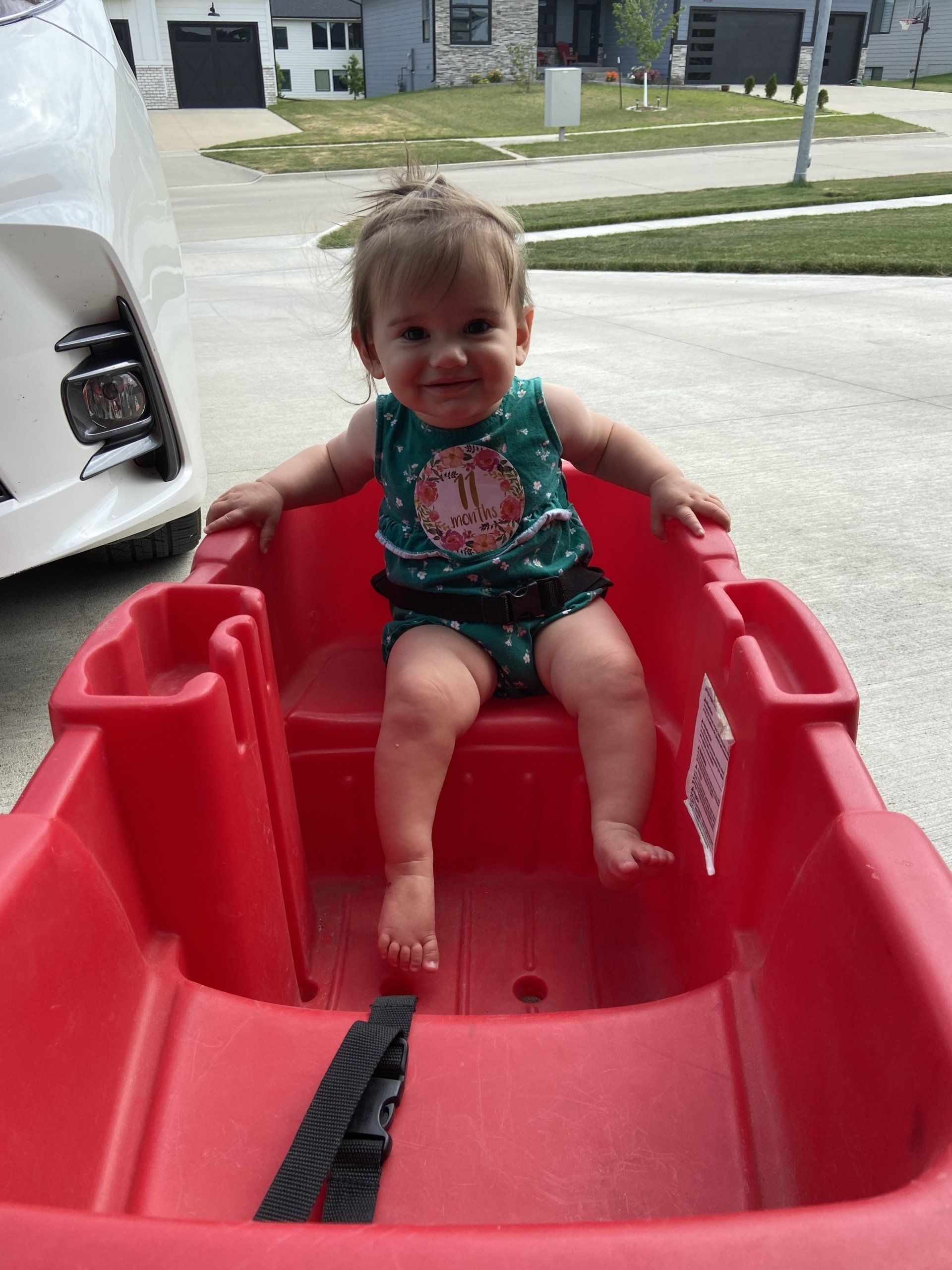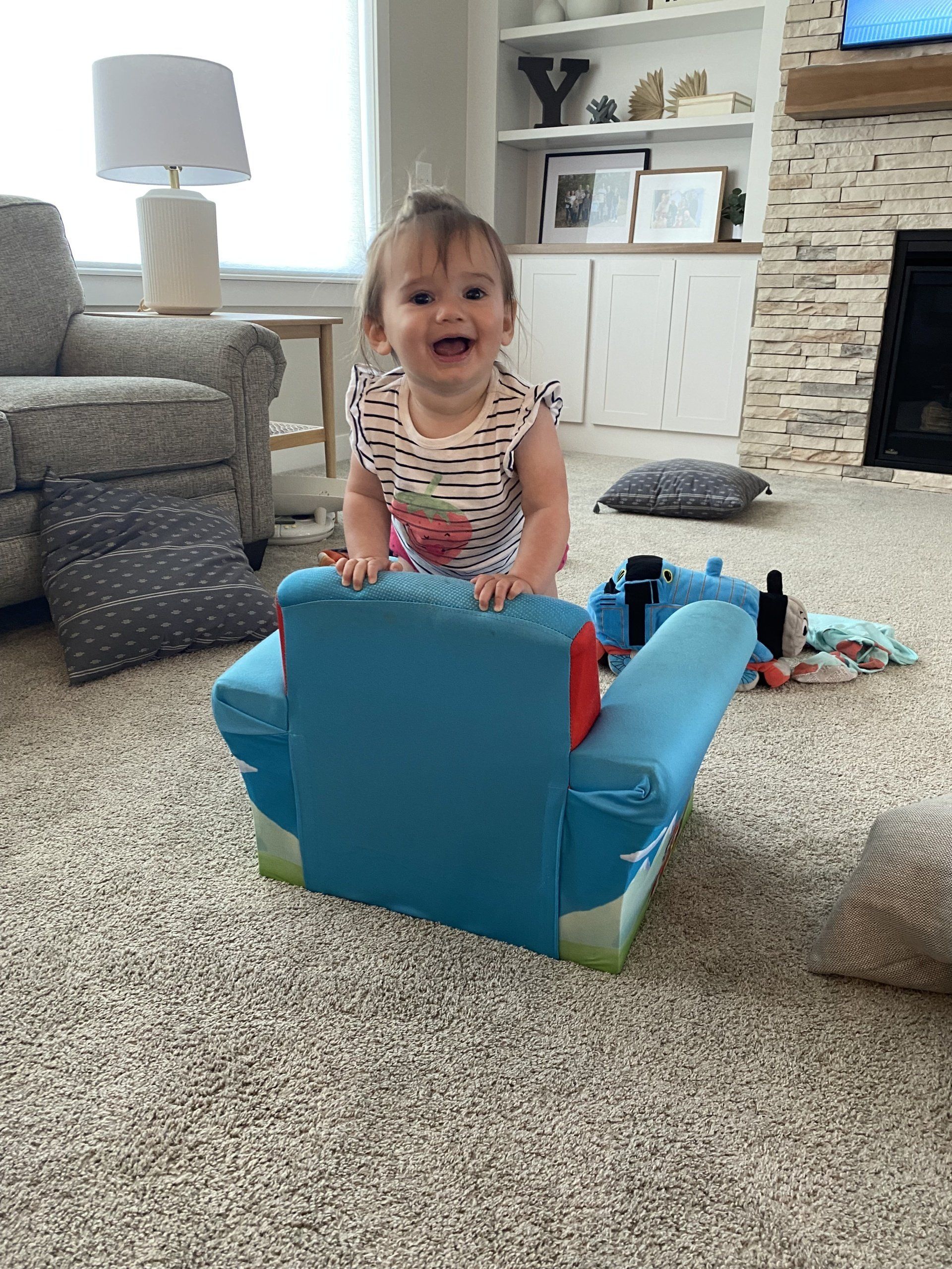 Claire loves Encanto and her chair. So cute to watch her crawl right up to it and sit in it and watch TV. She also went on her first wagon ride and loved it!