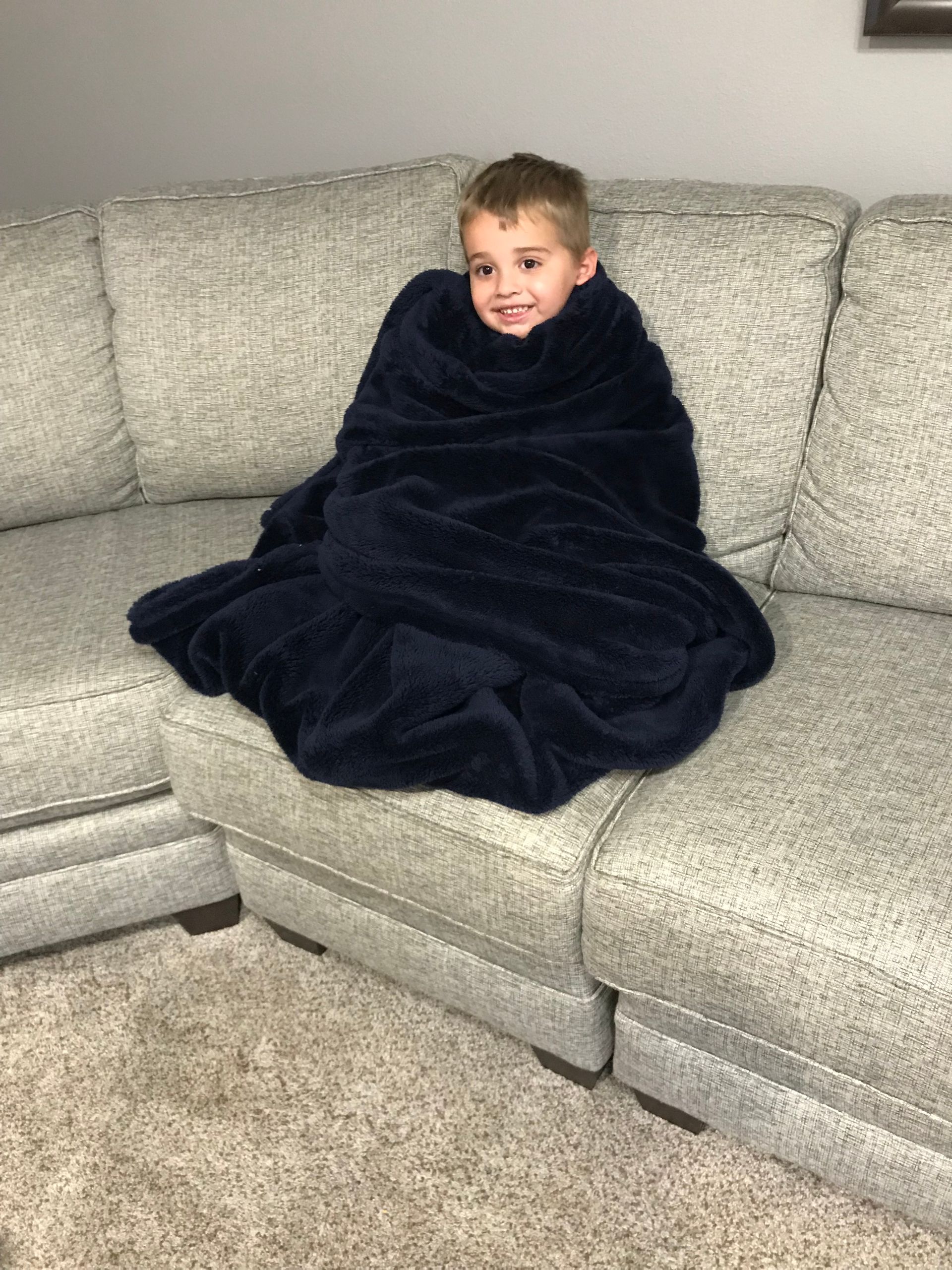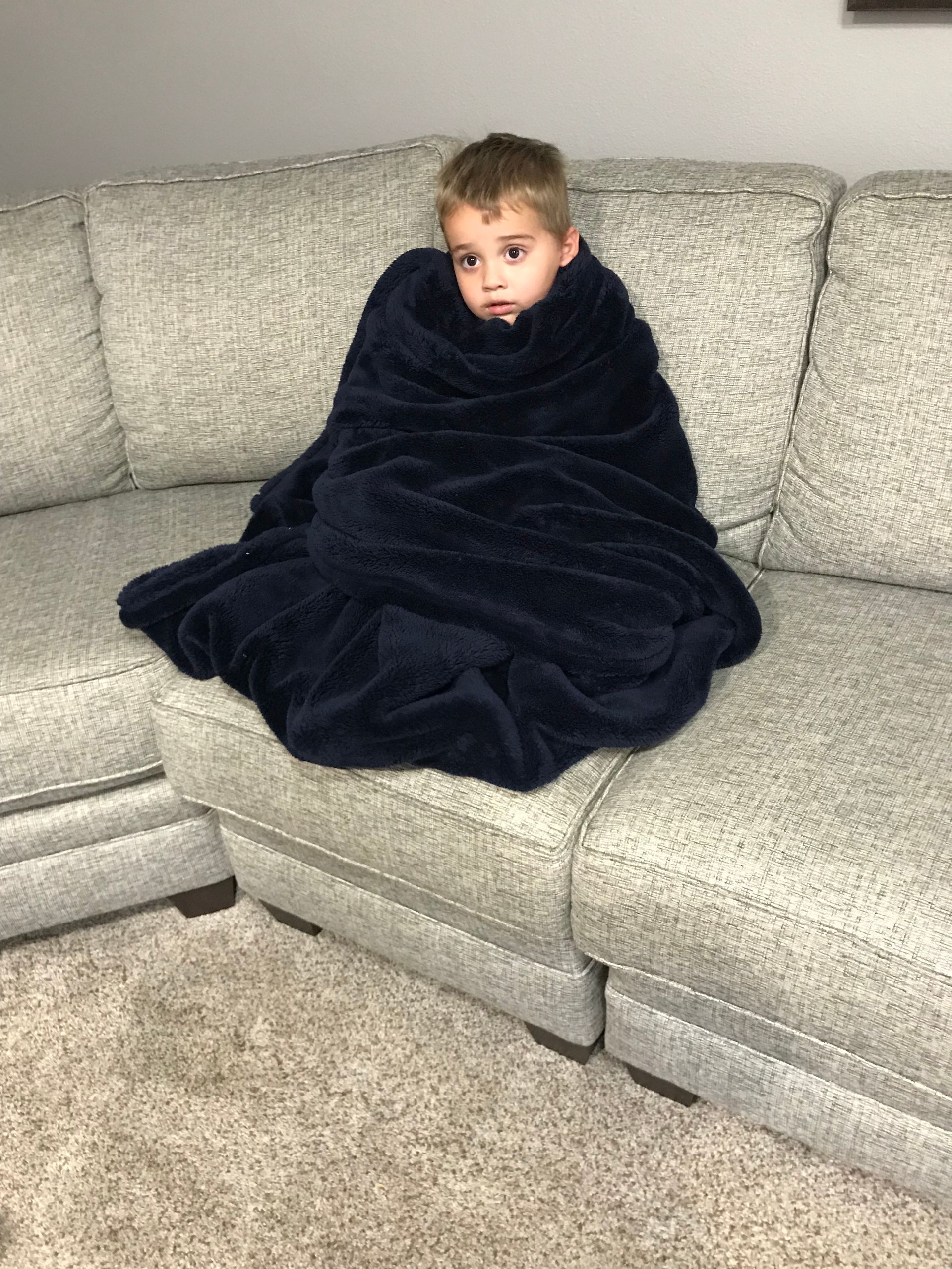 Grant was all wrapped up in a blanket watching TV and he looked so cute so I had to take a picture.