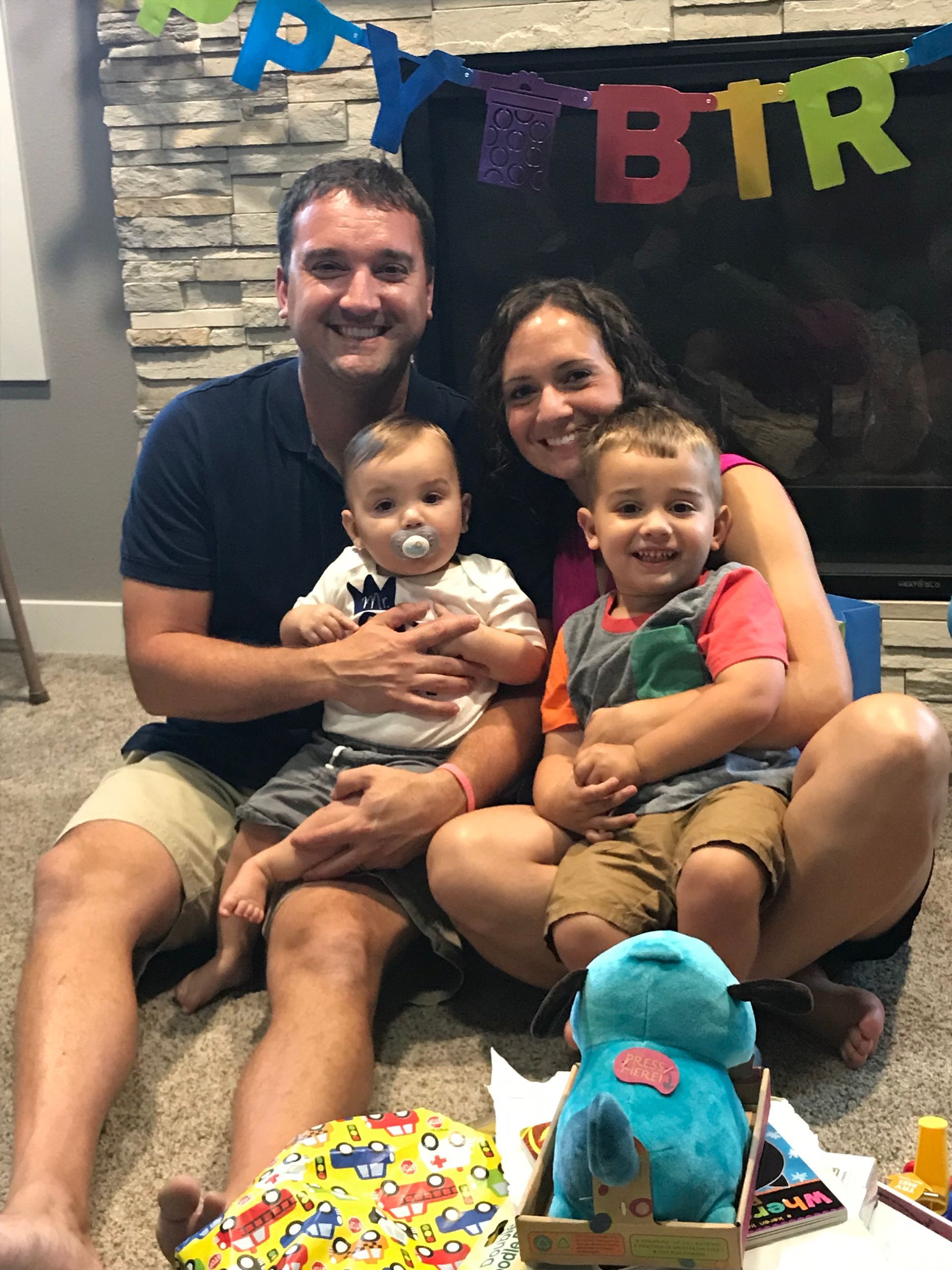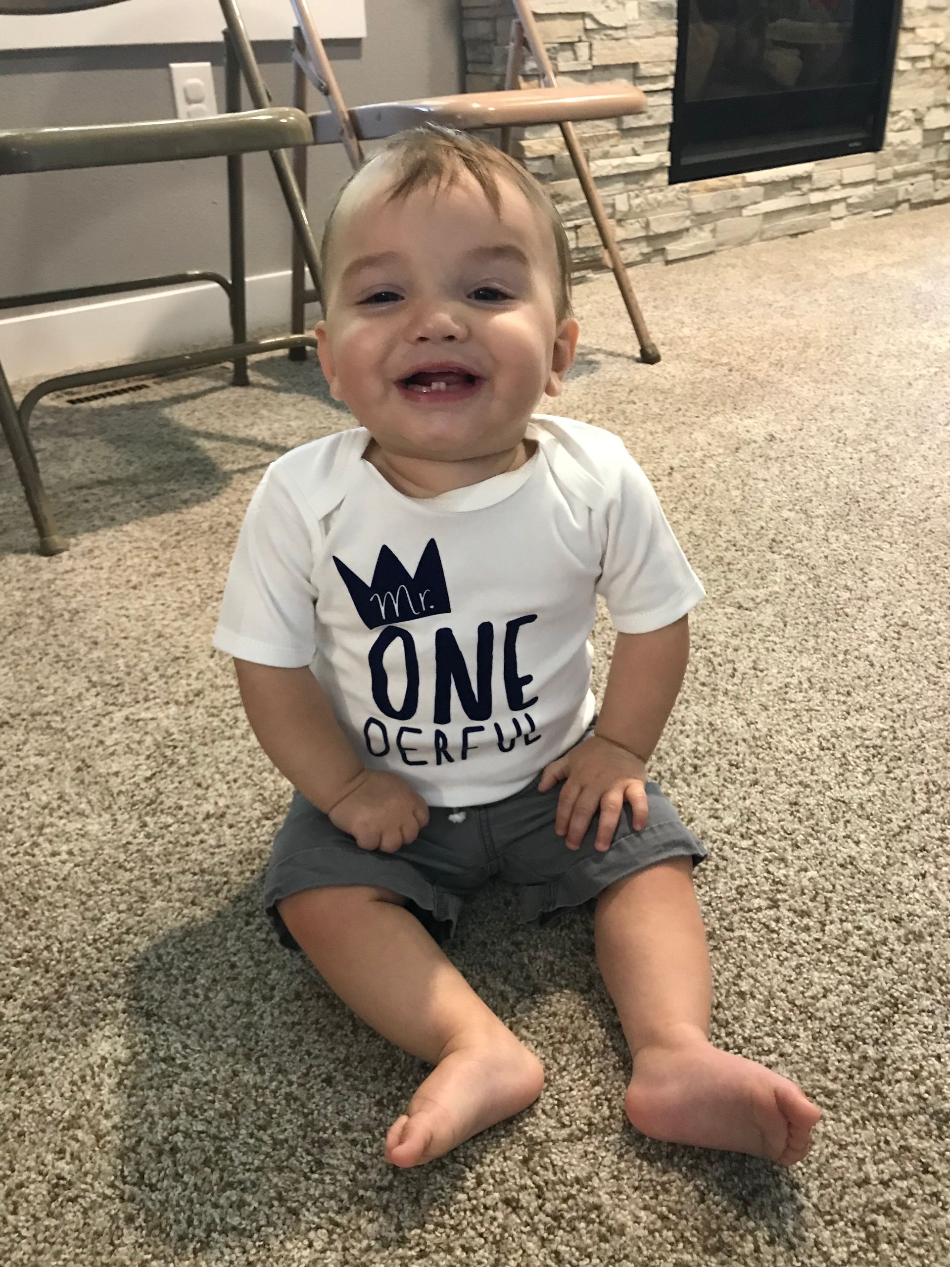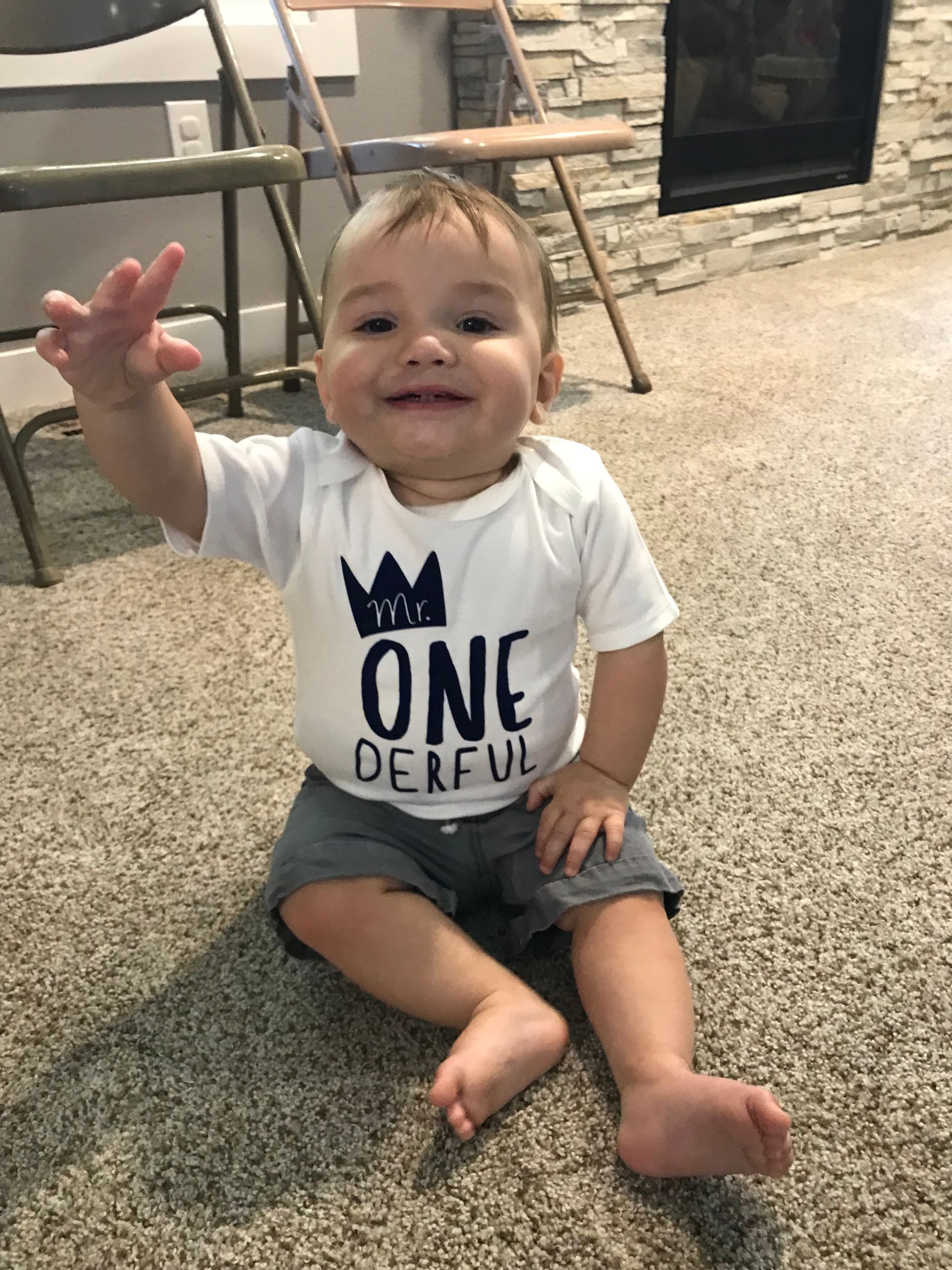 Blake is 1 year old! It has been one rough year with Blake but we hope year 2 is better! He has been SO sick this whole year with little sleep and so many challenges but we love him so much. He is almost walking, done with bottles and pacifiers. He loves his brother the most and Grant is one of the only ones who makes him belly laugh. Blake has the best laugh and we always try to get Grant to make him laugh just so we can hear it. He weights , height, head. Happy Birthday my sweet Blakey boy!