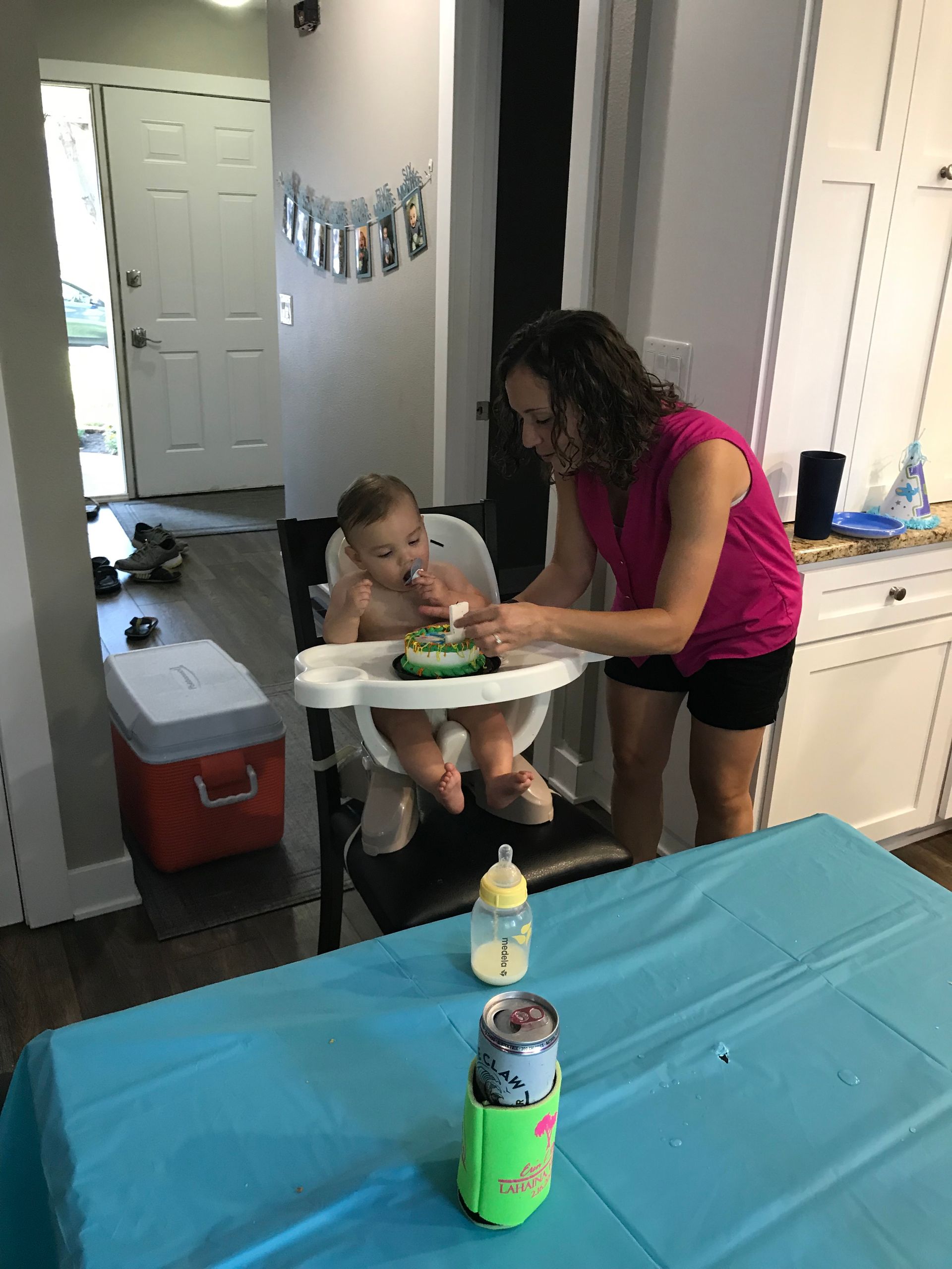 Then we went home to clean and set up for Blake's birthday party!!! We can't believe he is one year old already! He loved his birthday, the presents and the cake. He was so sick on his first birthday. He had a virus and thrush. Because of this thrush, his pacifier and bottle will be gone on his birthday so we don't have to boil the nipples after each time it goes in his mouth. He does great with the sippy cup and wants to be just like his brother so I think he will transition well.