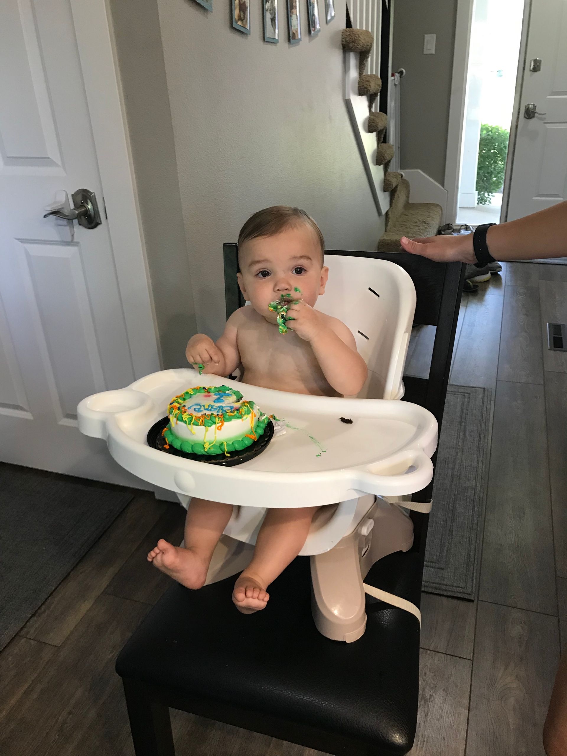 This is Blake on his birthday not happy about being trapped! Good thing that gate is steady!