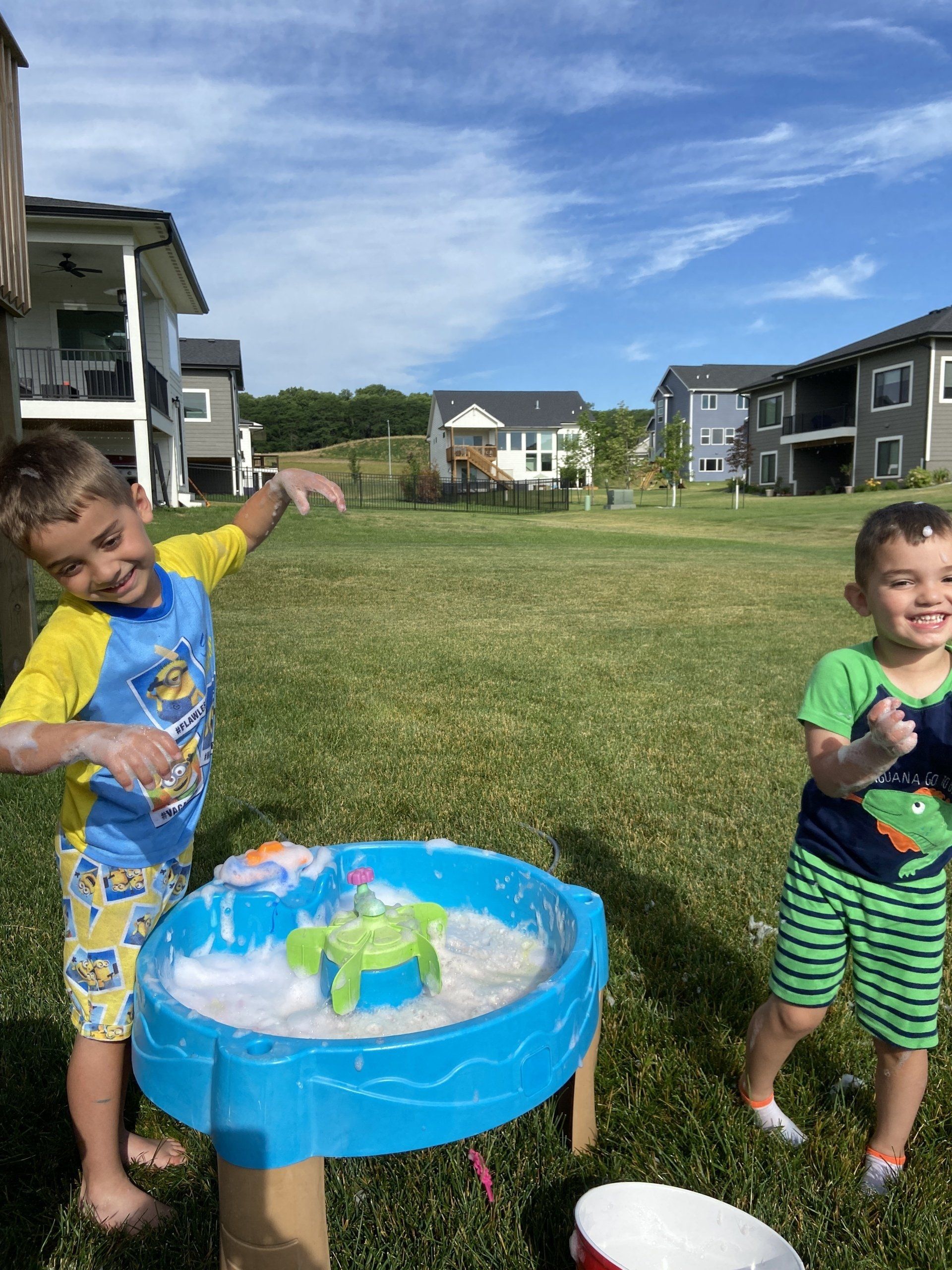 Good ol' instagram saved me when the boys were bored and looking for something to do. We made bubble foam. They had fun making, playing and mixing the different color foam. It kept them busy for just a short while but it was fun!