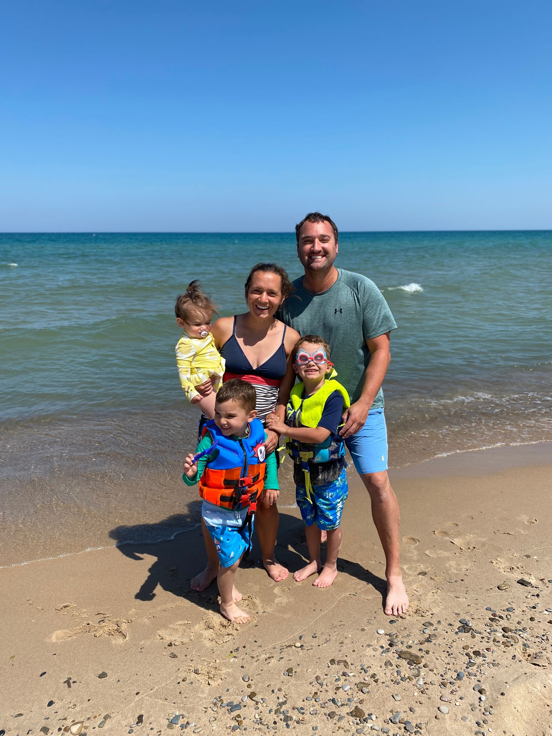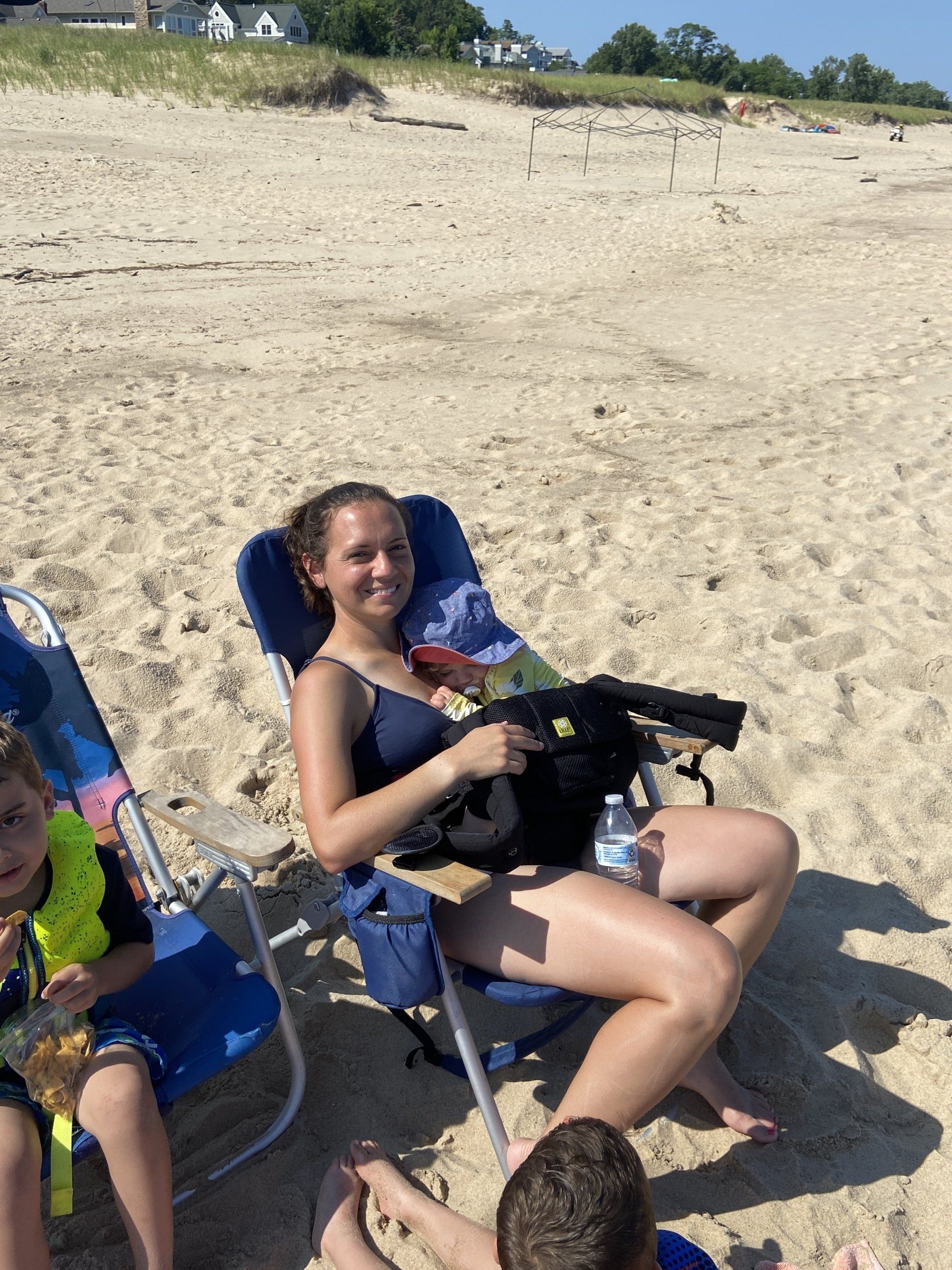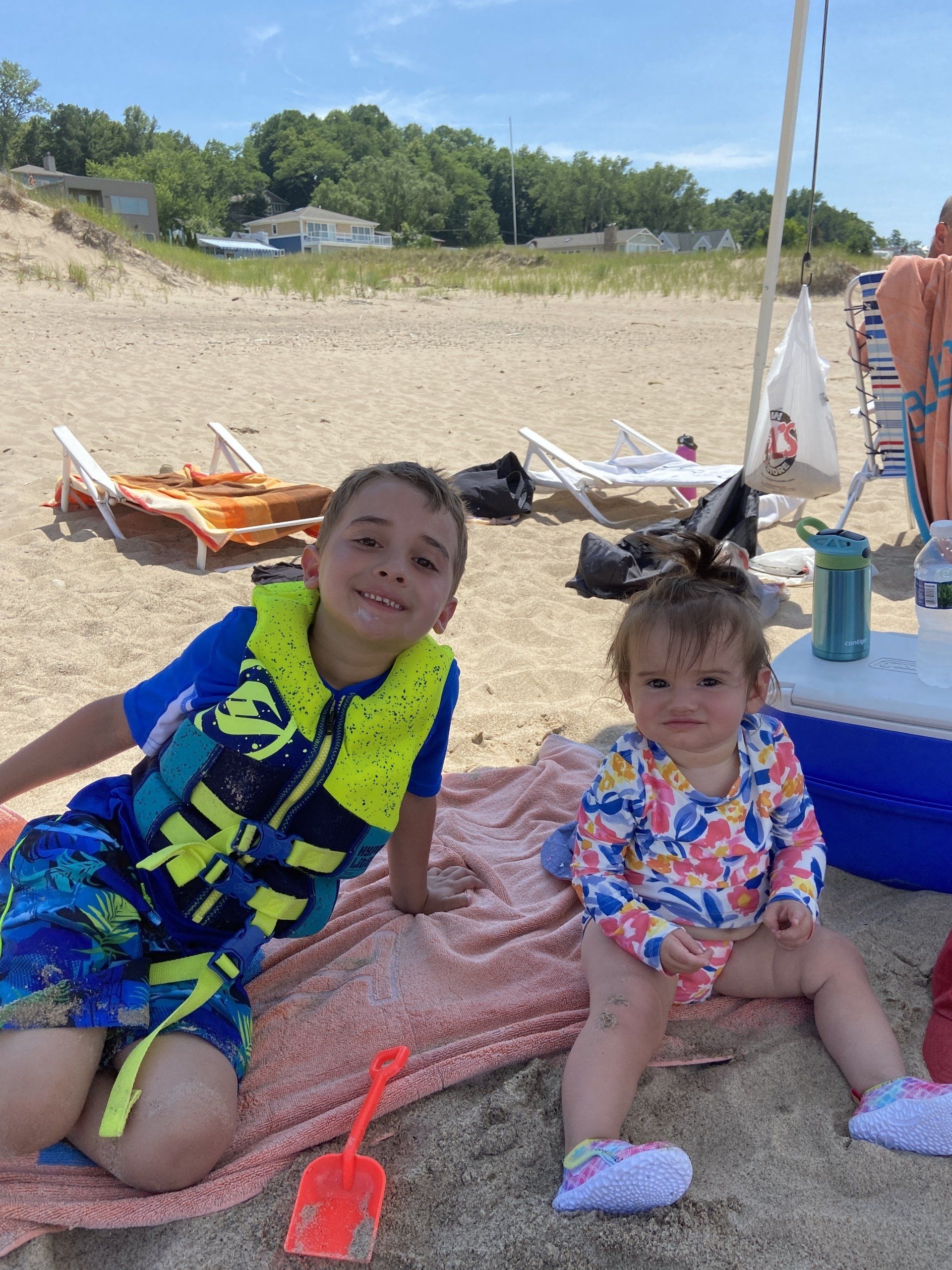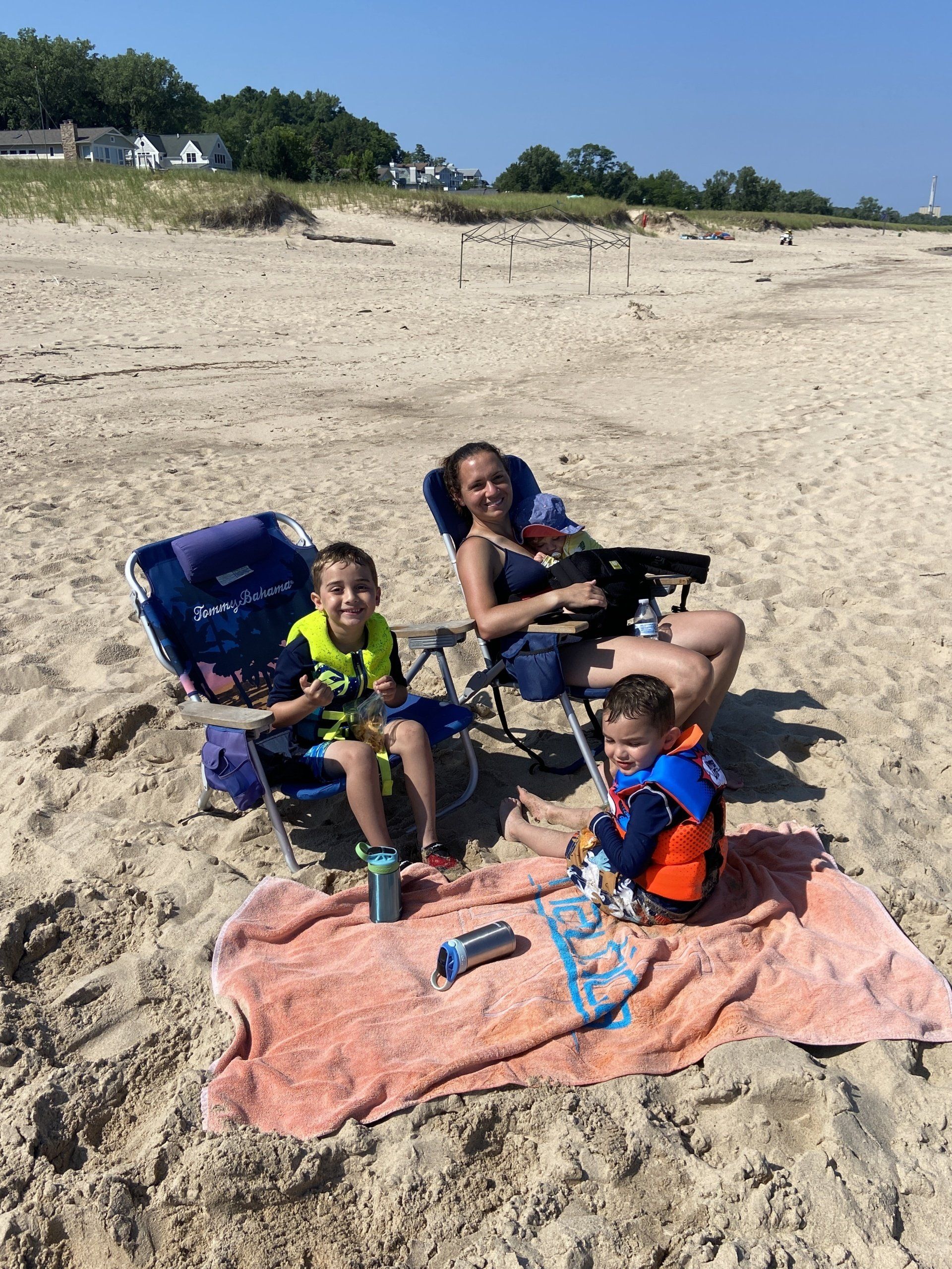 We went to Lake Michigan this year and I was so excited to go since we weren't able to go last year. It was a big adventure for us taking all 3 kids on a vacation and dealing with Blake's specific diet needs. We were nervous with how the kids would handle the drive and change but the kids loved it. We haven't traveled much so this was a big step. We rented our own house which was nice since we were worried about Blake's food and nap/sleeping schedules. Grant LOVED the lake and wanted to spend every minute there. Claire slept great which we were surprised but happy about! Blake ended up getting sick half way through the week with GI symptoms but I considered it a successful week! We went to the train museum which was fun. One of the trains was loud so that scared Blake, but we still had fun. Uncle Jeff took us to visit one of his firefighting friends and the boys got to see the firetrucks. Super cool!The weather was perfect for us. We took the kids to Oinks one evening and found some dairy free ice cream so we all could enjoy! The first weekend was cloudy and humid which was great so we could go to the beach and not worry too much about our kids getting too hot. The sun came out the rest of the week and we went in the morning so it was not too bad. We would take Grant back to the beach in the afternoon when the other kids were sleeping. Claire took her morning nap on Greg or I and I honestly loved those naps watching all my boys play in the water while holding Claire and watching the lake. Absolutely perfect!