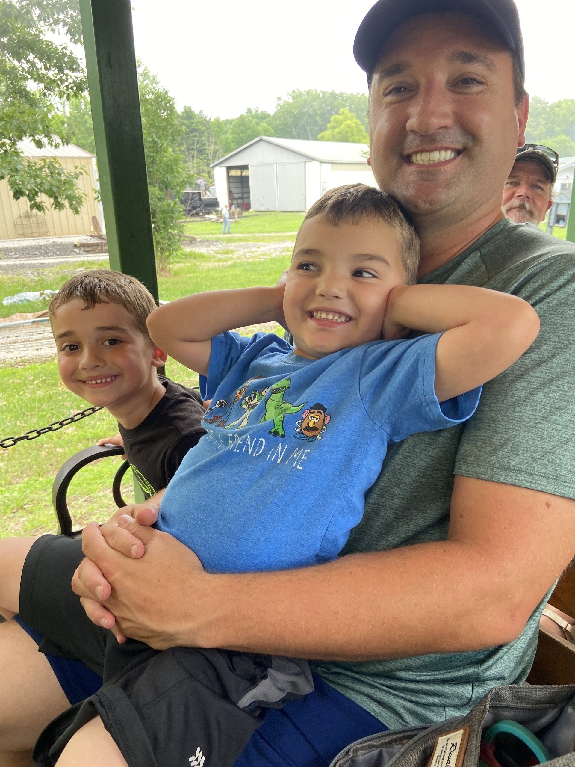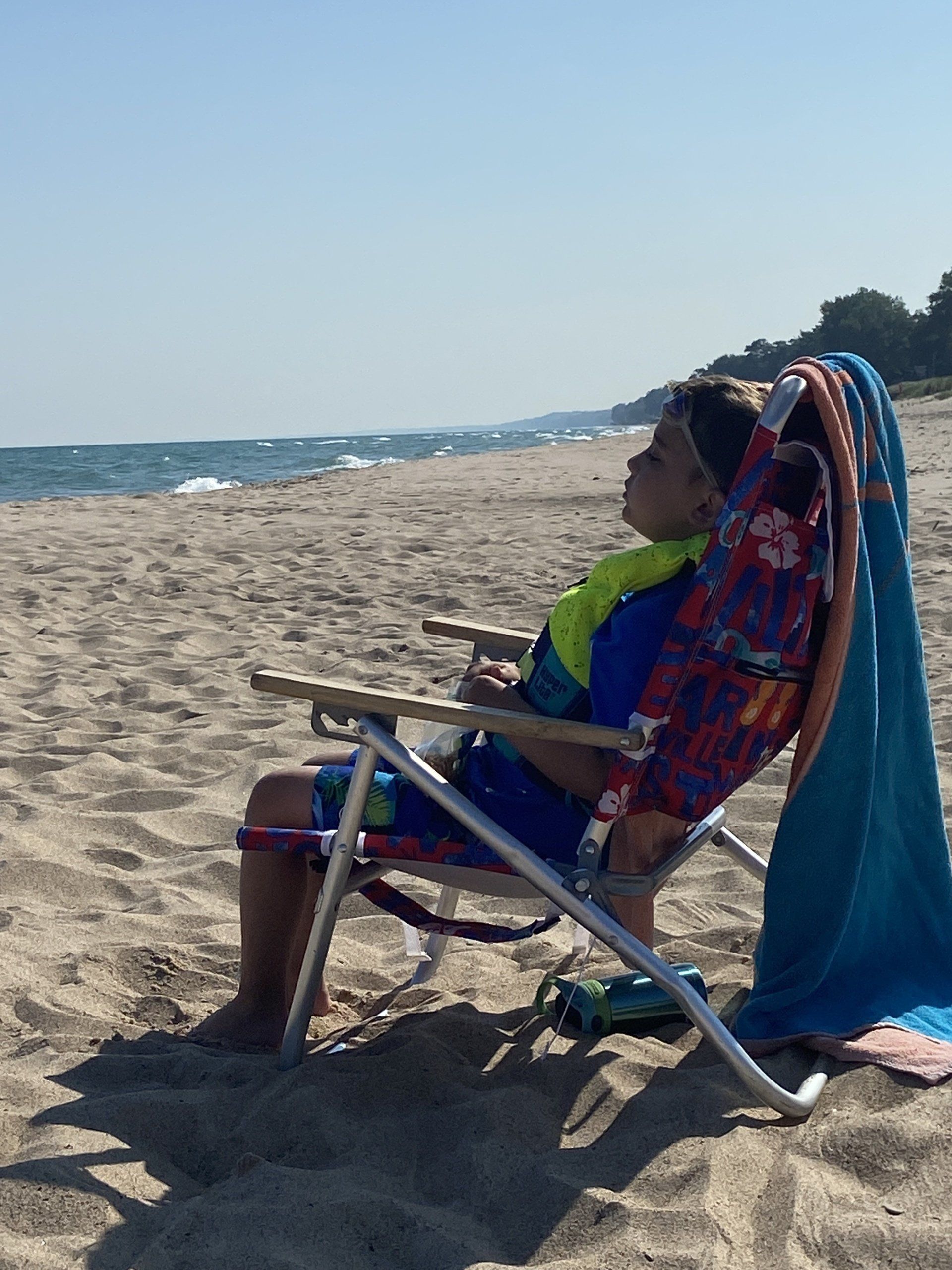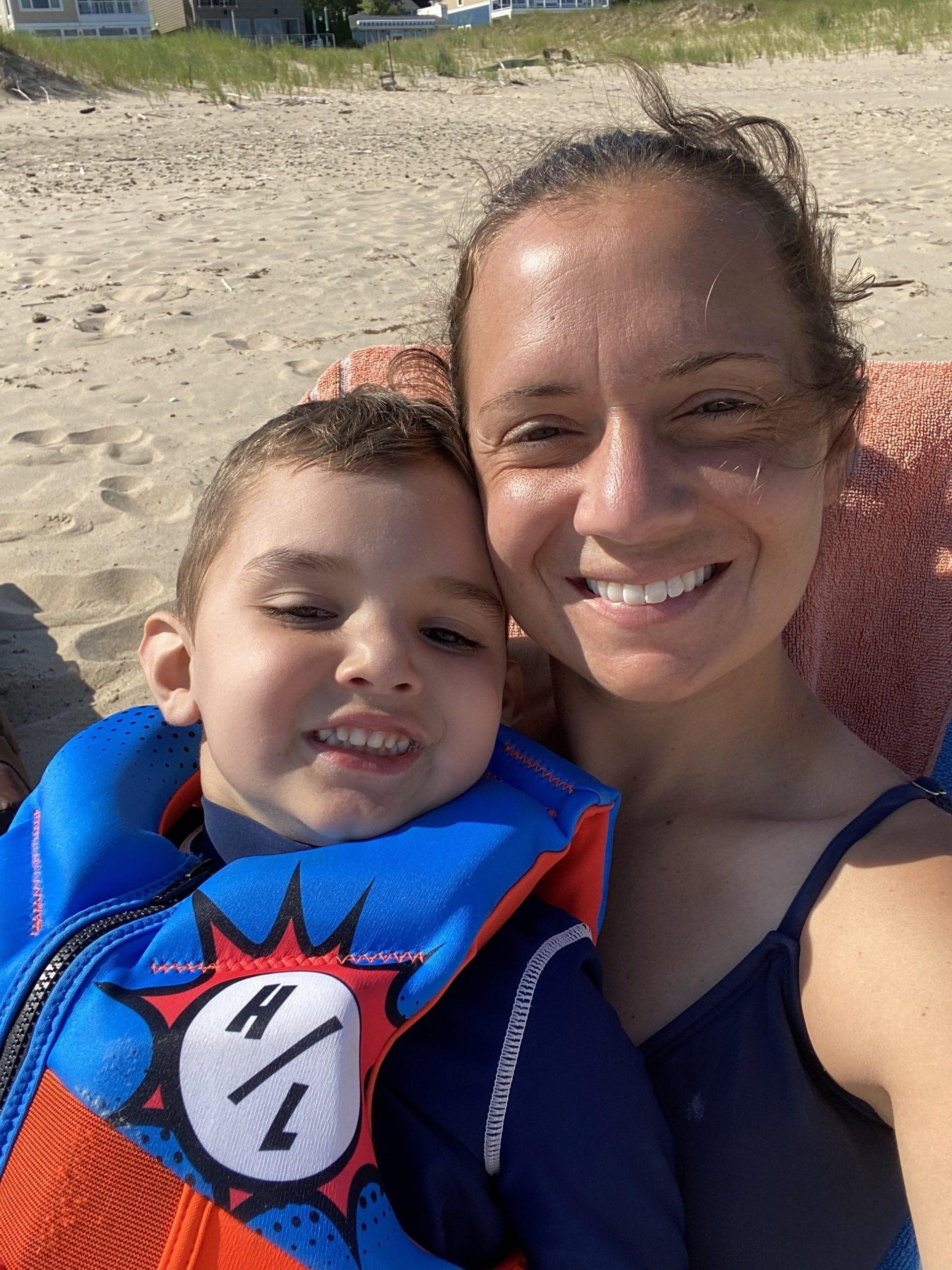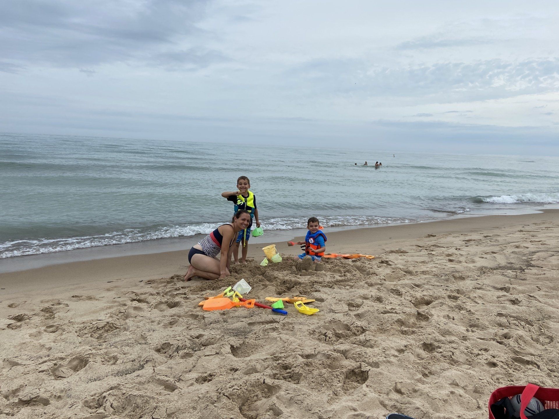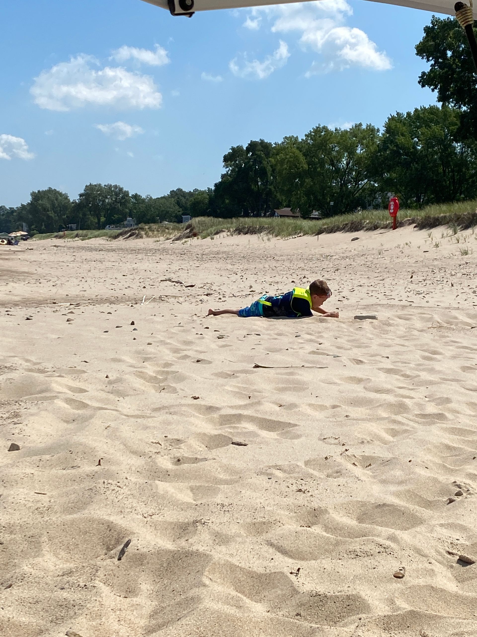 We went to Lake Michigan this year and I was so excited to go since we weren't able to go last year. It was a big adventure for us taking all 3 kids on a vacation and dealing with Blake's specific diet needs. We were nervous with how the kids would handle the drive and change but the kids loved it. We haven't traveled much so this was a big step. We rented our own house which was nice since we were worried about Blake's food and nap/sleeping schedules. Grant LOVED the lake and wanted to spend every minute there. Claire slept great which we were surprised but happy about! Blake ended up getting sick half way through the week with GI symptoms but I considered it a successful week! We went to the train museum which was fun. One of the trains was loud so that scared Blake, but we still had fun. Uncle Jeff took us to visit one of his firefighting friends and the boys got to see the firetrucks. Super cool!The weather was perfect for us. We took the kids to Oinks one evening and found some dairy free ice cream so we all could enjoy! The first weekend was cloudy and humid which was great so we could go to the beach and not worry too much about our kids getting too hot. The sun came out the rest of the week and we went in the morning so it was not too bad. We would take Grant back to the beach in the afternoon when the other kids were sleeping. Claire took her morning nap on Greg or I and I honestly loved those naps watching all my boys play in the water while holding Claire and watching the lake. Absolutely perfect!