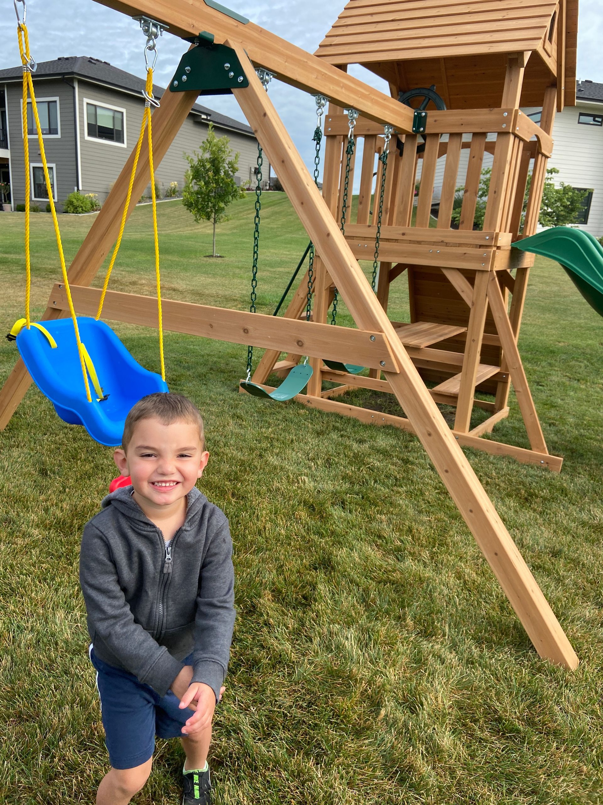 Grandma and Grandpa Young gave us money for a play set a little while ago and we finally found one we liked that fit in our backyard. The boys were really excited for it. Blake was a little hesitant about the slide but I am sure he will be loving it in no time.