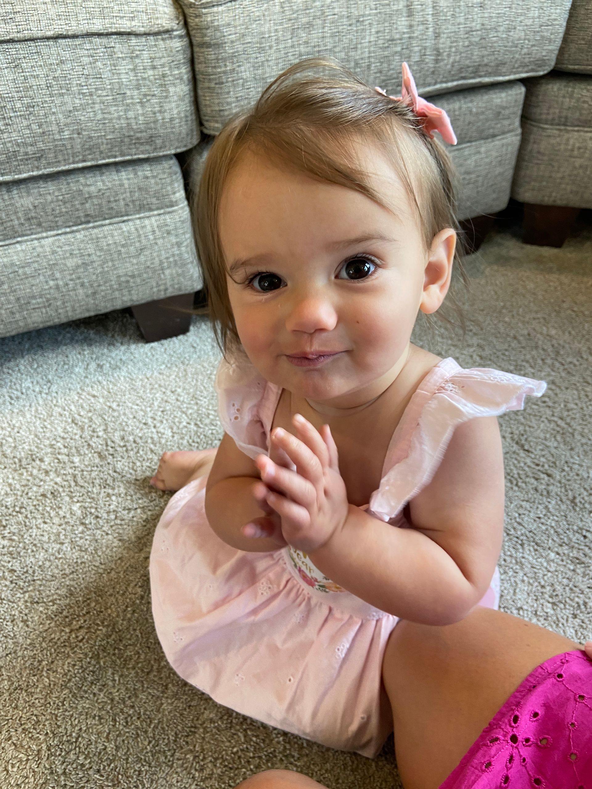 We are loving all the cute giggles we are getting from Claire these days. We can't seem to get as many on camera as we want but she is very fun these days!