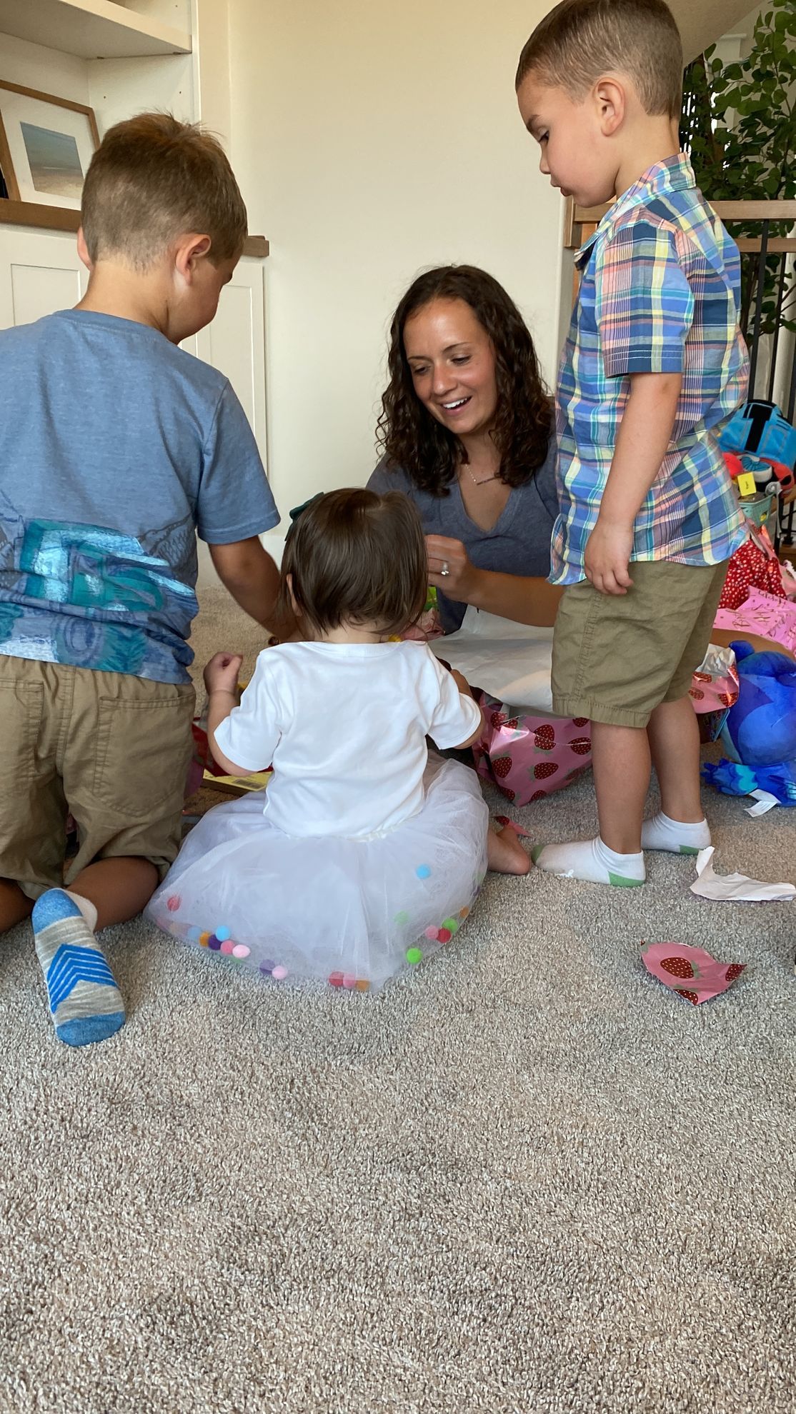 Claire's "berry" first birthday was on a Sunday so we had a busy day. We had family pictures early in the morning and then had to come home to get ready for her family birthday party that afternoon. We got it all done and had a great birthday. The boys did not like that all the presents were for Claire and not them. Watching the video of her opening presents is chaotic to watch and you can tell our chaotic our lives are daily. We love Claire so much and is a perfect addition to our family. She is just so sweet and dramatic at times and we love her so much! She loves Encanto and Cocomelon right now so I got her a Maribel doll and Cocomelon bus.