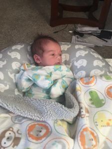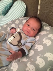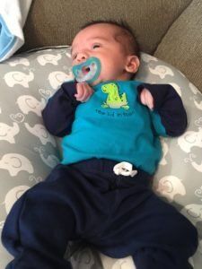 He is sleeping pretty well, only getting up once a night to eat. We are told we are lucky he is sleeping so well. I am glad because I honestly can’t imagine having a baby up more than that! We are working on nap time and trying to get the eat, play, sleep concept down. Definitely a process. Right now nap time is wherever we can get him to fall asleep. Ha.