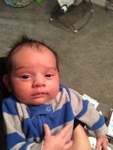 We were told to wake him up every few hours to make sure he was eating enough. We went to our one week appointment and Grant had already gained his birth weight plus some. He was 7 lbs 6 oz. We were obviously feeding him enough! Greg and I were happy about this because now we didn’t have to wake him up during the night. This gave Greg and I (a little) more sleep. Grant was a bill of health at the appointment which meant our next doctor appointment wasn’t for 2 months. That seemed like a long time to Greg and I!