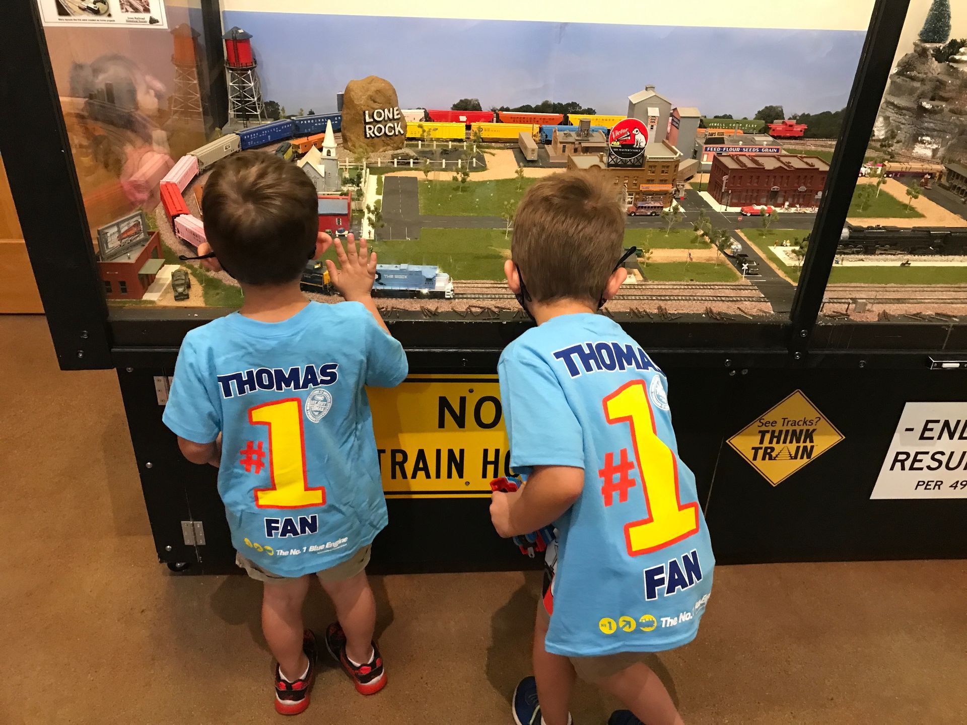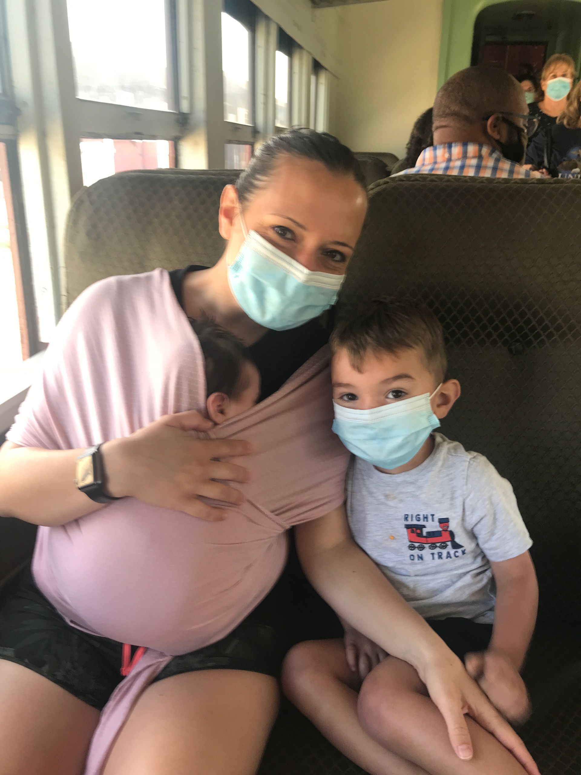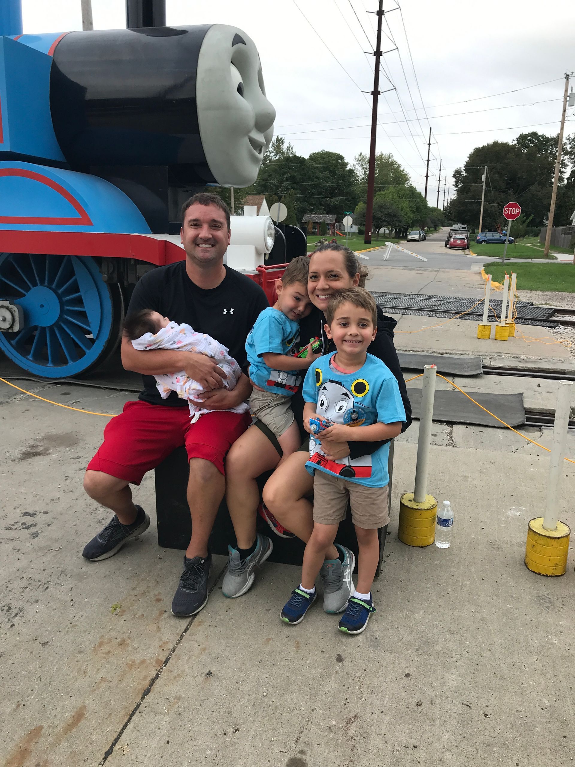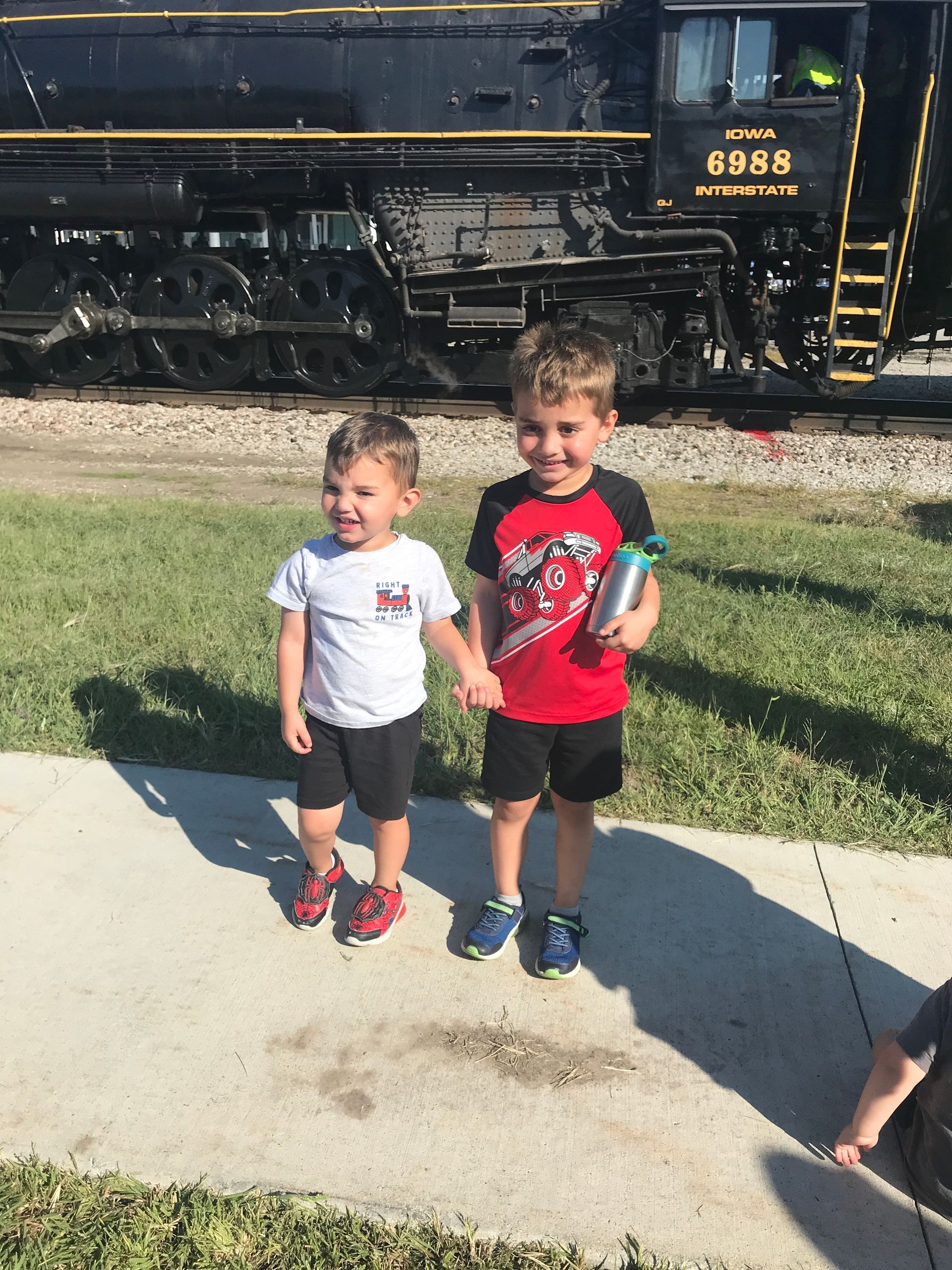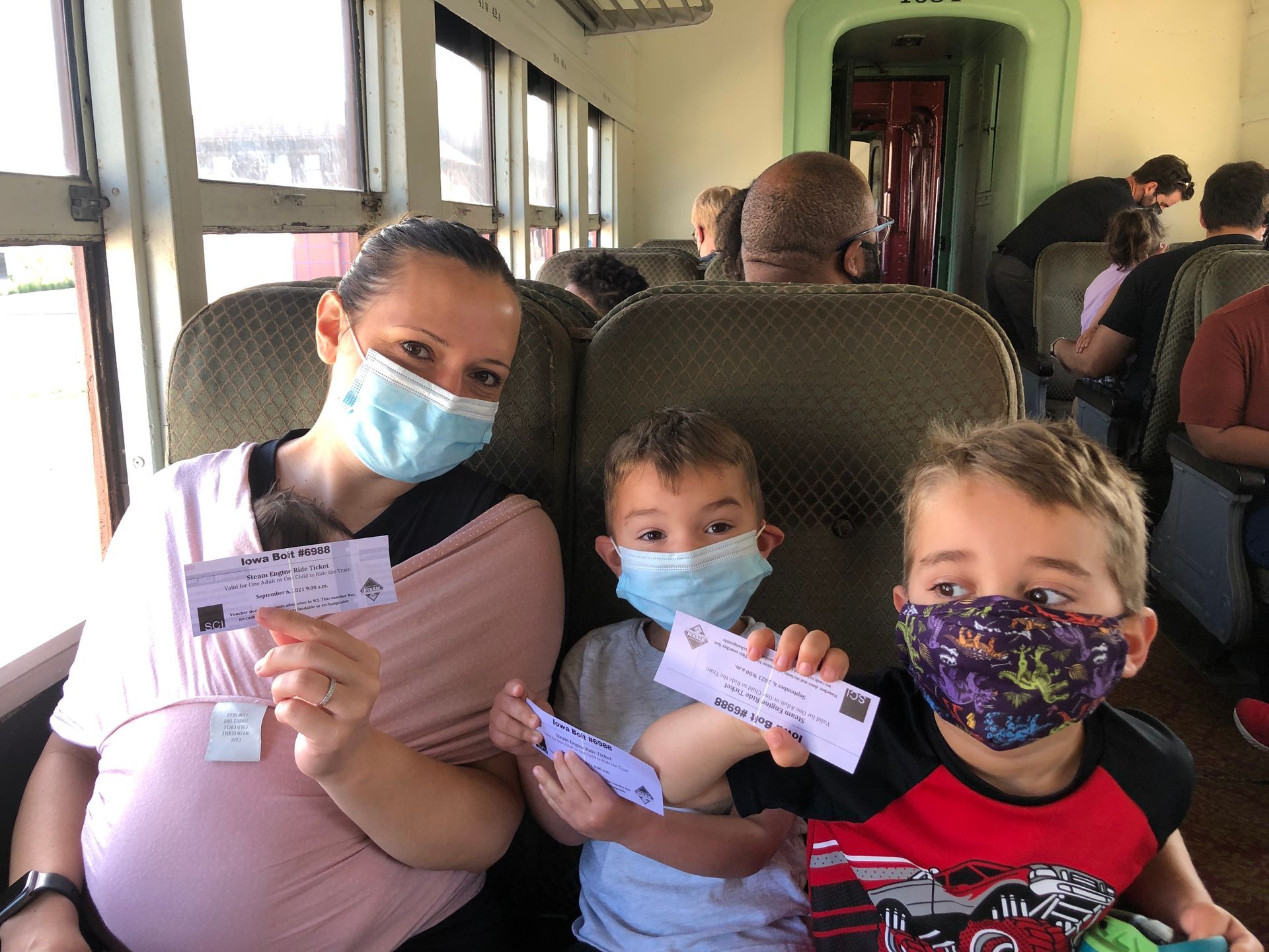 The Science Center had a steam engine come downtown and we were able to take a ride on it! It was so fun to see a real "Steamy"! Blake was scared of the loud train whistle and we had to worry about smoke embers getting into our boys eyes but it was a fun experience. Claire was great and slept the whole time.