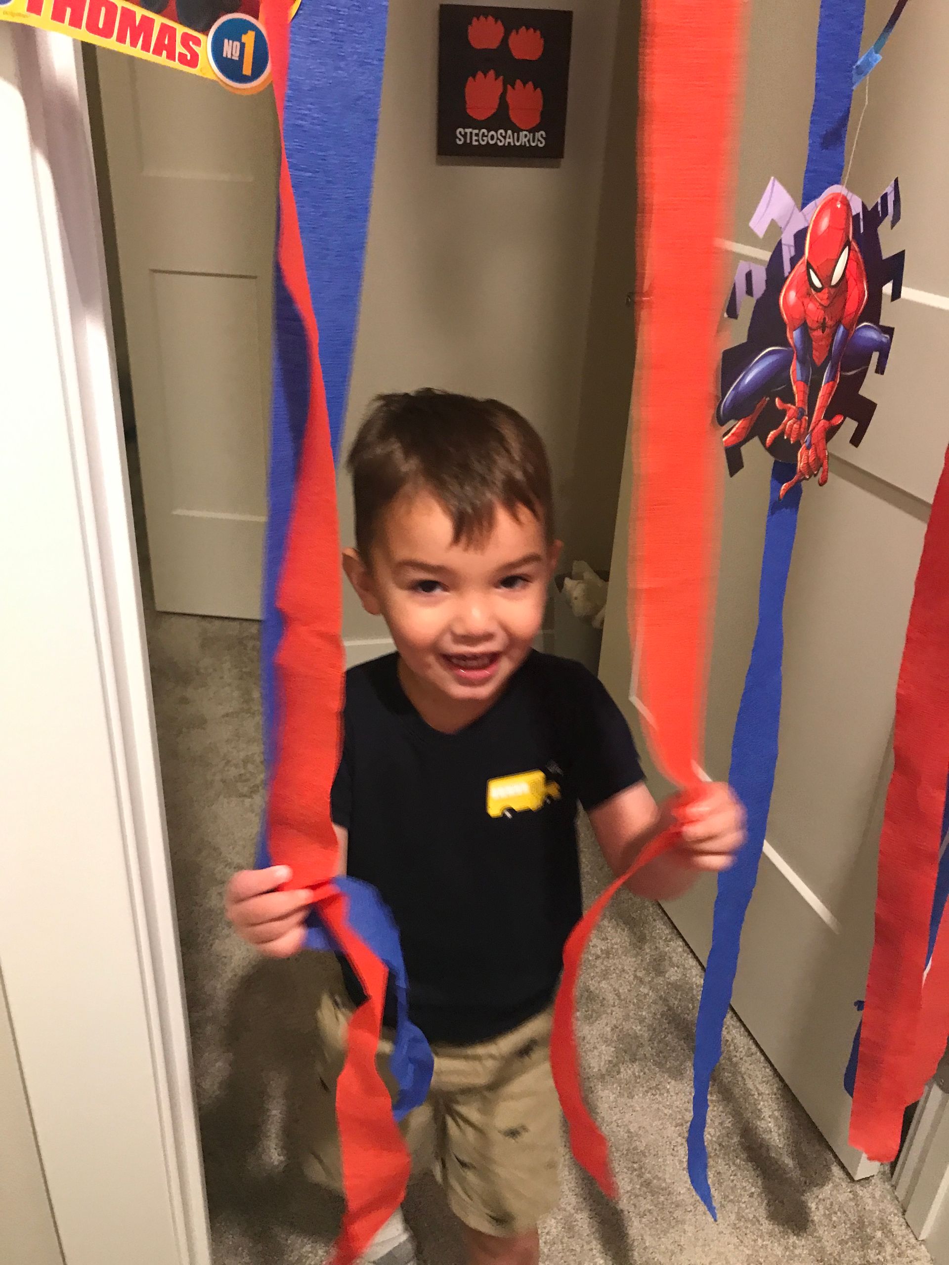 Blakey was SO excited for his decorated door for his birthday! We let him open up presents from us and he got to go to the jump park. We had so much fun and we can't believe Blakey is already 3!!