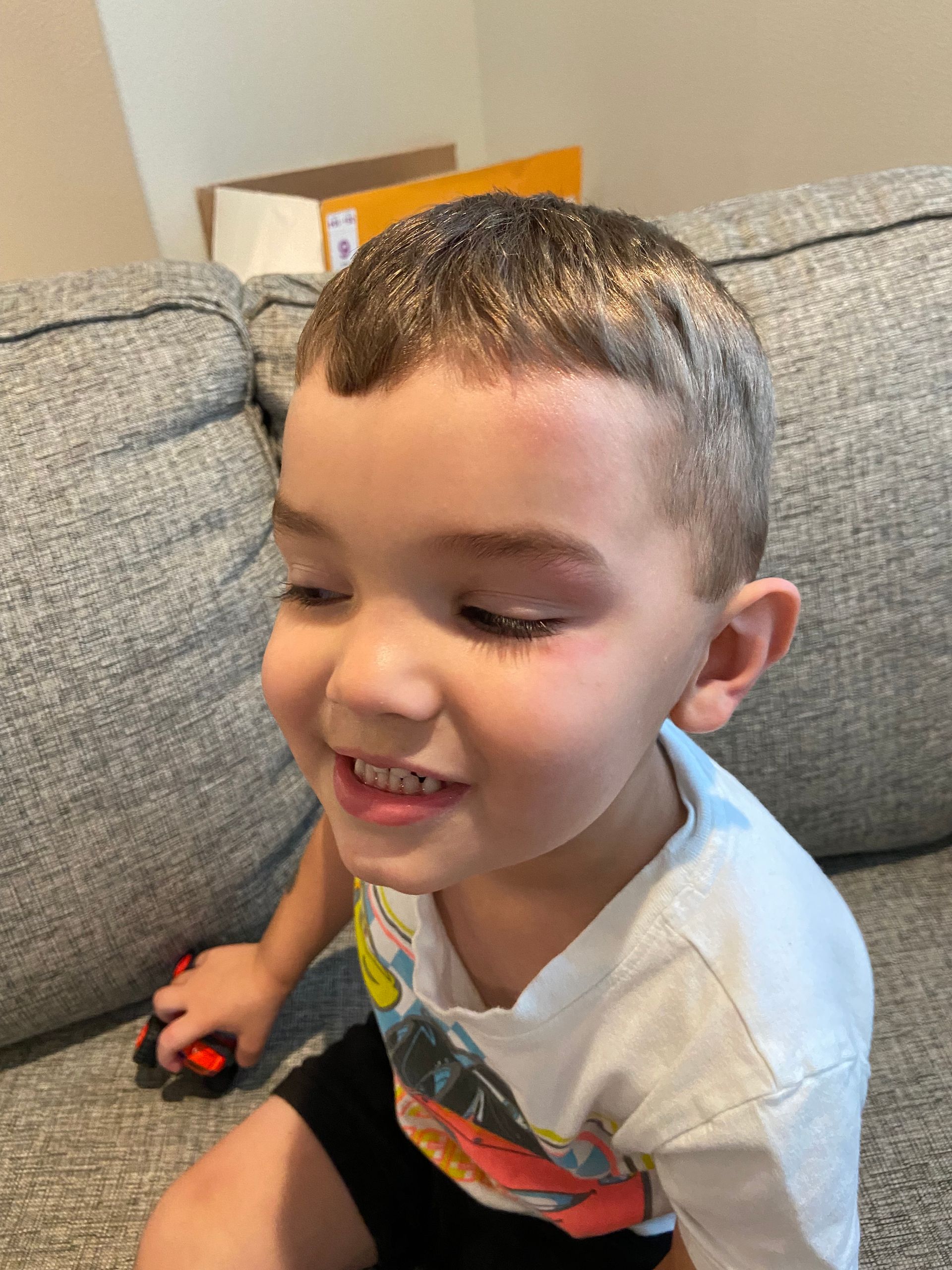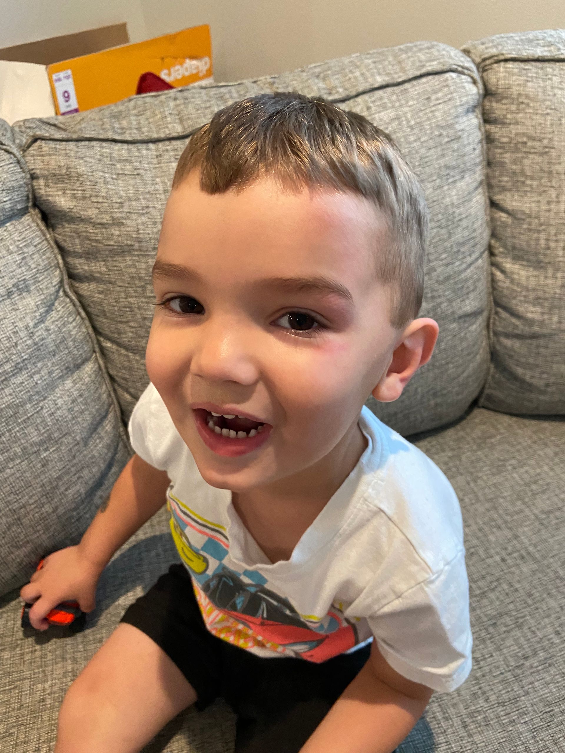 Blake fell because of seizures and got a black eye. He has jerks and they are often when he is eating so he hits his head on the table. Also, he sometimes falls out of his chair and hits his head. Once we started Keto his seizures got worse initially but got better a few weeks in. We asked the dietician and she says it is not normal for the seizures to get worse with keto. He is doing well with his eating and we are so proud of him.