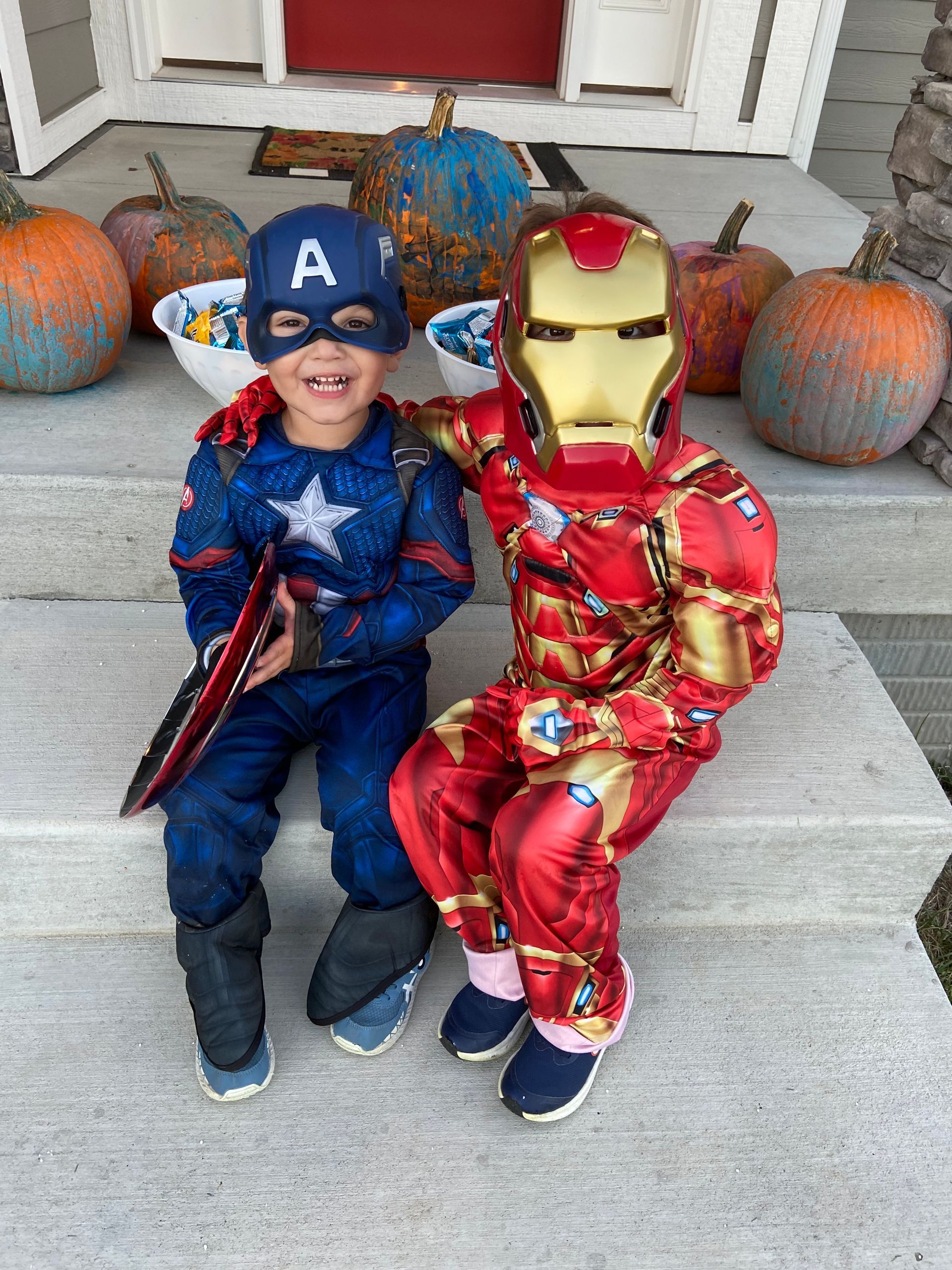 Grant was Ironman and Blake was Captain America for Halloween. They love to dress up and go fight the "bad guys" around our house. Claire didn't dress up since she was still recovering from Covid and not feeling well. It was a beautiful night outside and the boys had a blast.