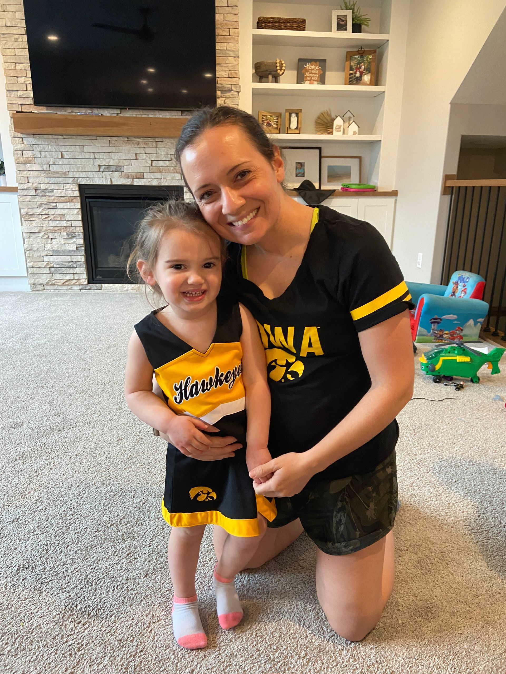 We have been cheering on the Iowa women's NCAA tournament! It has been so fun to watch. I am more invested in them than I would like to admit. So Claire has to put on her Iowa cheerleading outfit and get out her pom poms to cheer on the team!