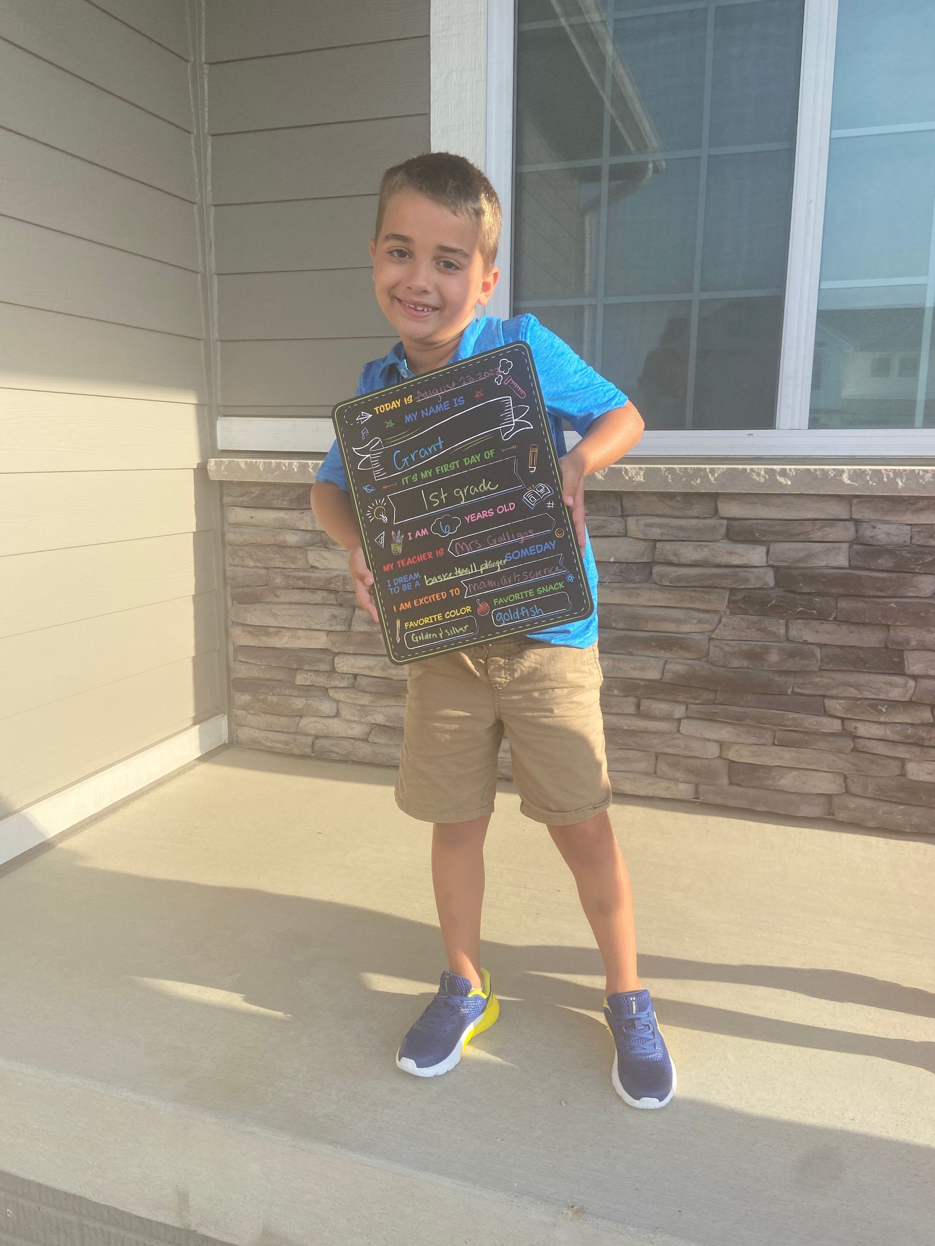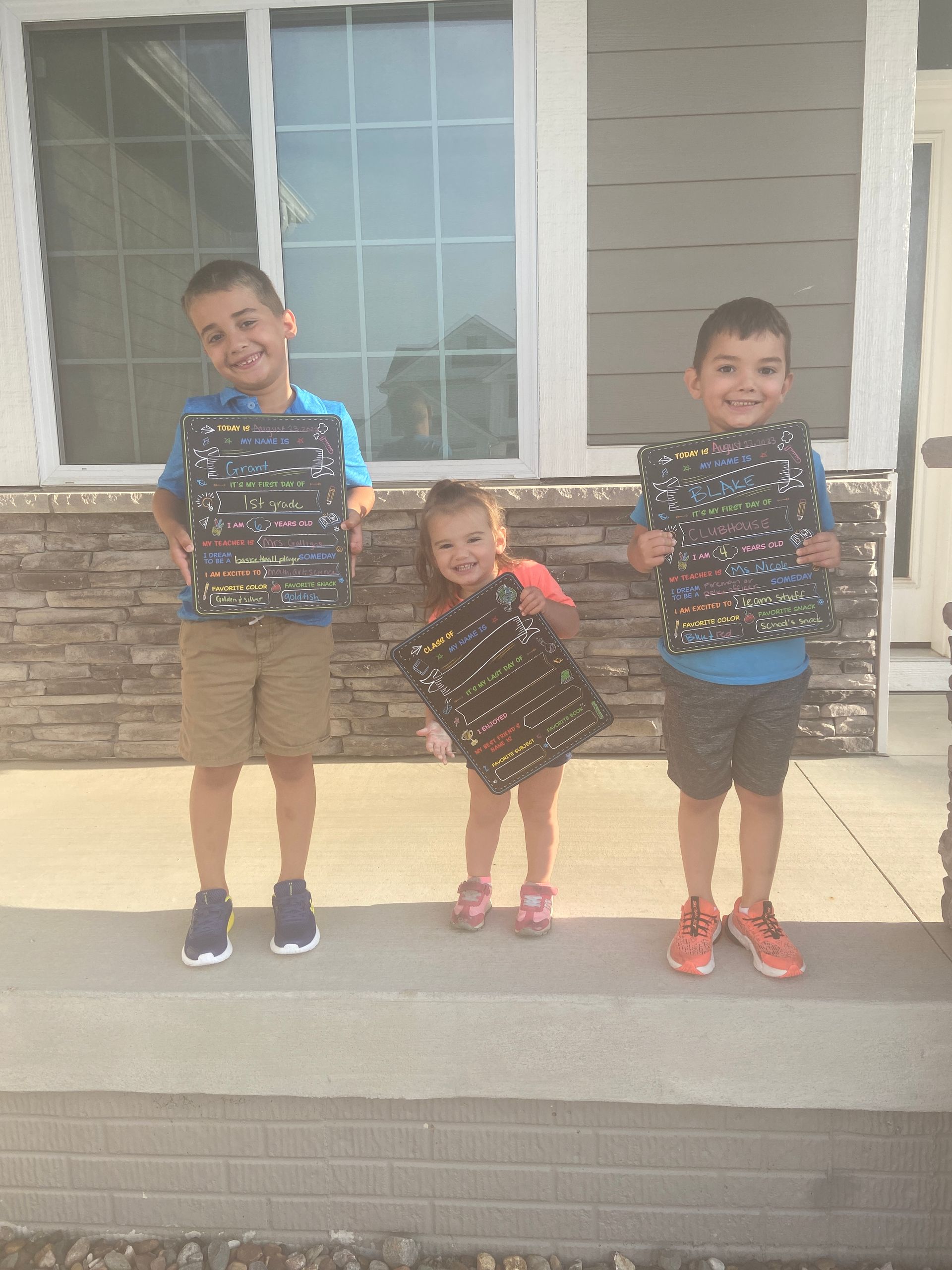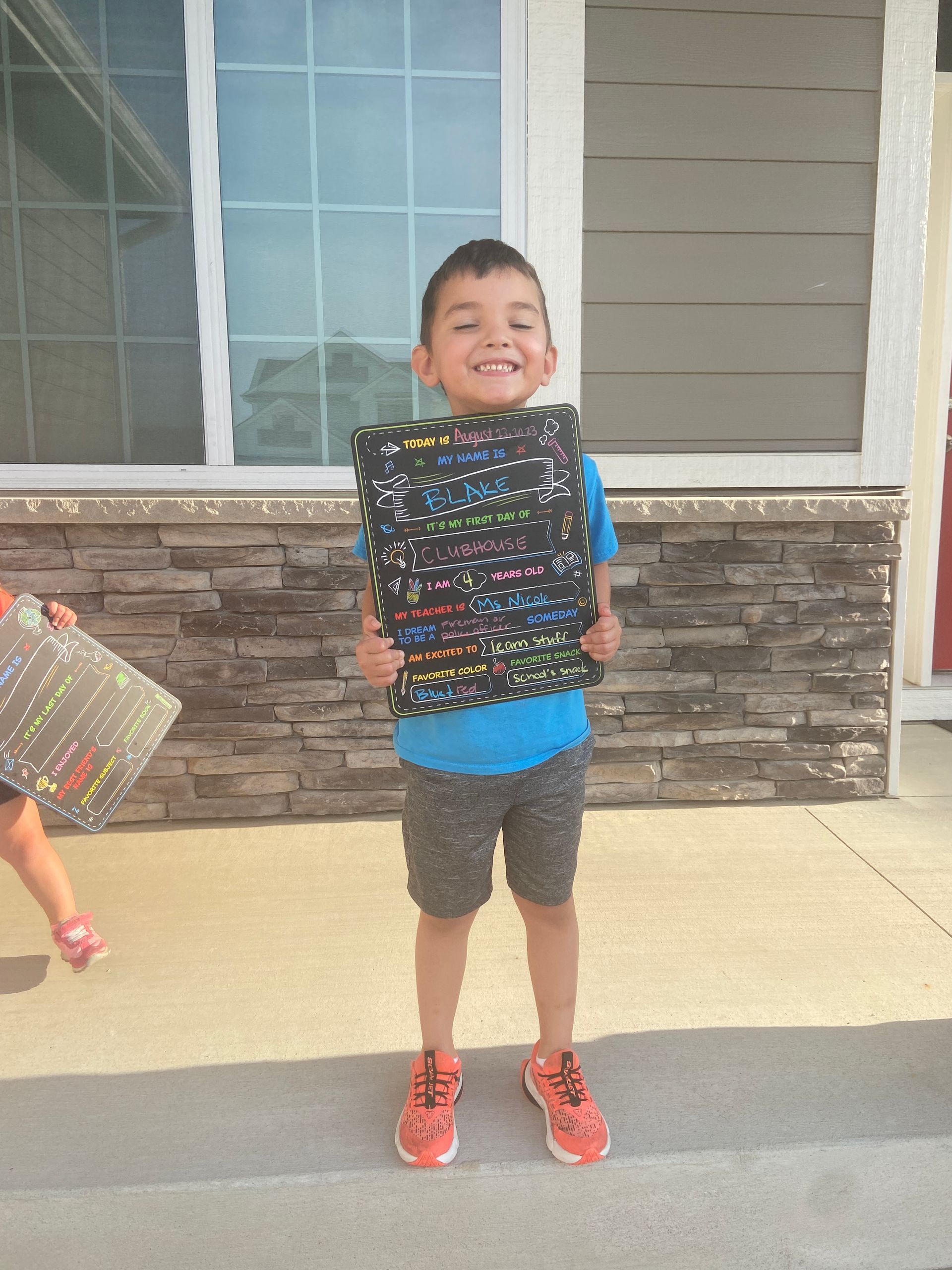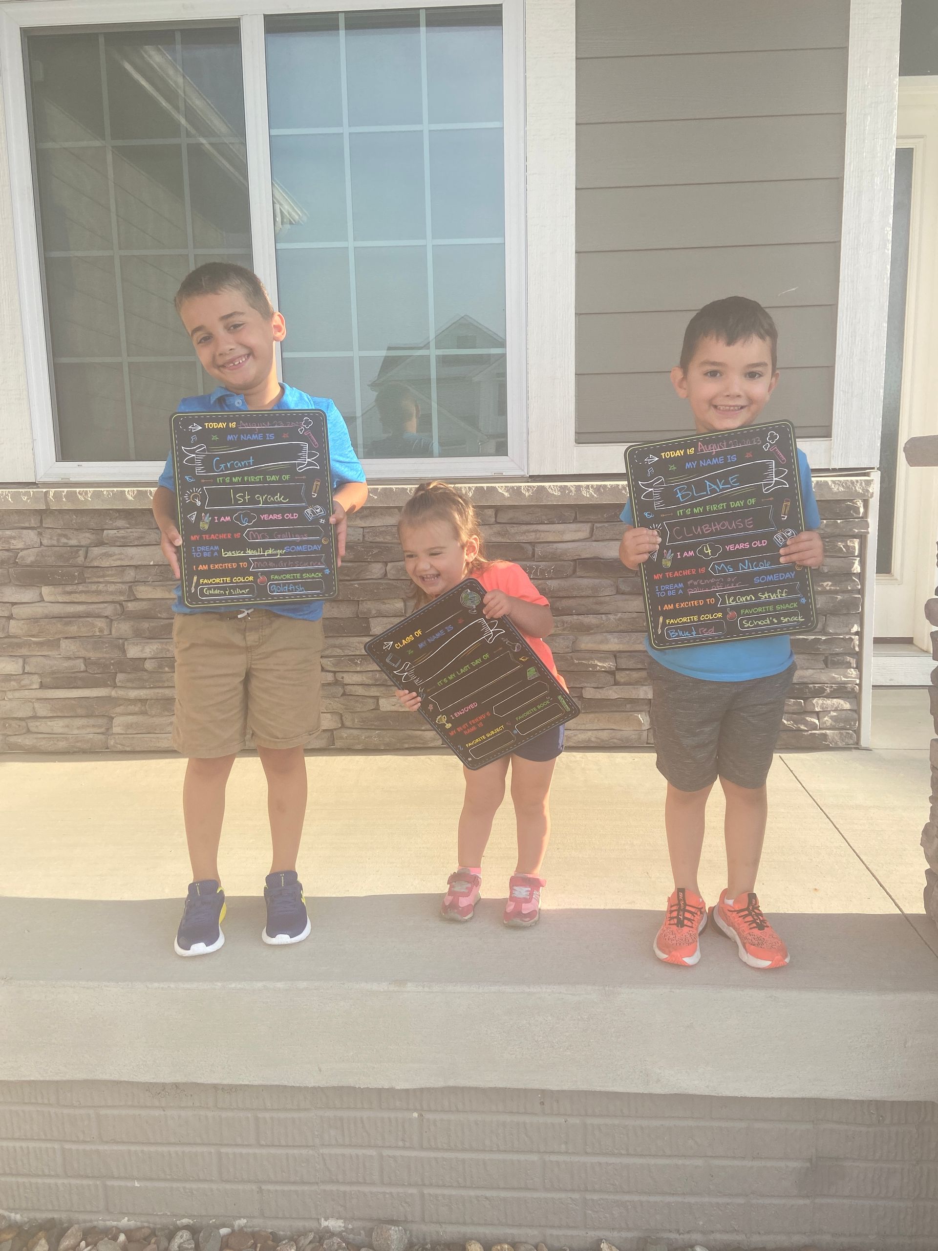 Grant had a great first day of school! The younger kids wanted to get their signs out also to be just like brother even though it wasn't their first day. Blake is a the big man on campus this year in Clubhouse and Claire is in preschool. It was 100 degrees so no outside recess and that made him sad because he didn't see his friends. He was exhausted at the end of the day after all the stimulation. He seems to have a good teach and we hope for a great year for him!