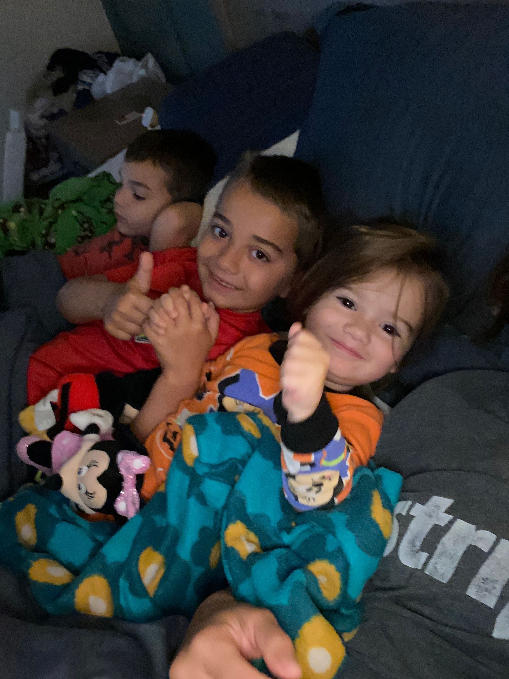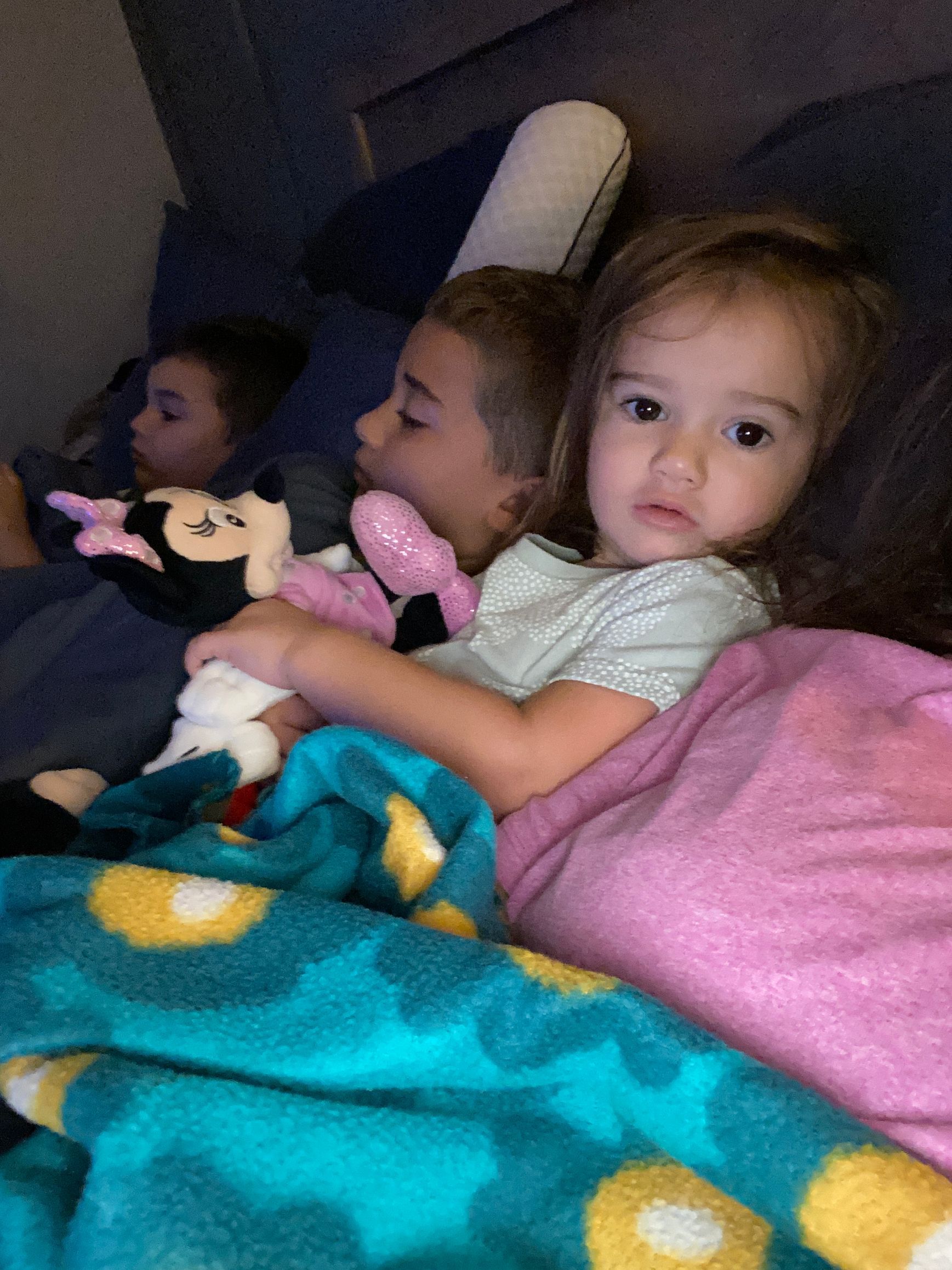 The weekend mornings when the kids get up, we watch TV in my bed and it is my new favorite thing to do with them. I love them all cuddled up in bed with me.
