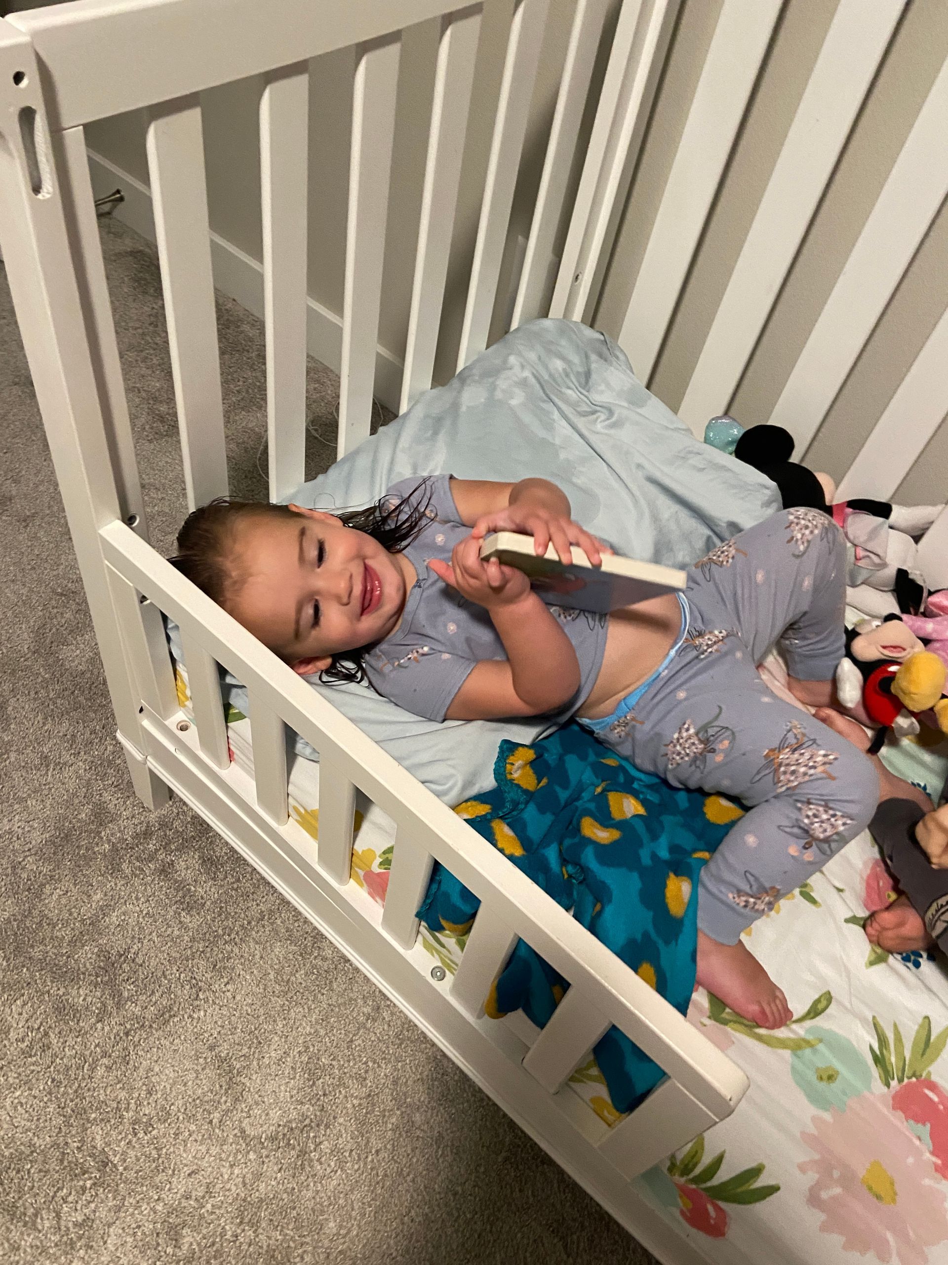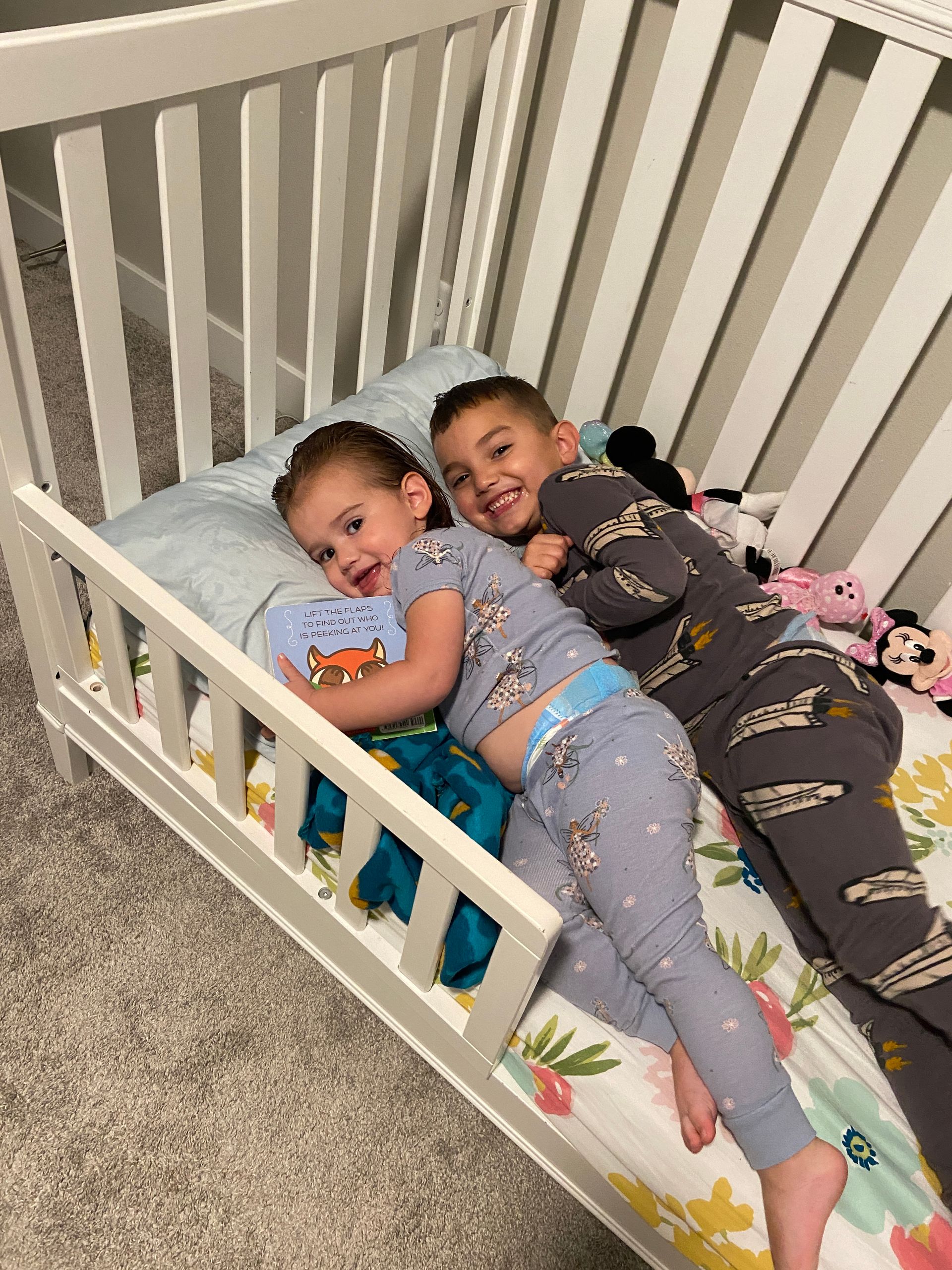 Grant was so sweet and wanted to read her a bedtime story. She was so excited about the bed she wasn't able to sit still and listen but Grant was being such a good big brother!