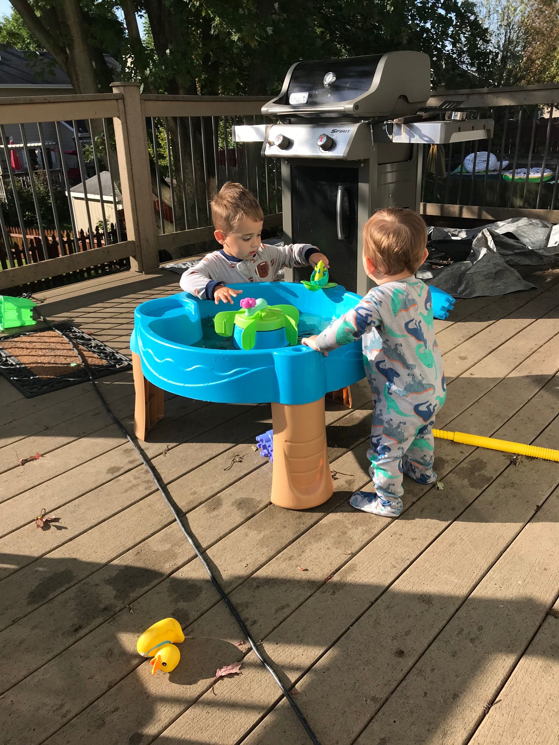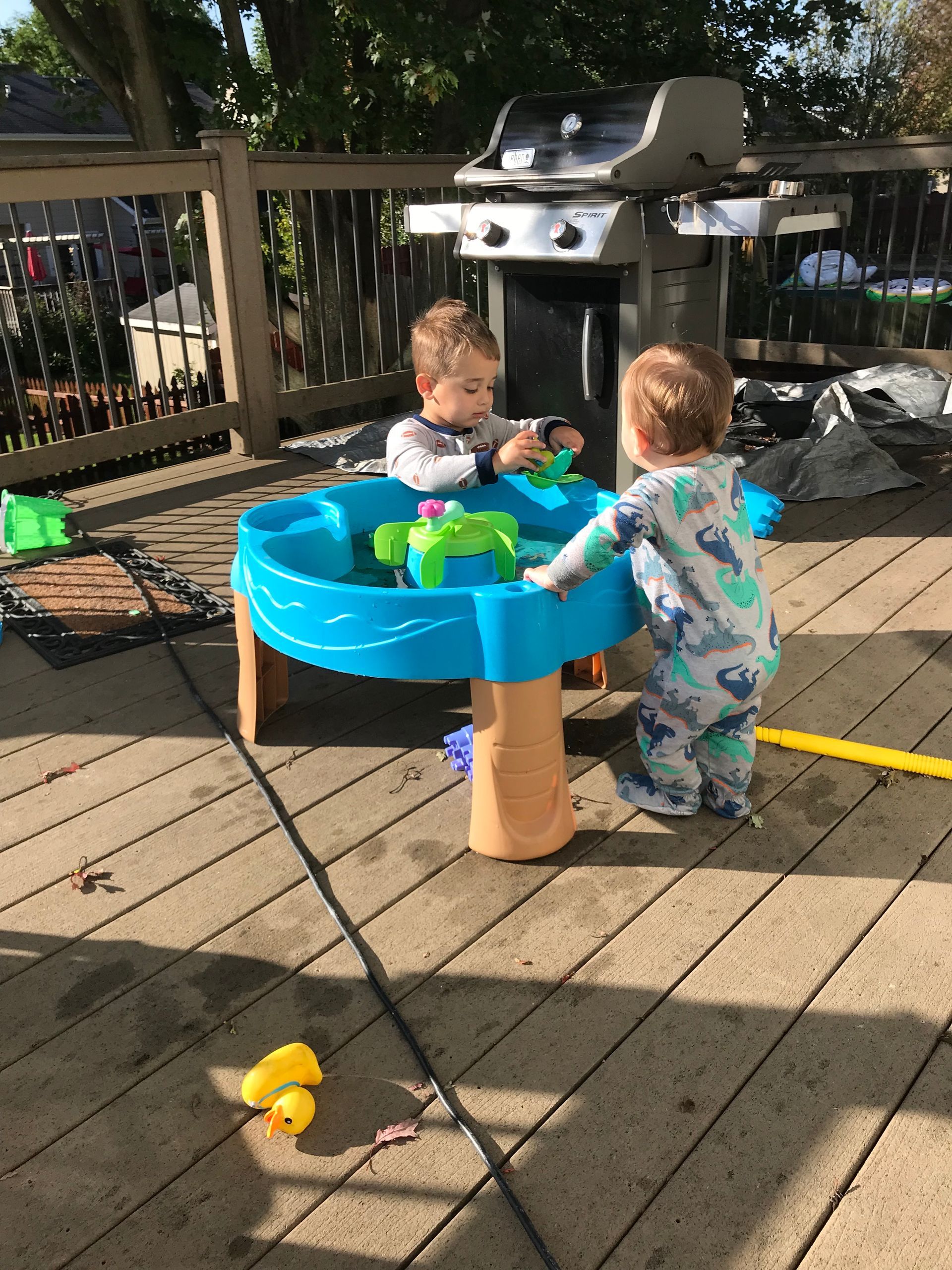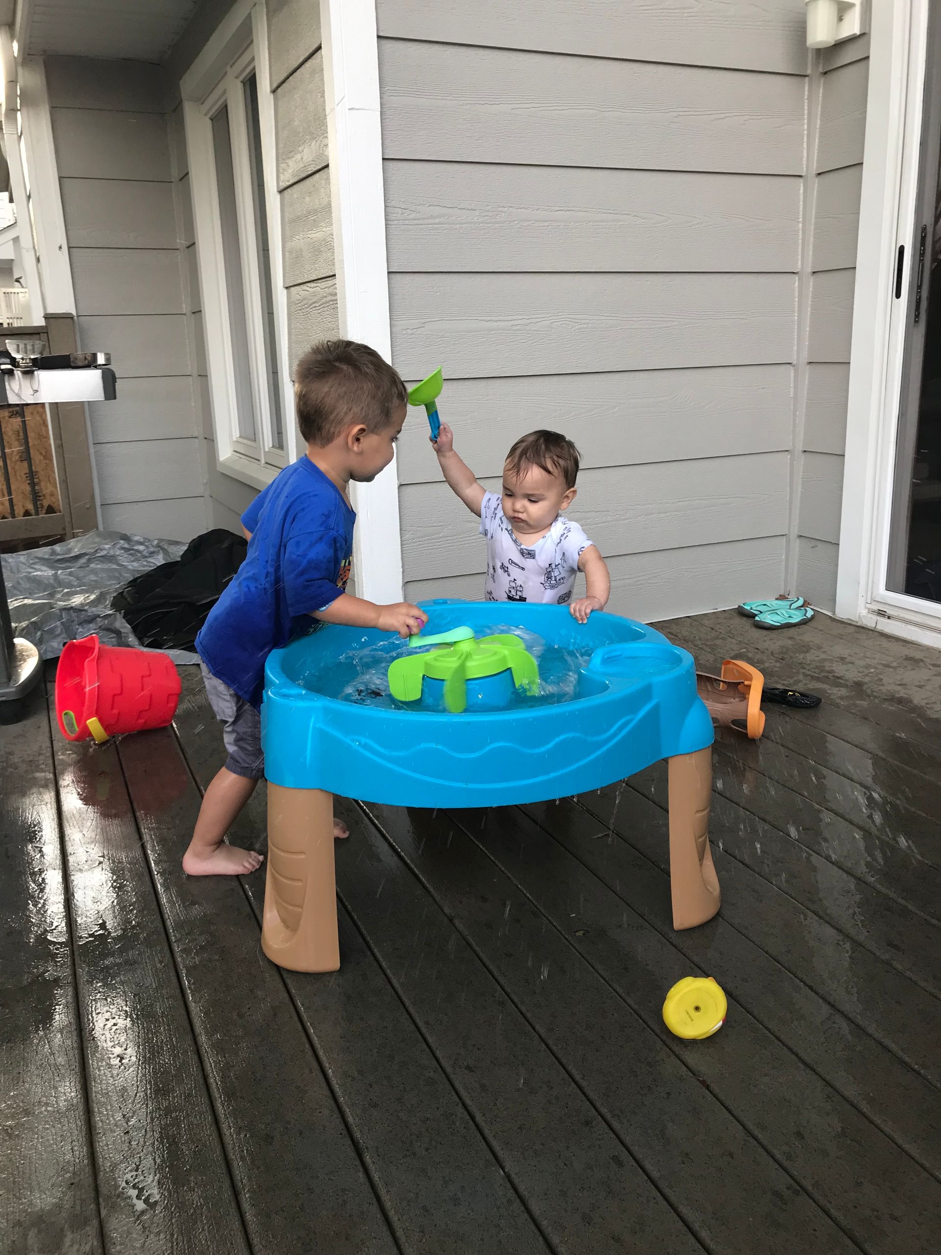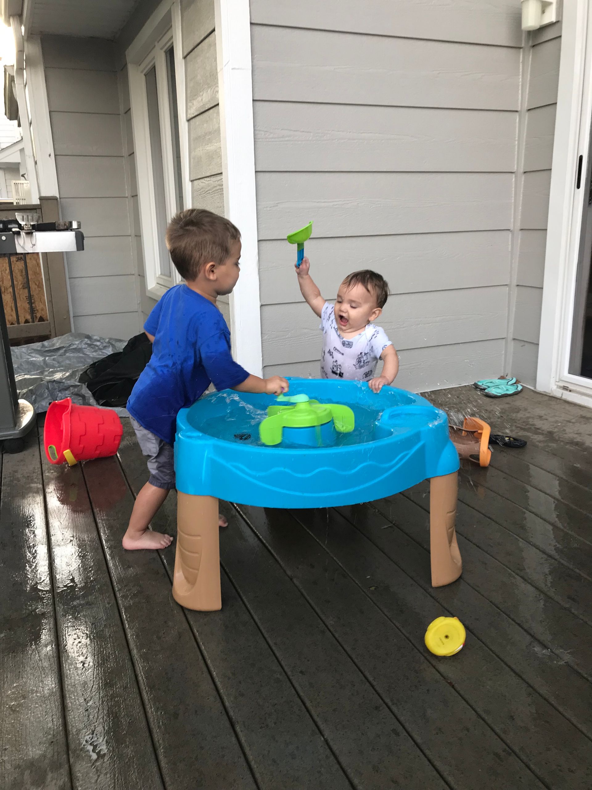 The boys love their water table! One of the best toys we have gotten so far. They always end up soaked but it entertains them for longer than any other toy so we play with it as often as we can!