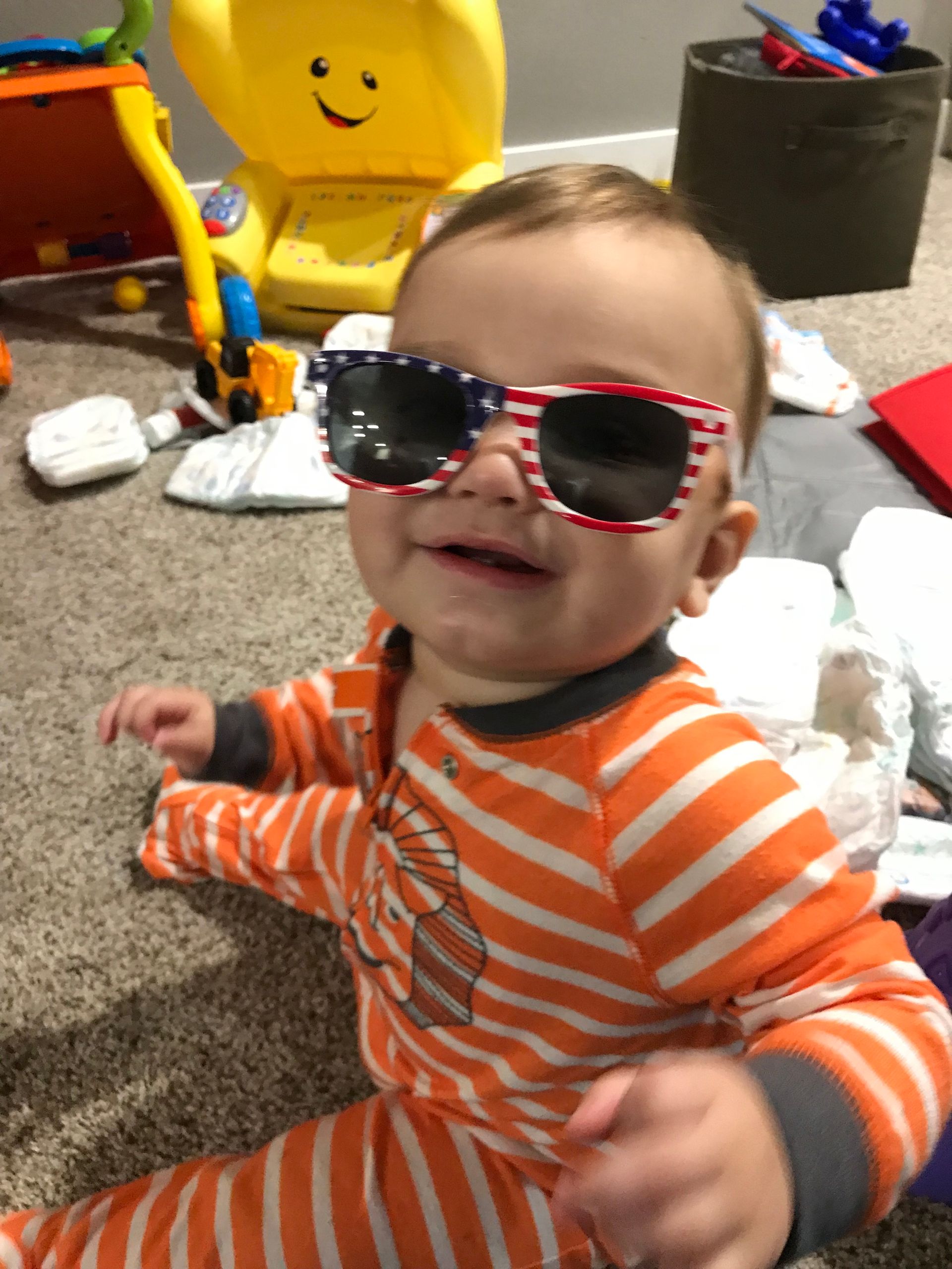 Chloe is on Blake's toy and loves it just like Blake! We watched Chloe for a few hours and she wasn't too happy about it. She wanted her Mommy! This was one rare happy moment with us.