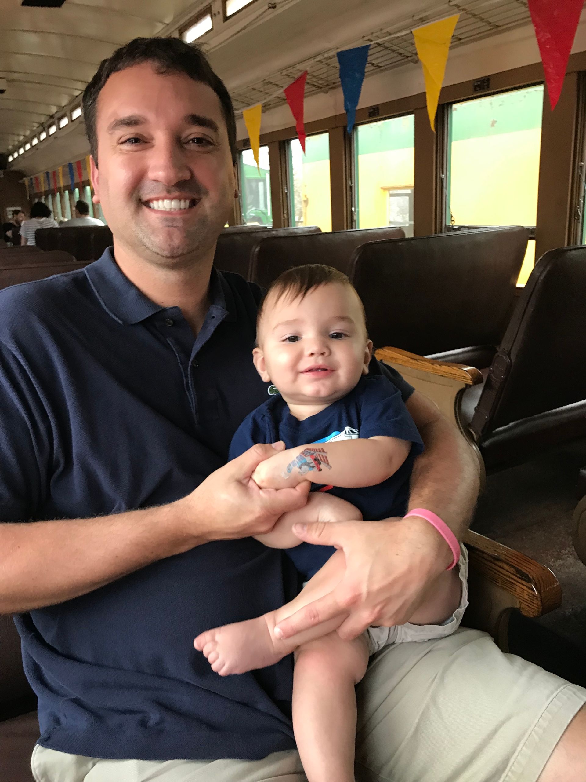 He loves this train song we listen to while driving in the car and I started singing it as "all aboard the mommy train" once we all get into the car and he loved it!