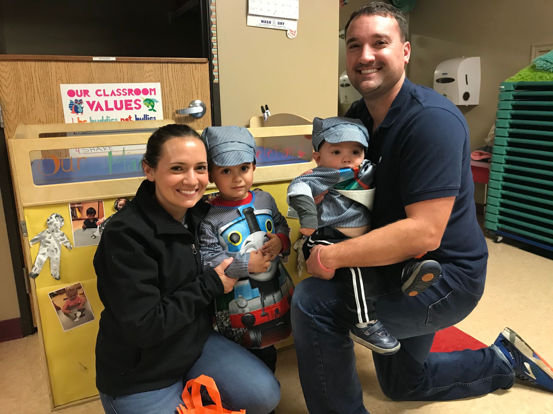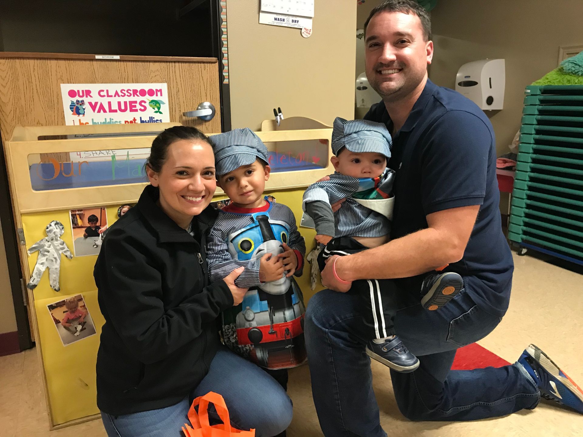 Daycare had a Halloween party and it was so fun! The boys both dressed up as trains (there is a definite theme in our house these days). They had cookies, treats and bounce houses. It was fun to see home of Grant's friends and be able to talk to the parents.
