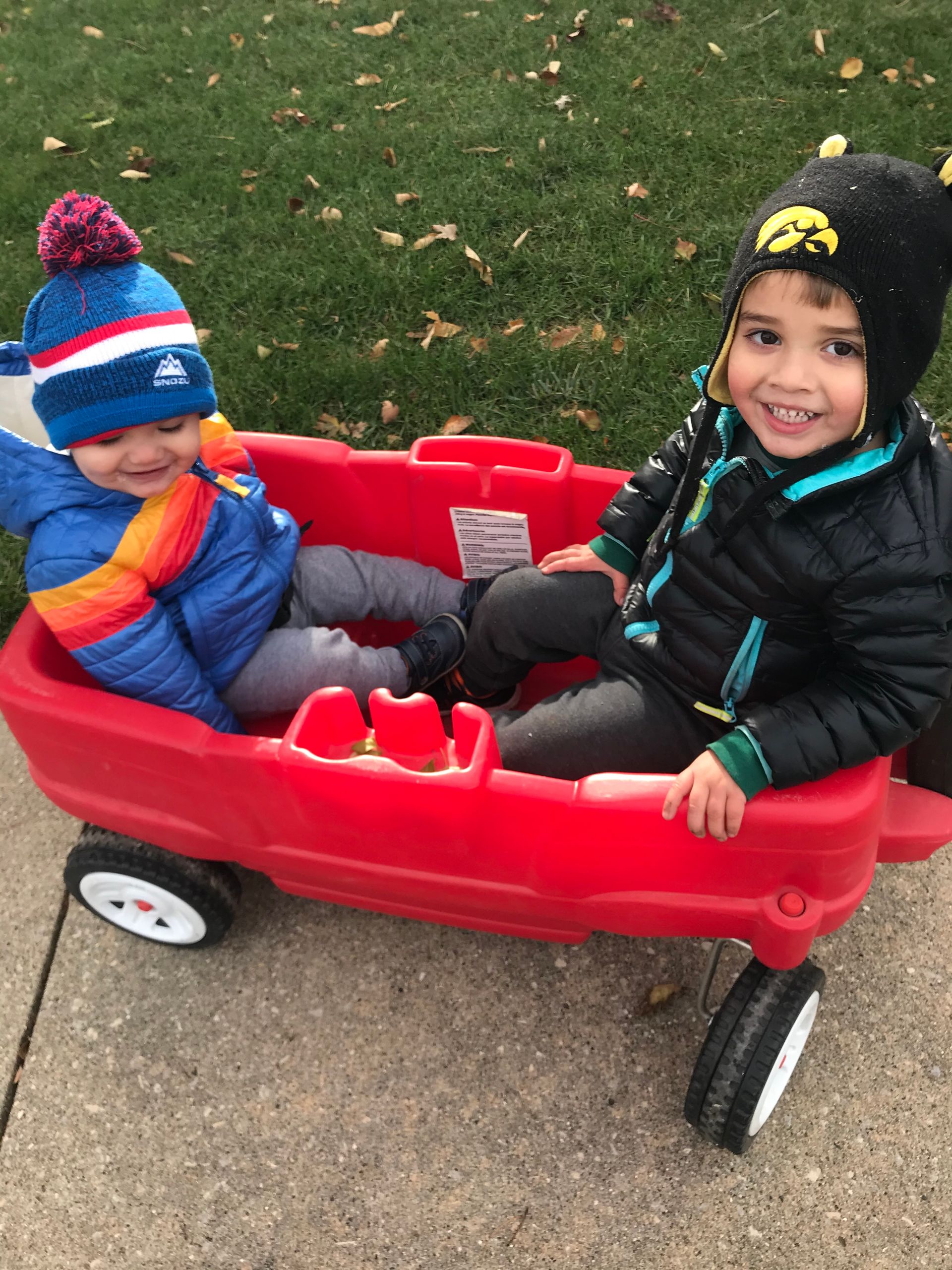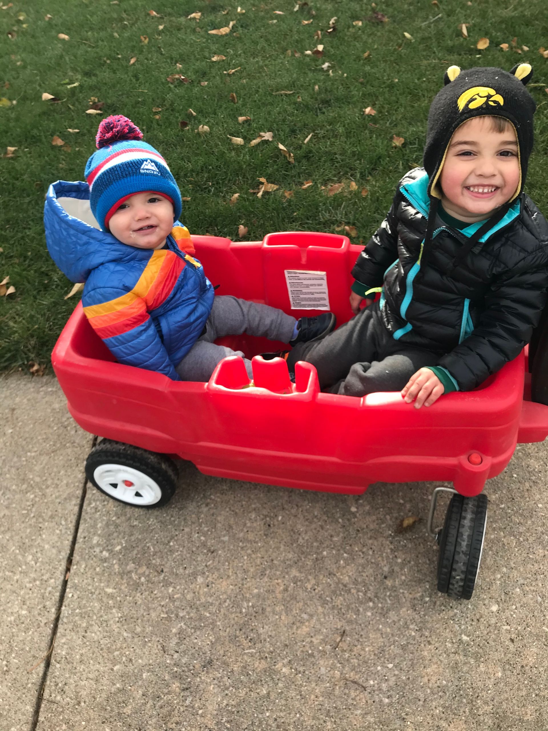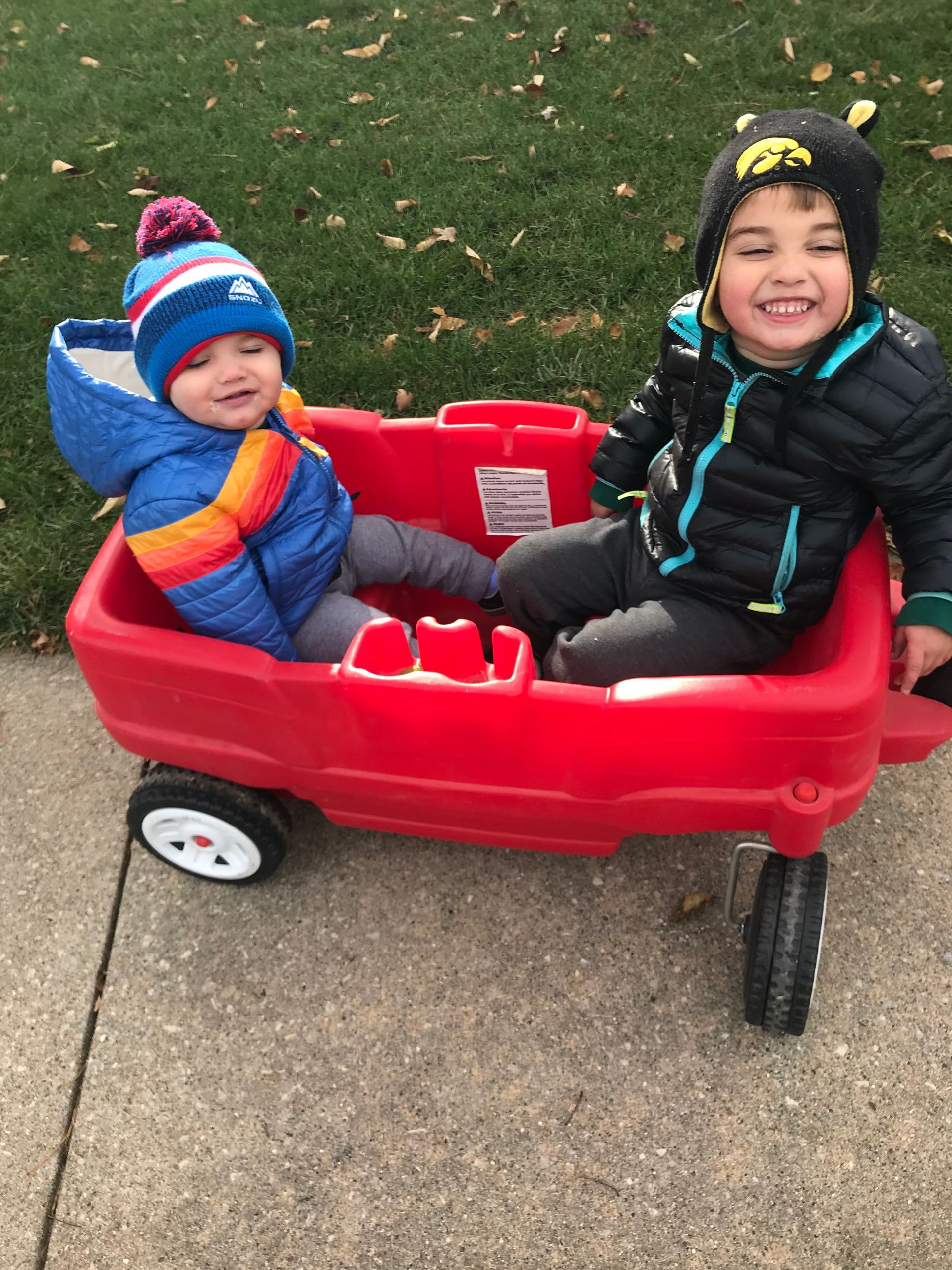 We had to get outside and get out the house! We bundled up and went on a wagon ride around the block.