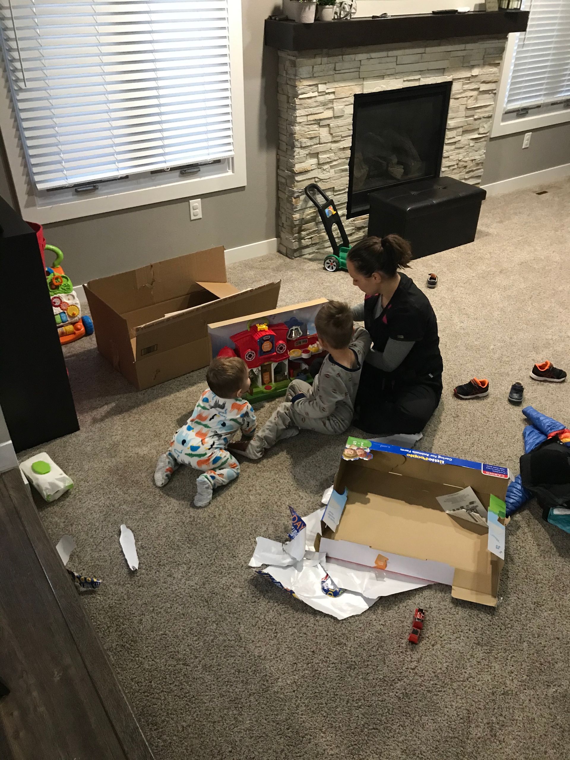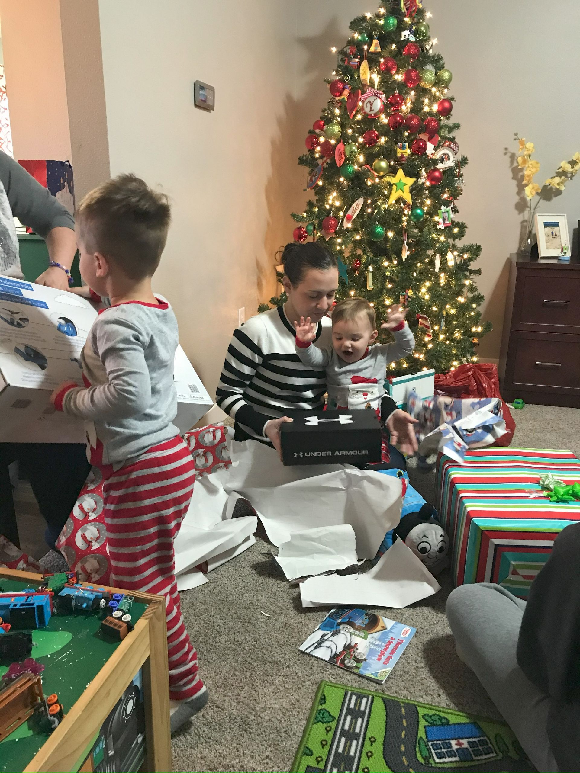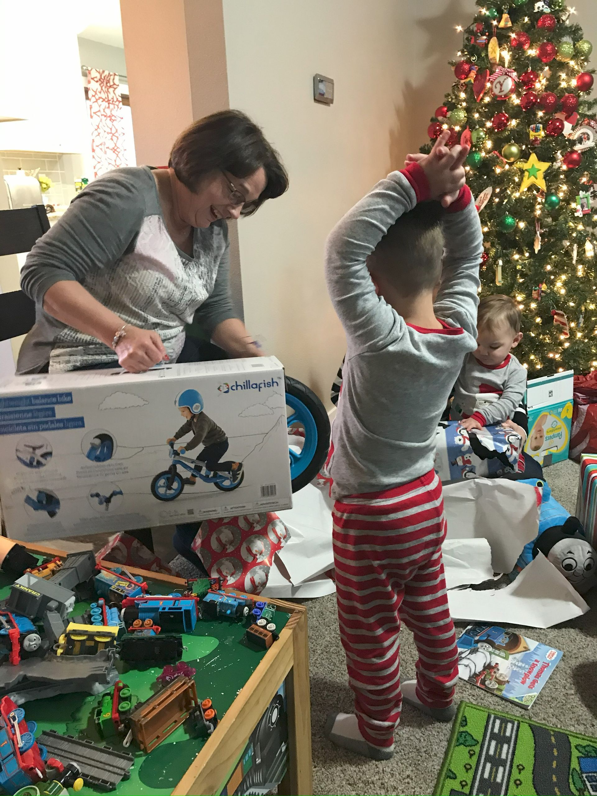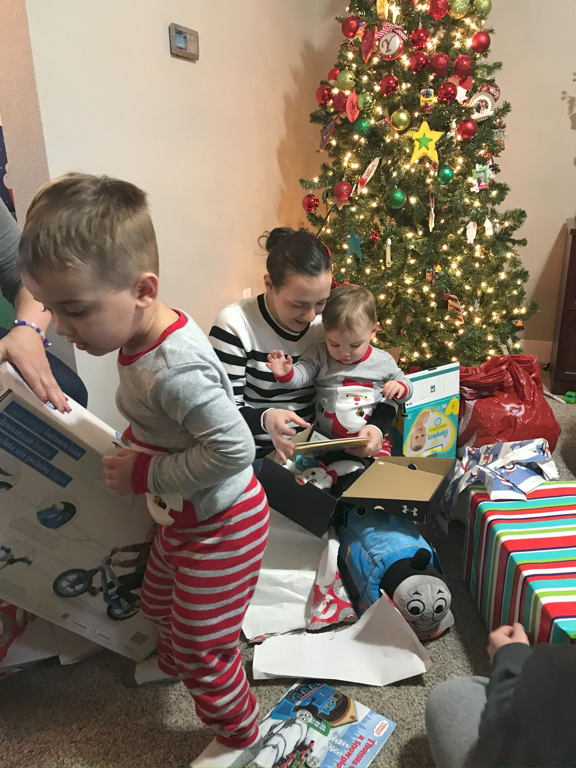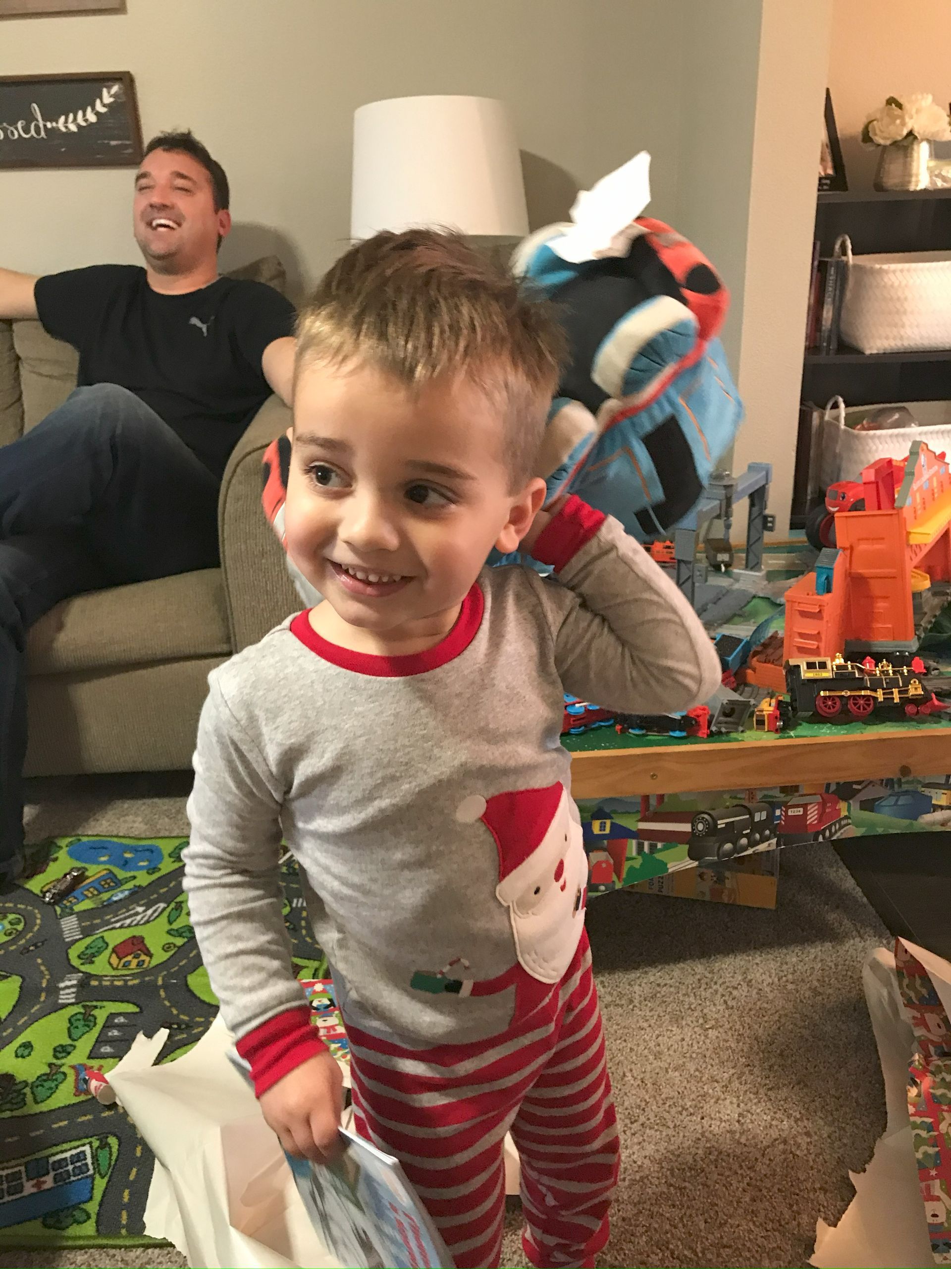 Santa came! Grant was excited and Blake was excited for the presents. They weren't as excited for the kitchen as I was expecting but they got a lot of great toys. Santa even found his Polar we have been looking all over the house for. It is noisy and loud but Grant loves it.