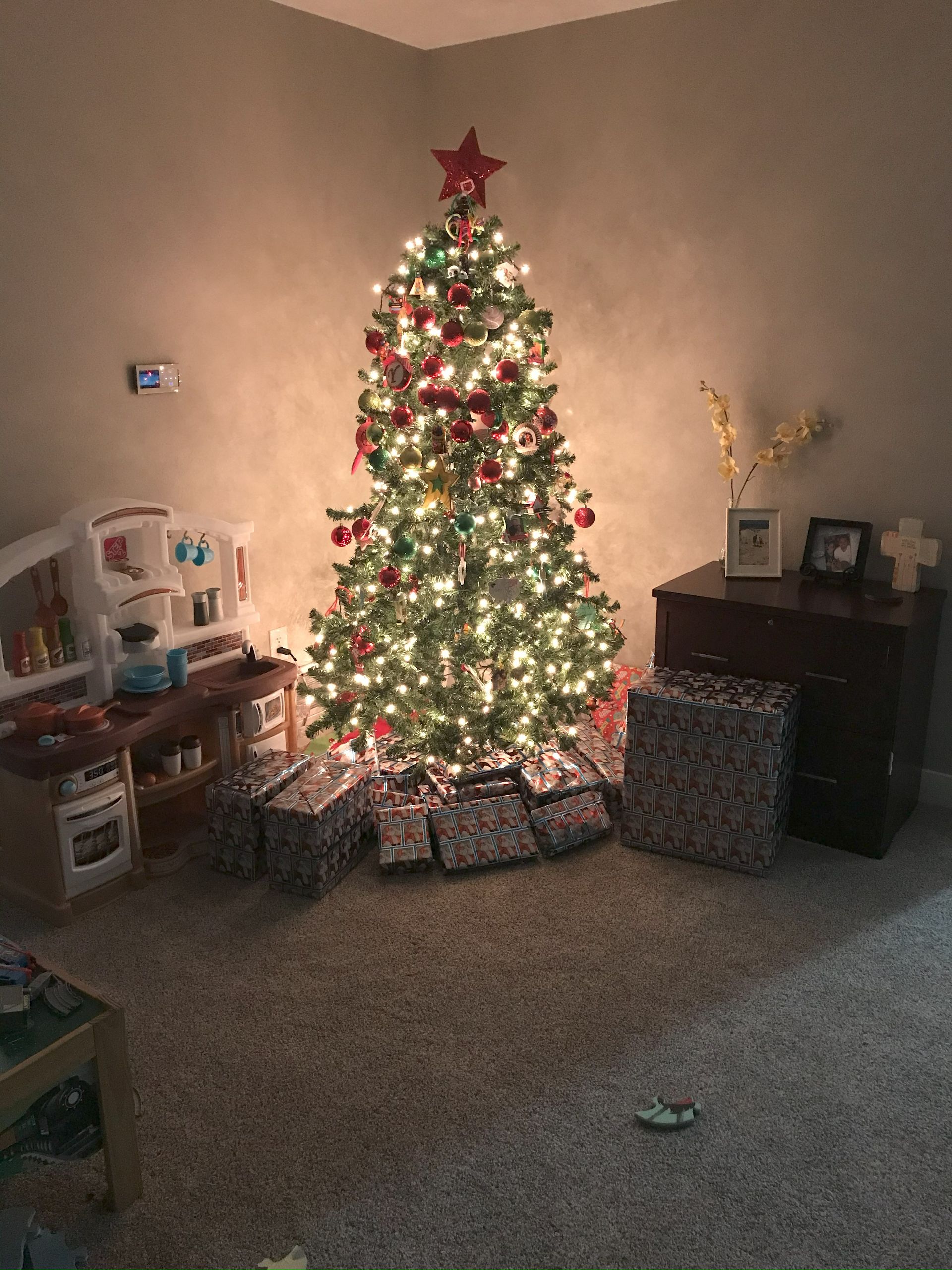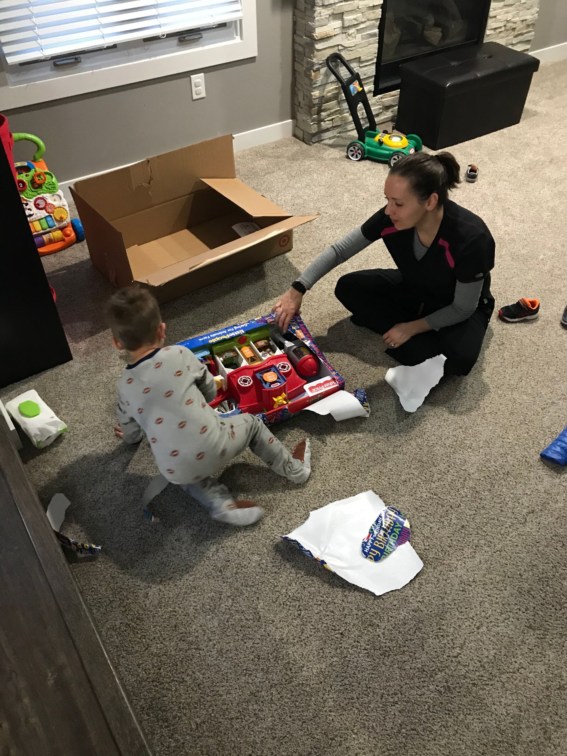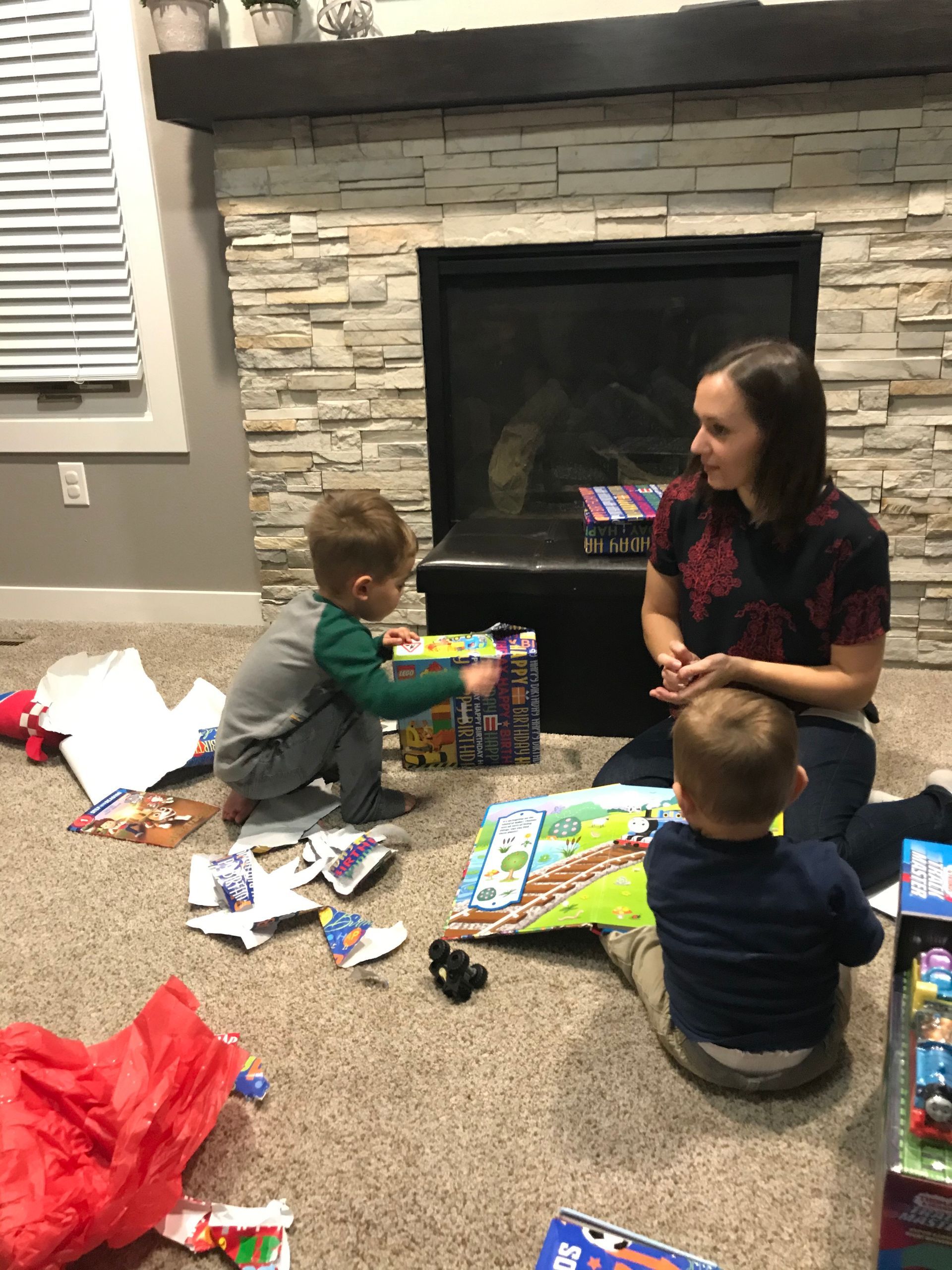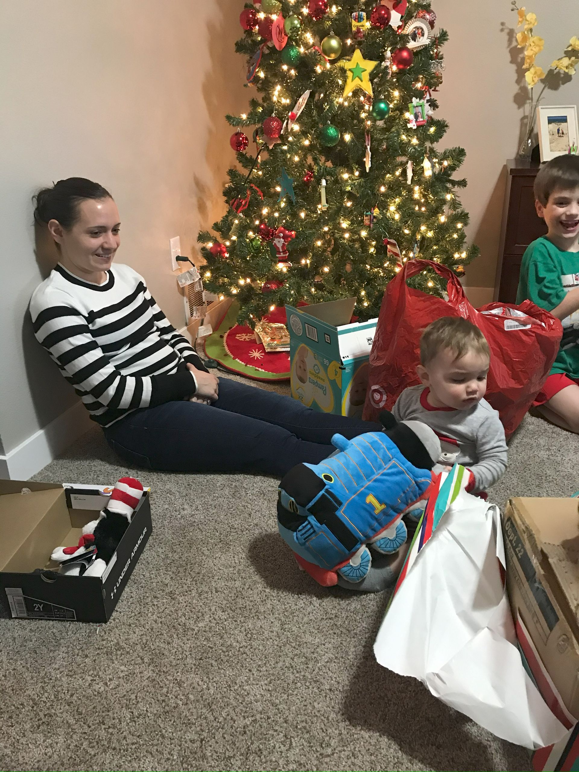 Santa came! Grant was excited and Blake was excited for the presents. They weren't as excited for the kitchen as I was expecting but they got a lot of great toys. Santa even found his Polar we have been looking all over the house for. It is noisy and loud but Grant loves it.