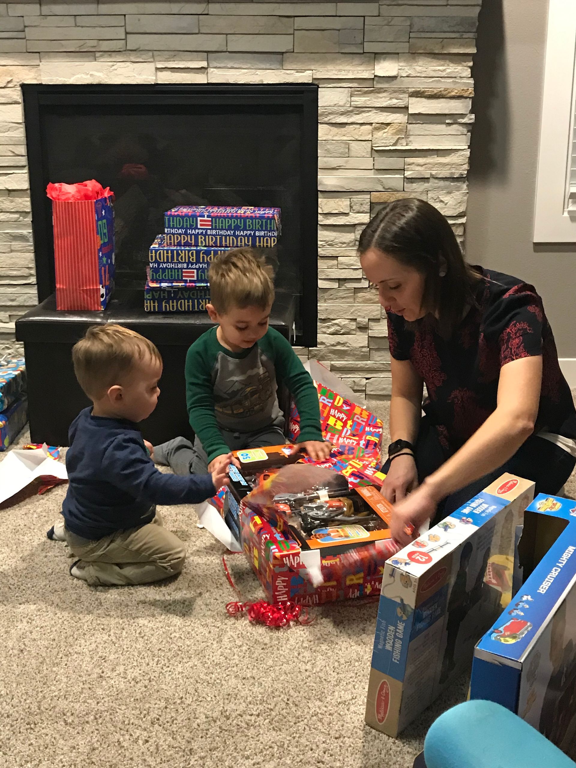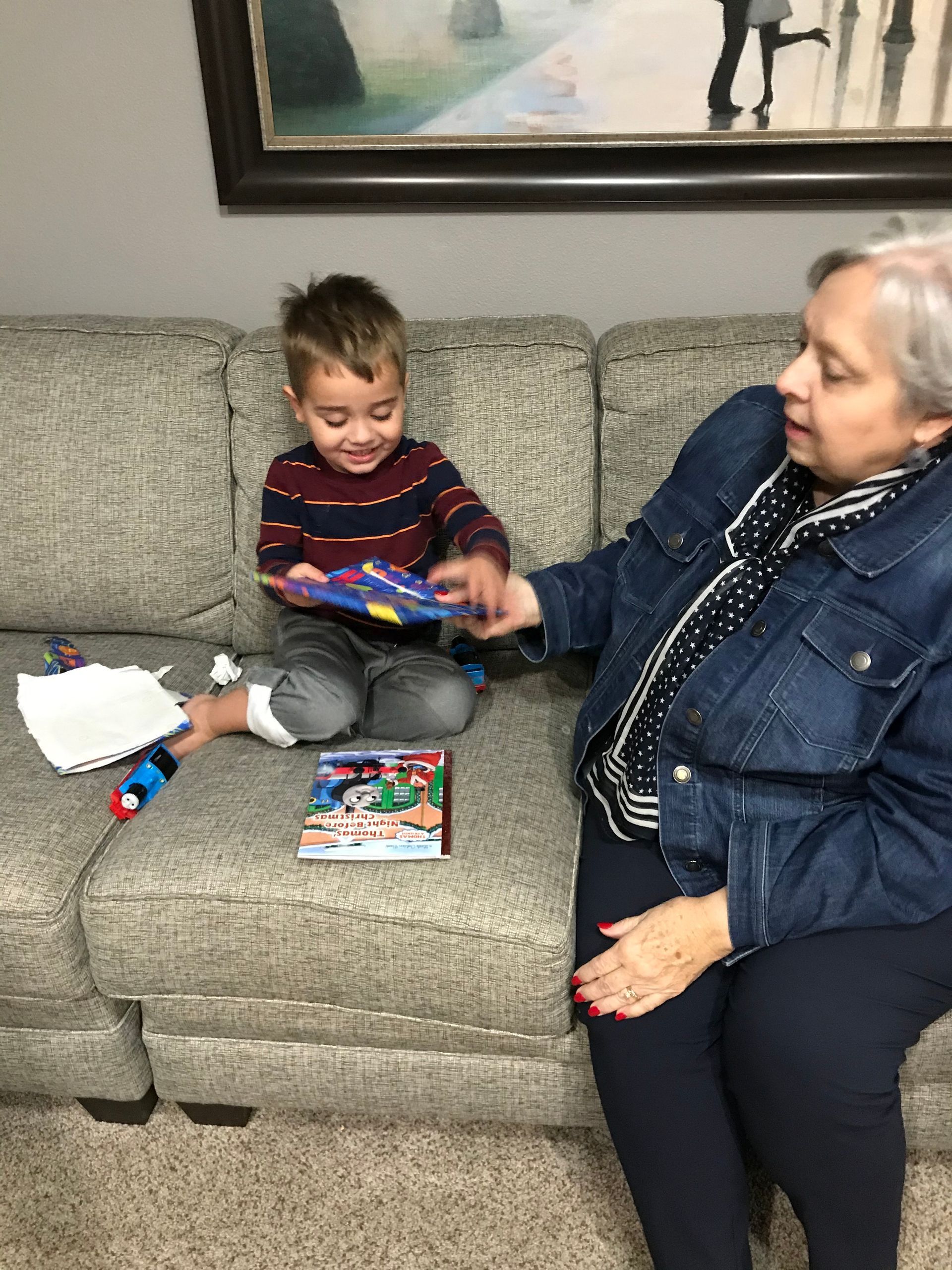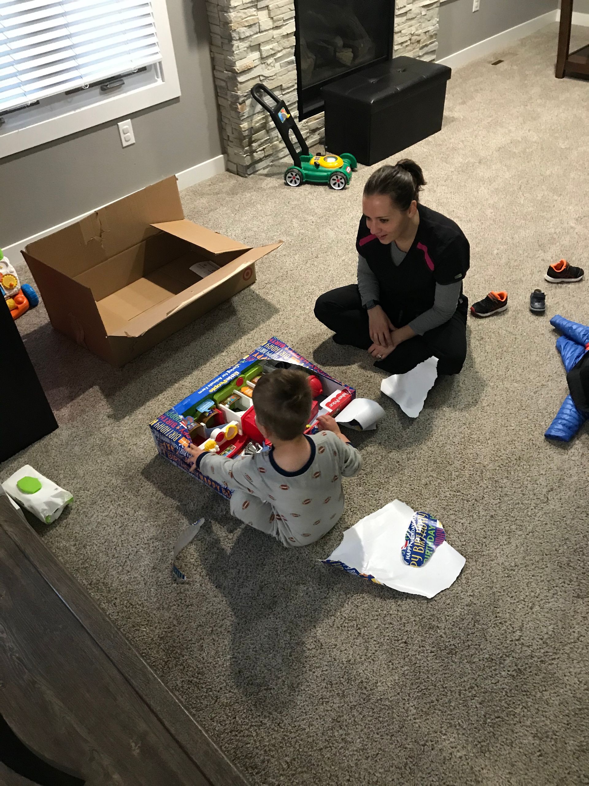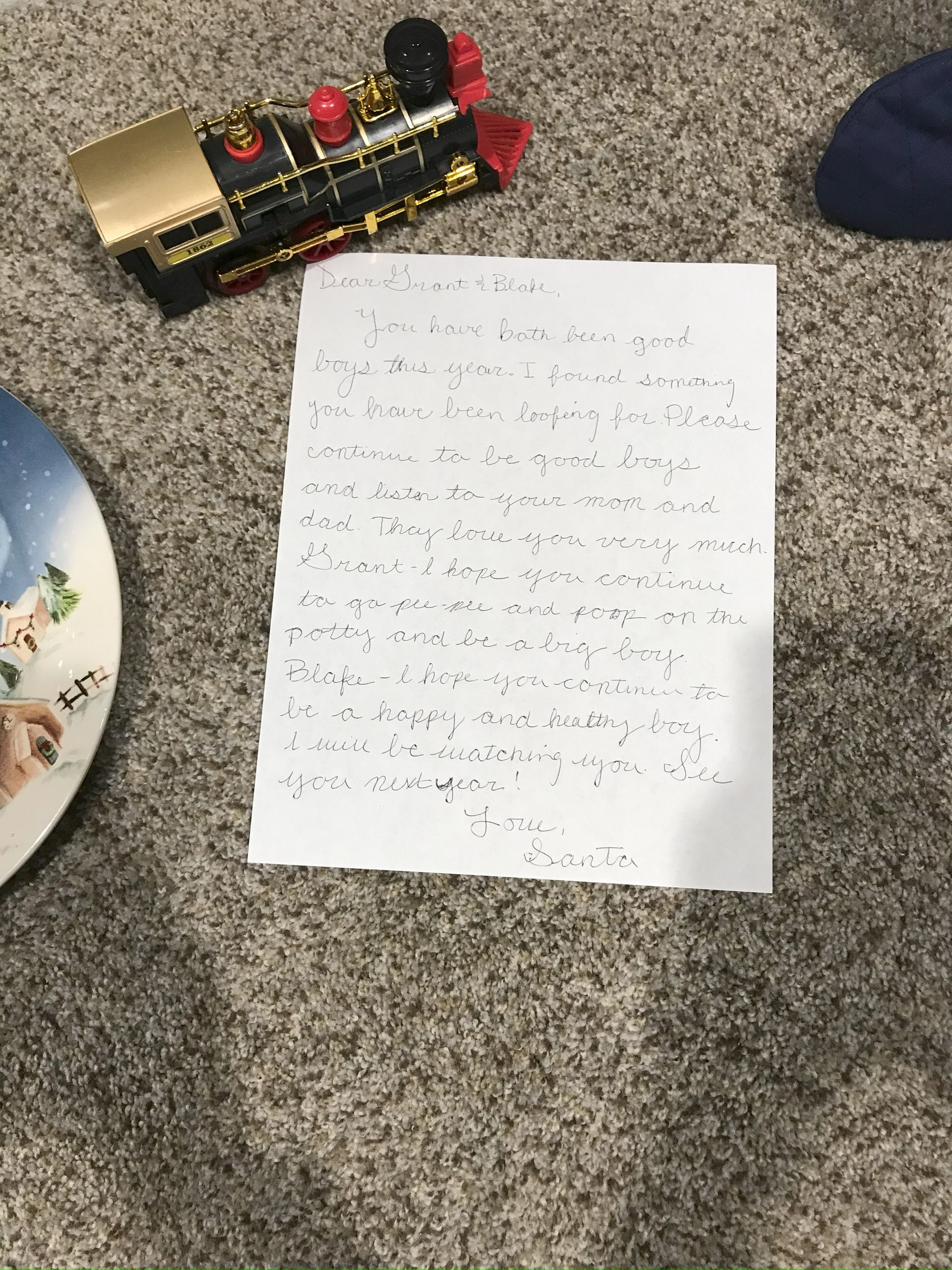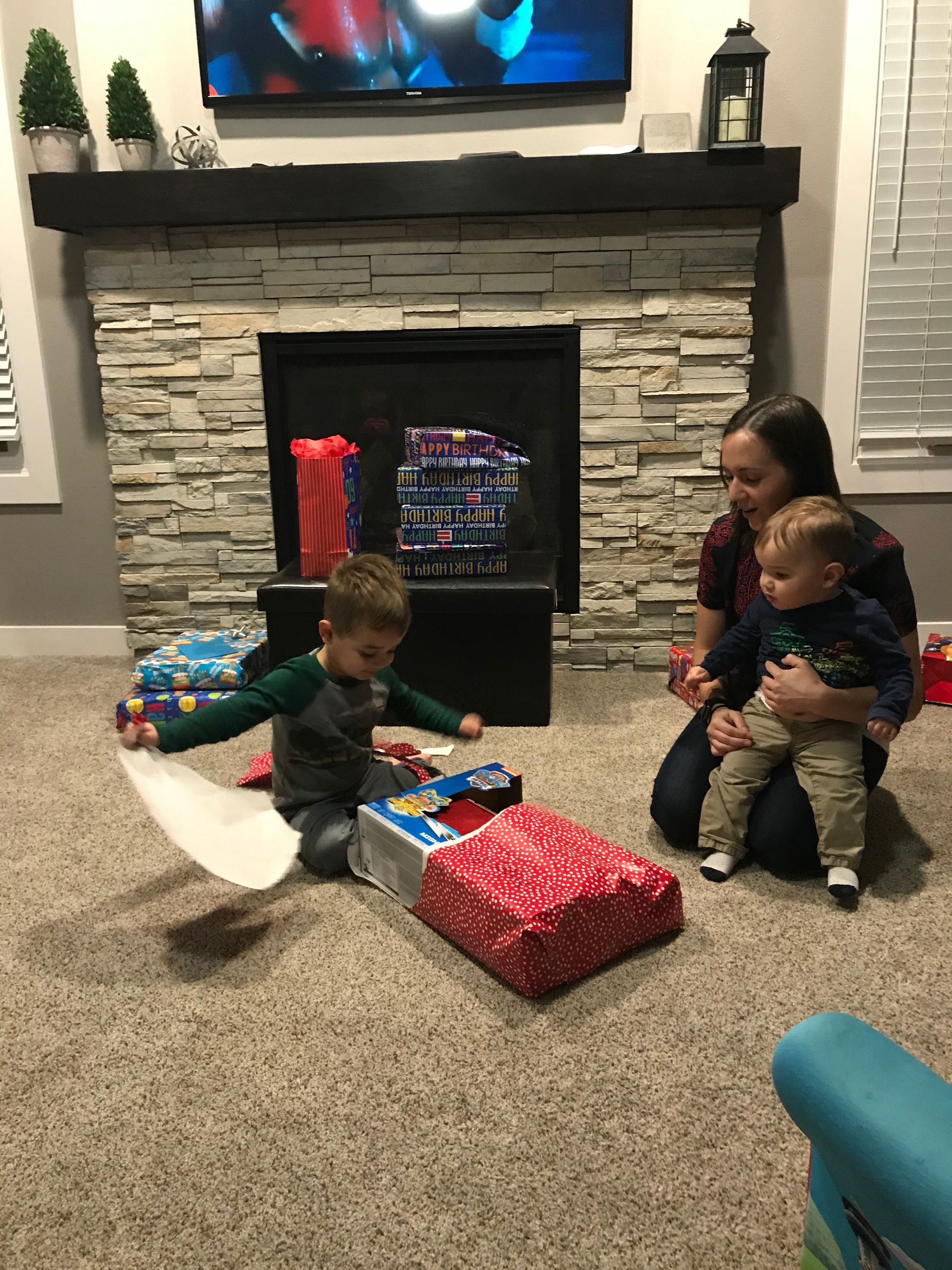 Santa came! Grant was excited and Blake was excited for the presents. They weren't as excited for the kitchen as I was expecting but they got a lot of great toys. Santa even found his Polar we have been looking all over the house for. It is noisy and loud but Grant loves it.
