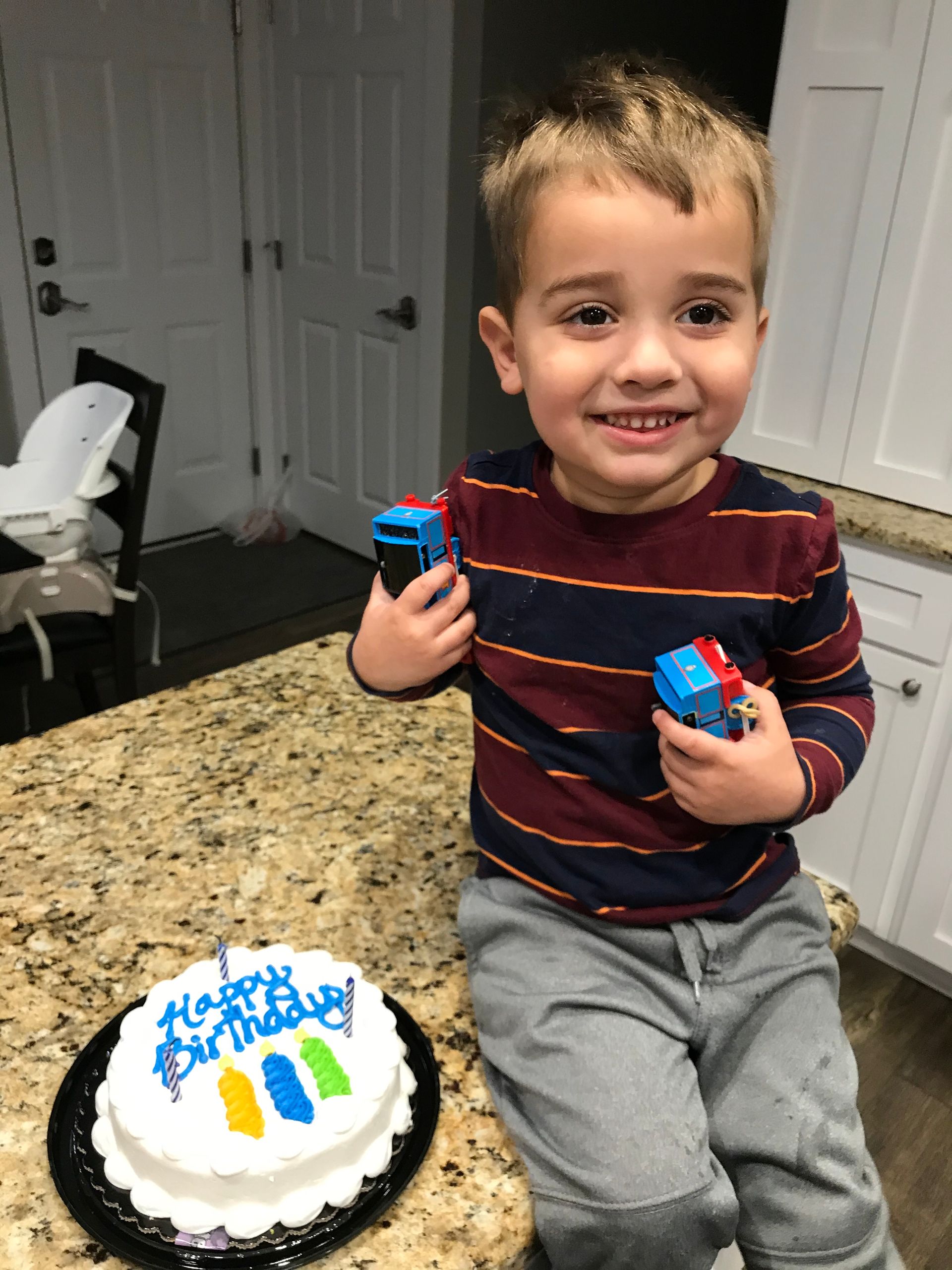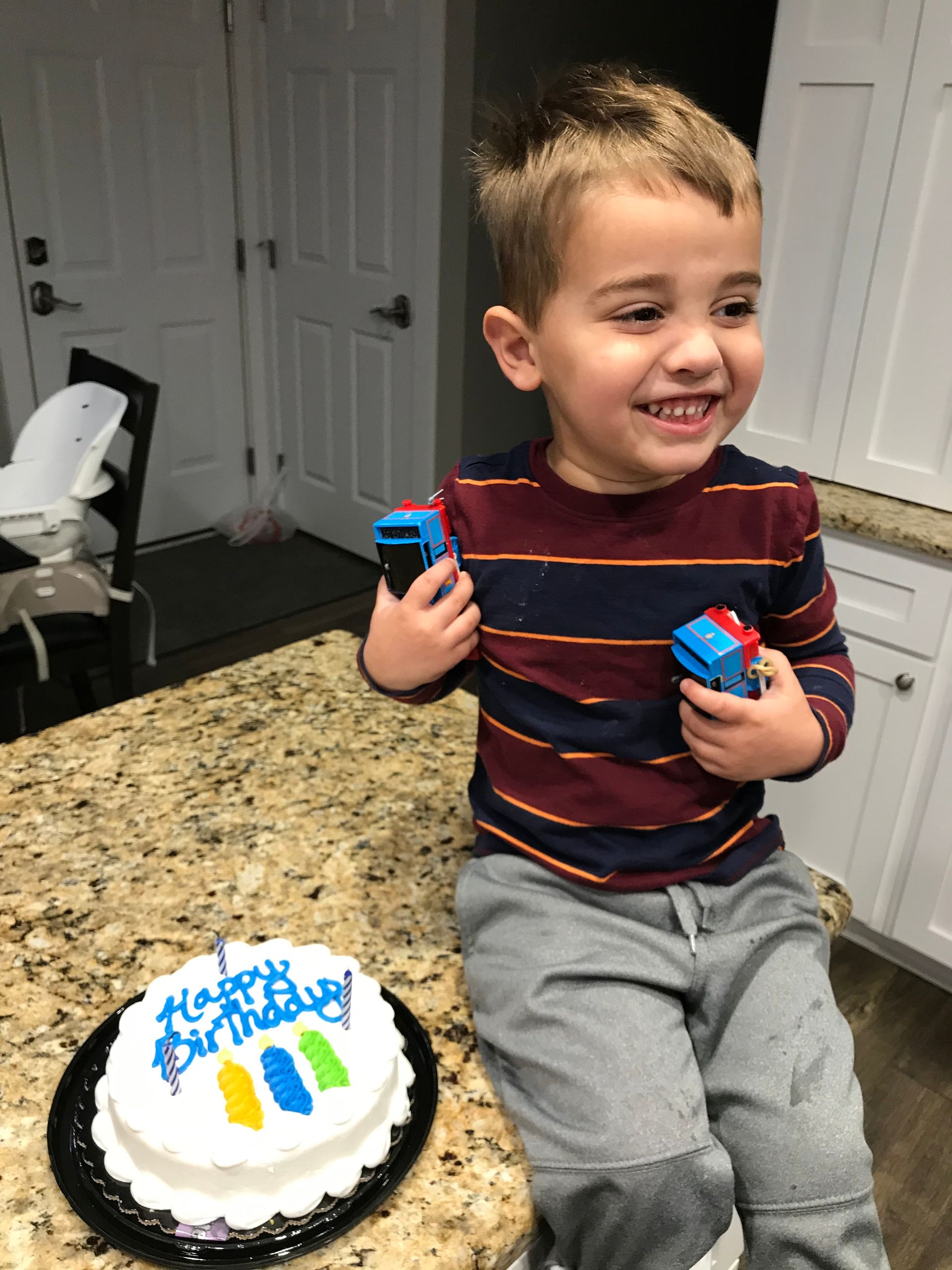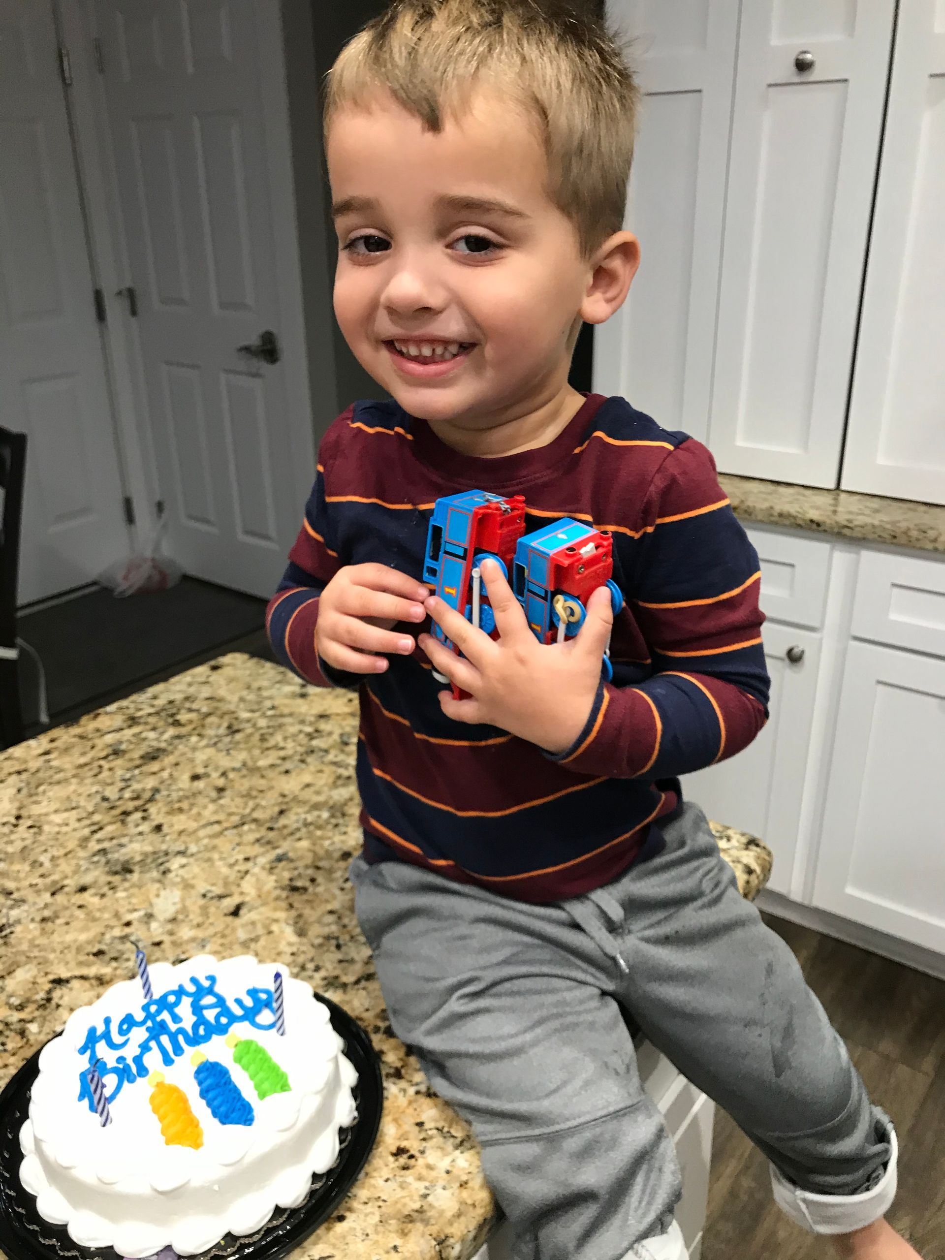 Grant opened a few presents on his birthday, got a cake and Nana came over to give him some presents! He loved all the celebration and presents! We can't believe we have a 3 year old already!!
