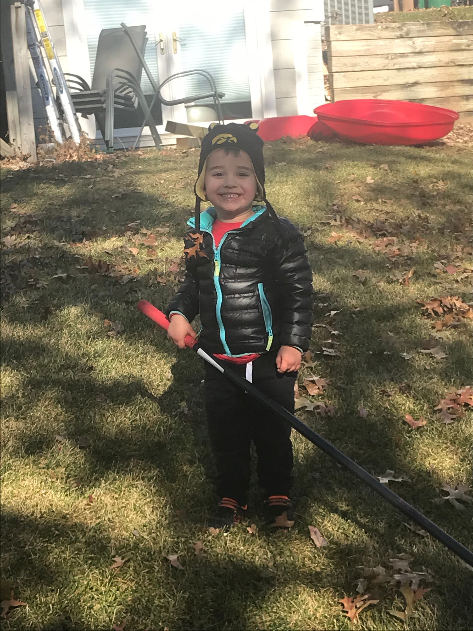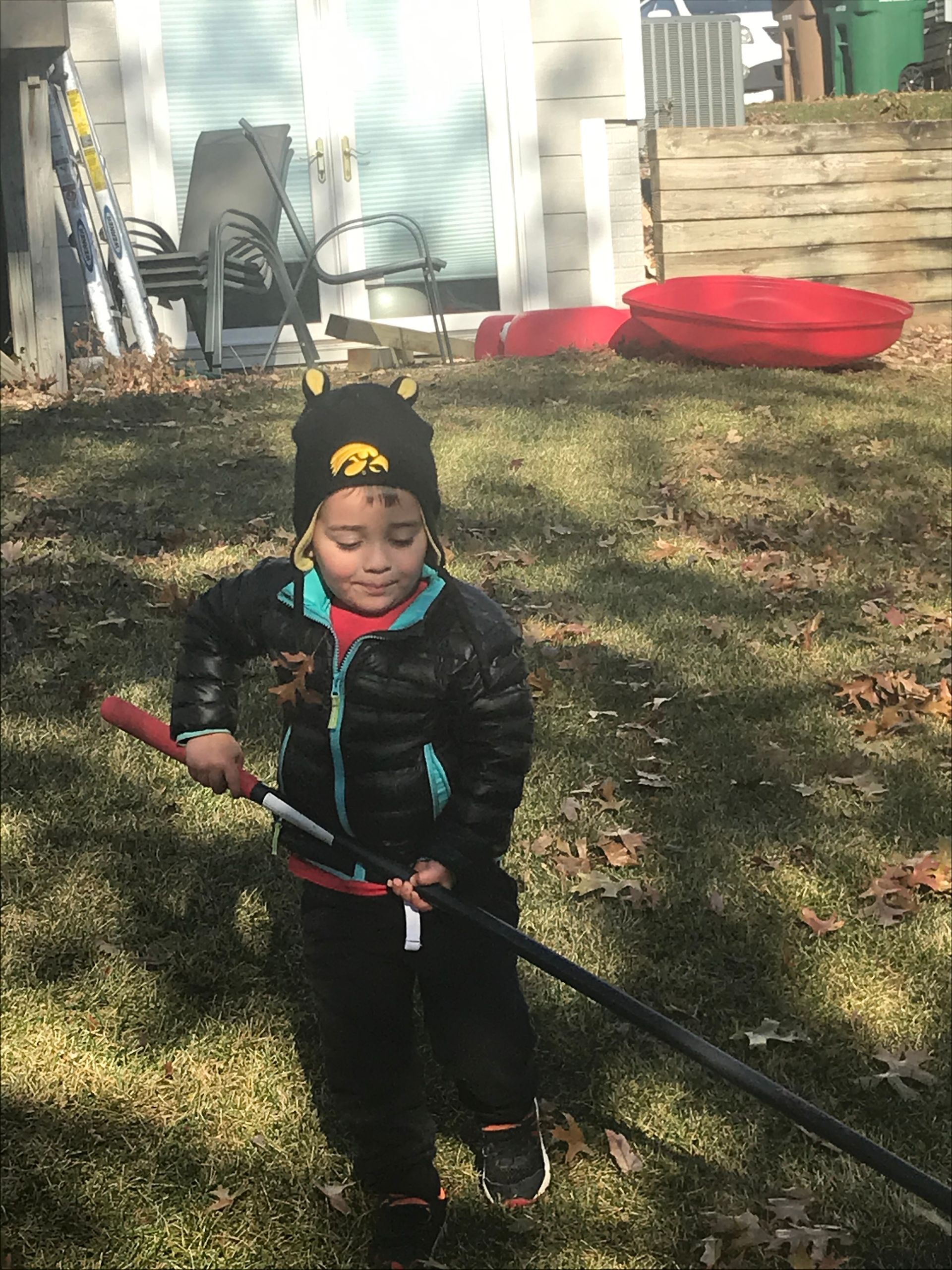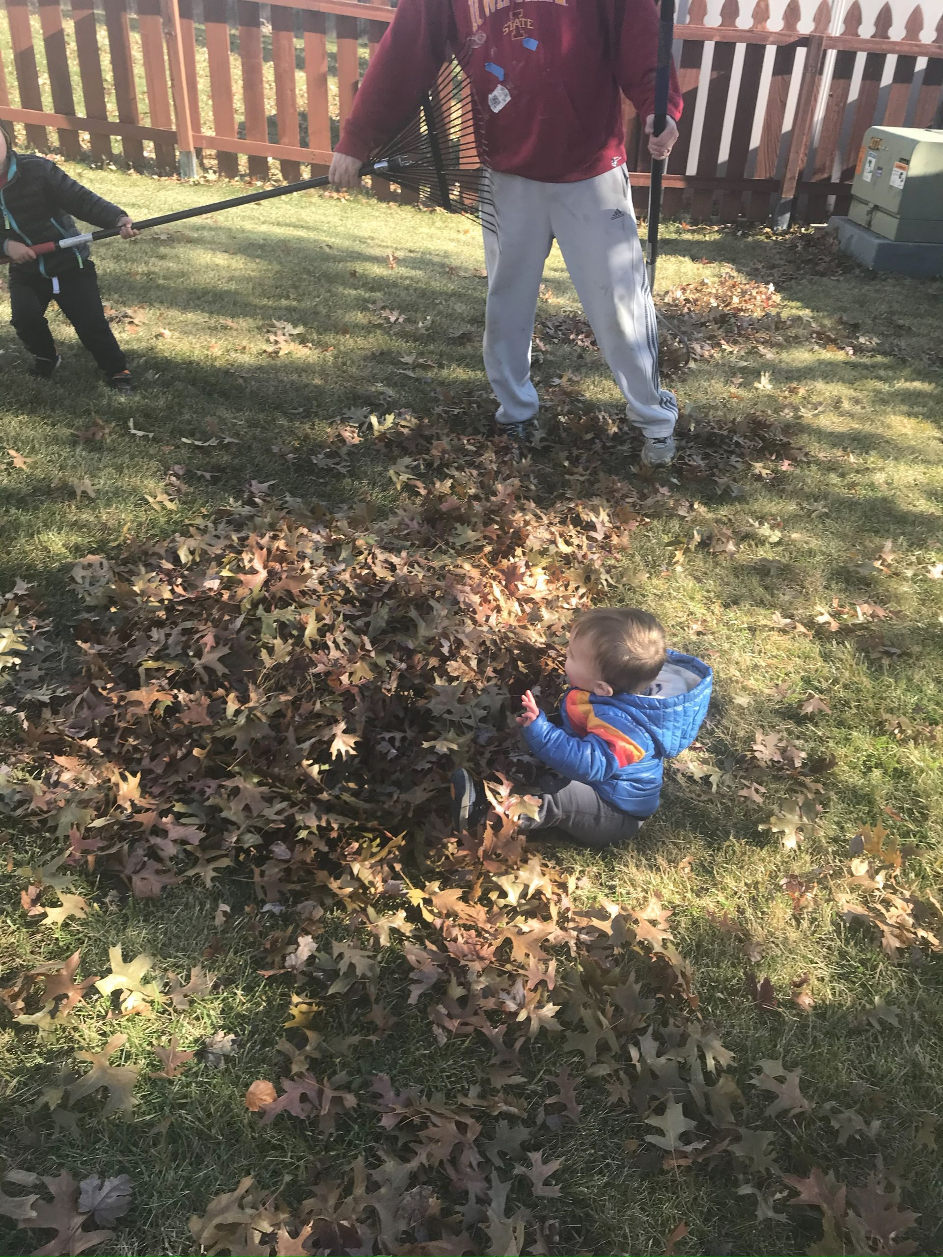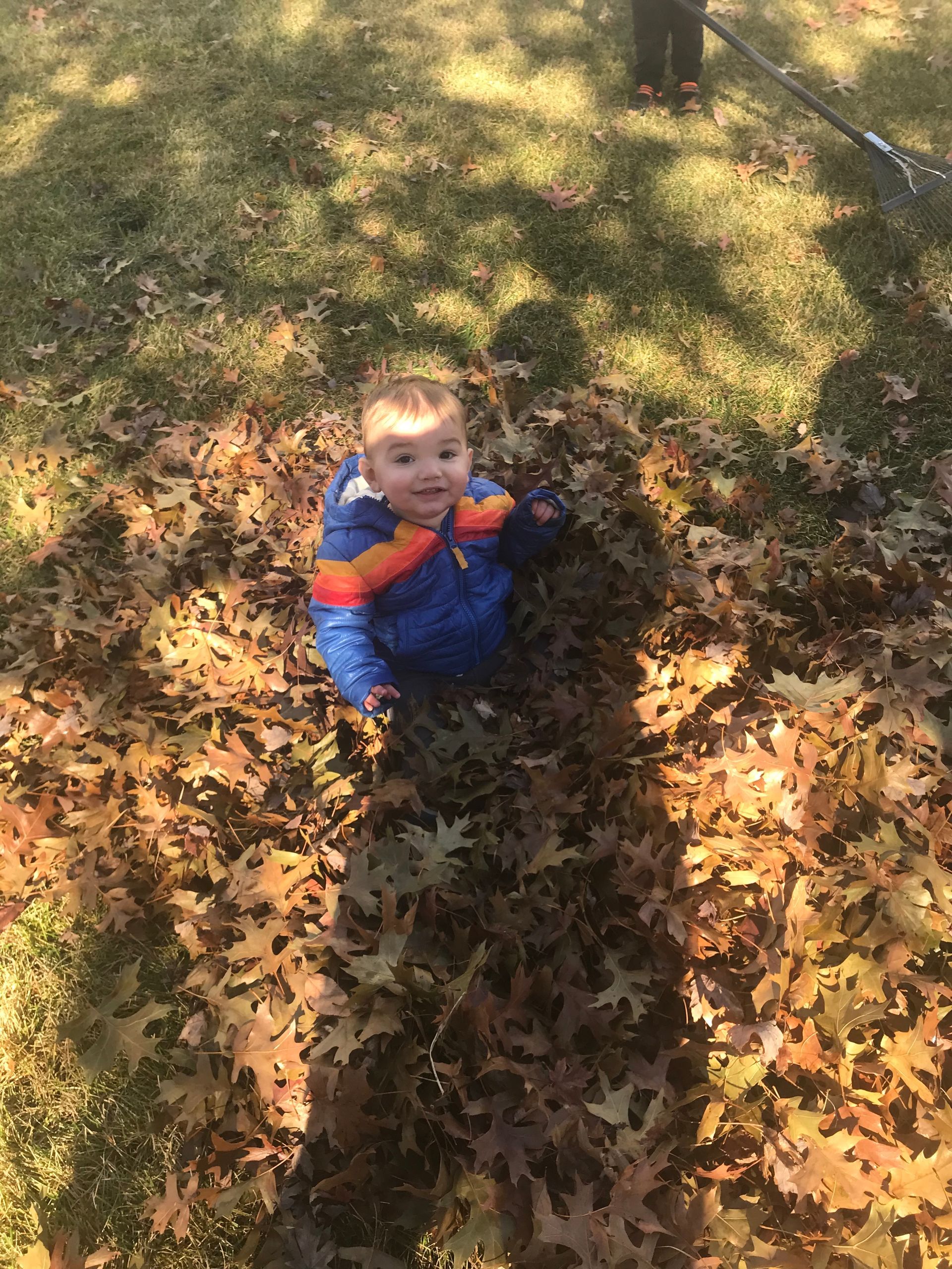 We have a LOT of leaves in our backyard. Greg tries to get rid of them and the next day our backyard is full again. It was nice outside one day so we had a family affair outside playing in the leaves.