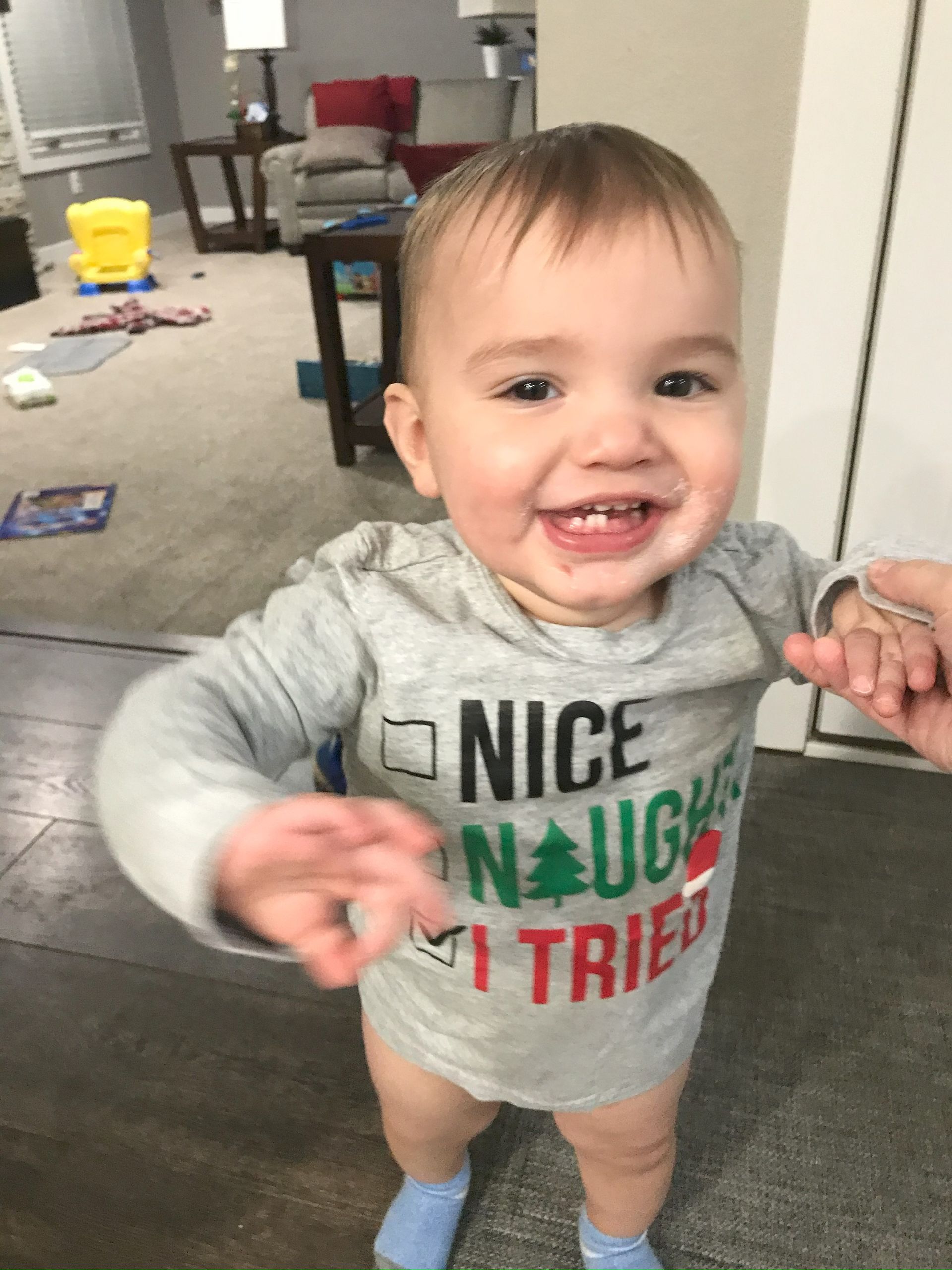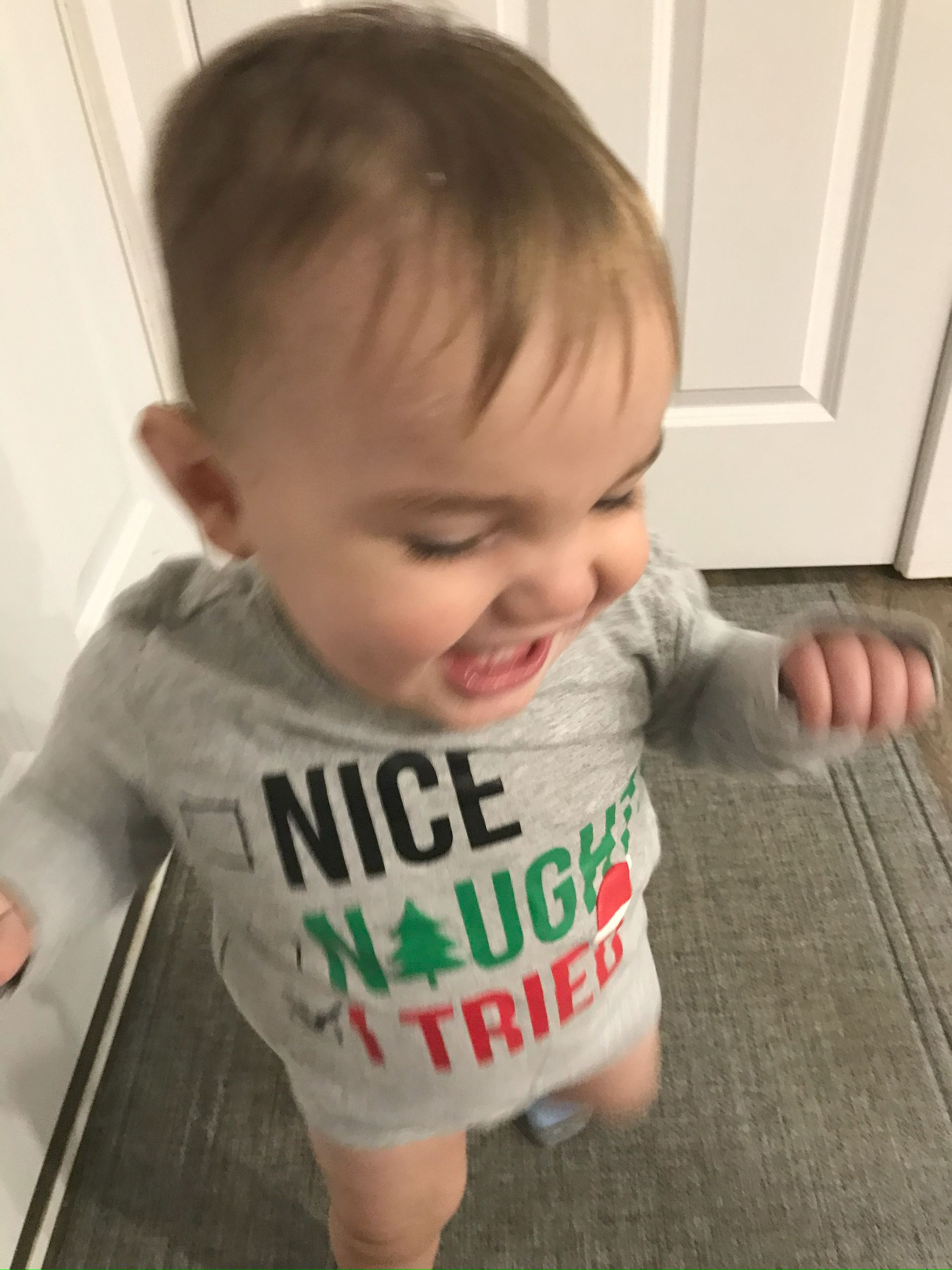 I caught some cute smiles out of Blakey in his Christmas shirt!