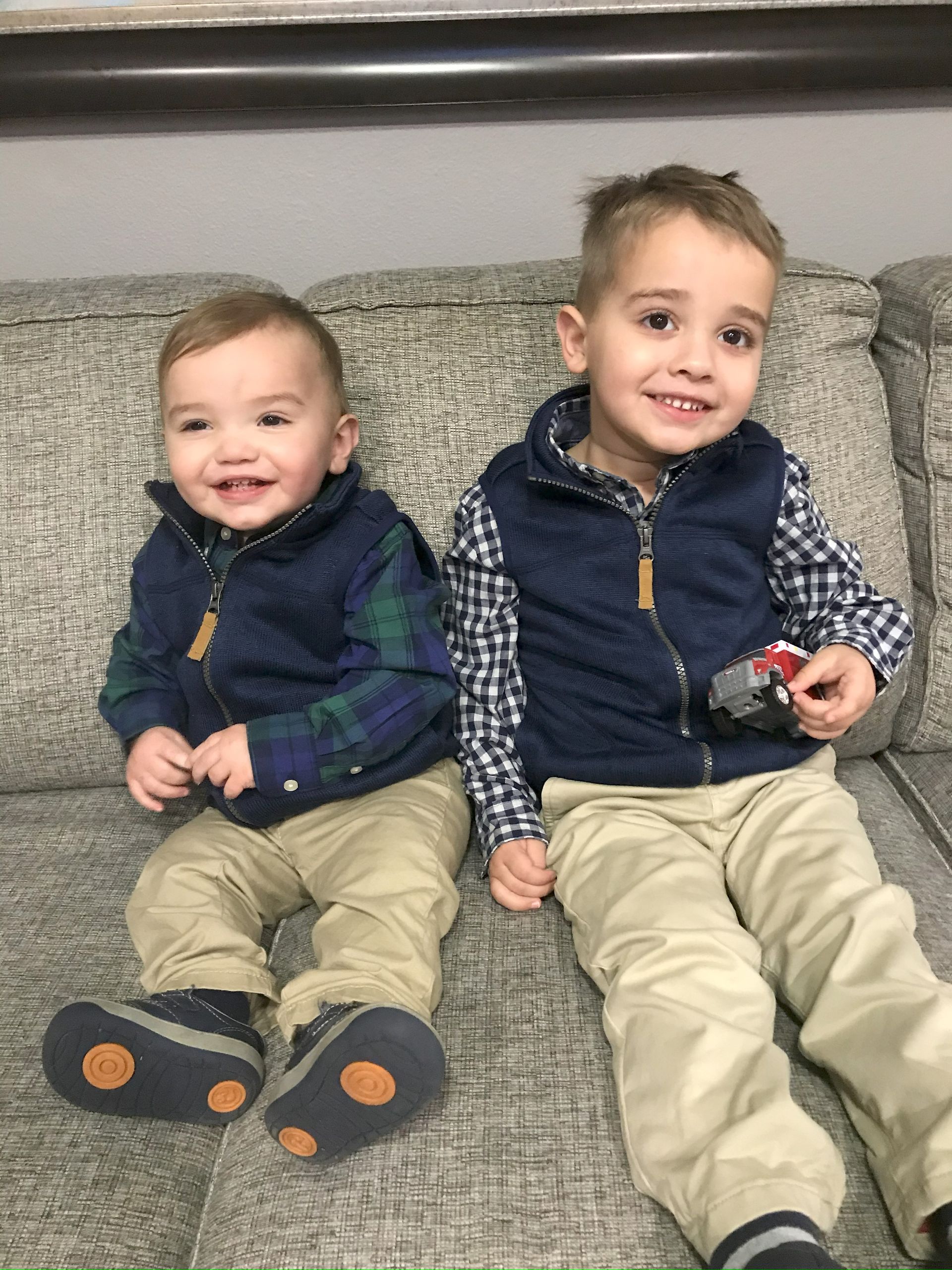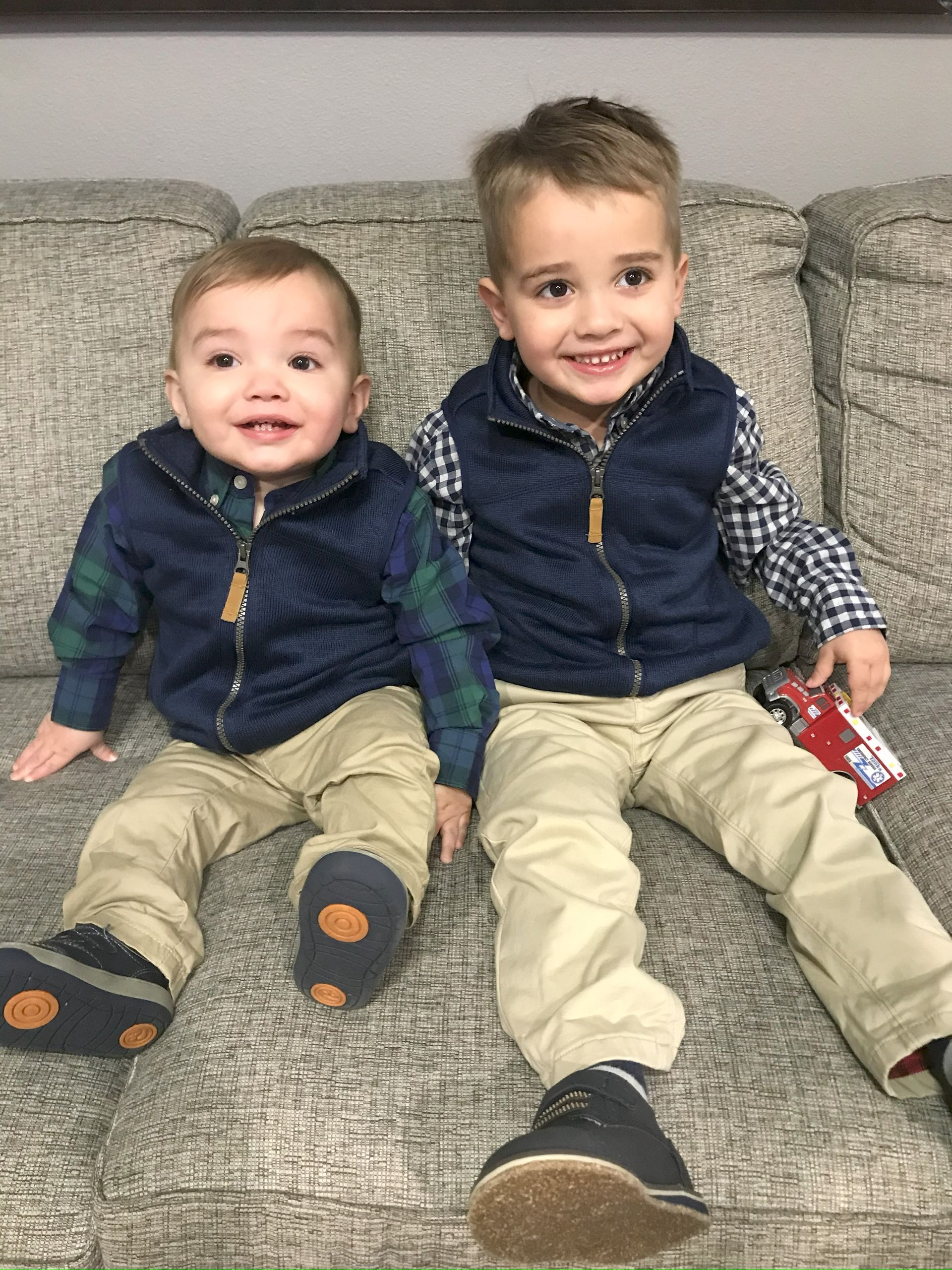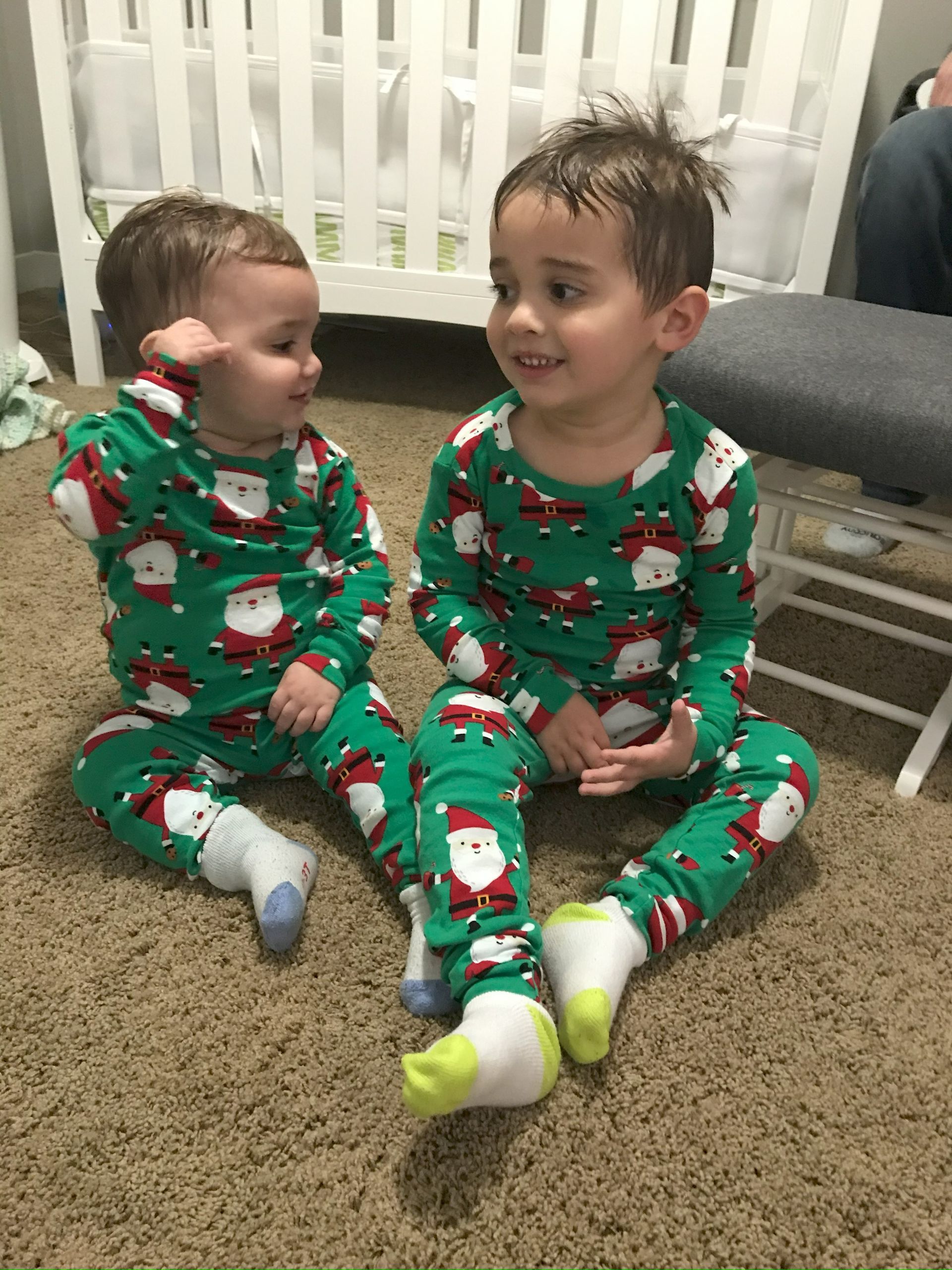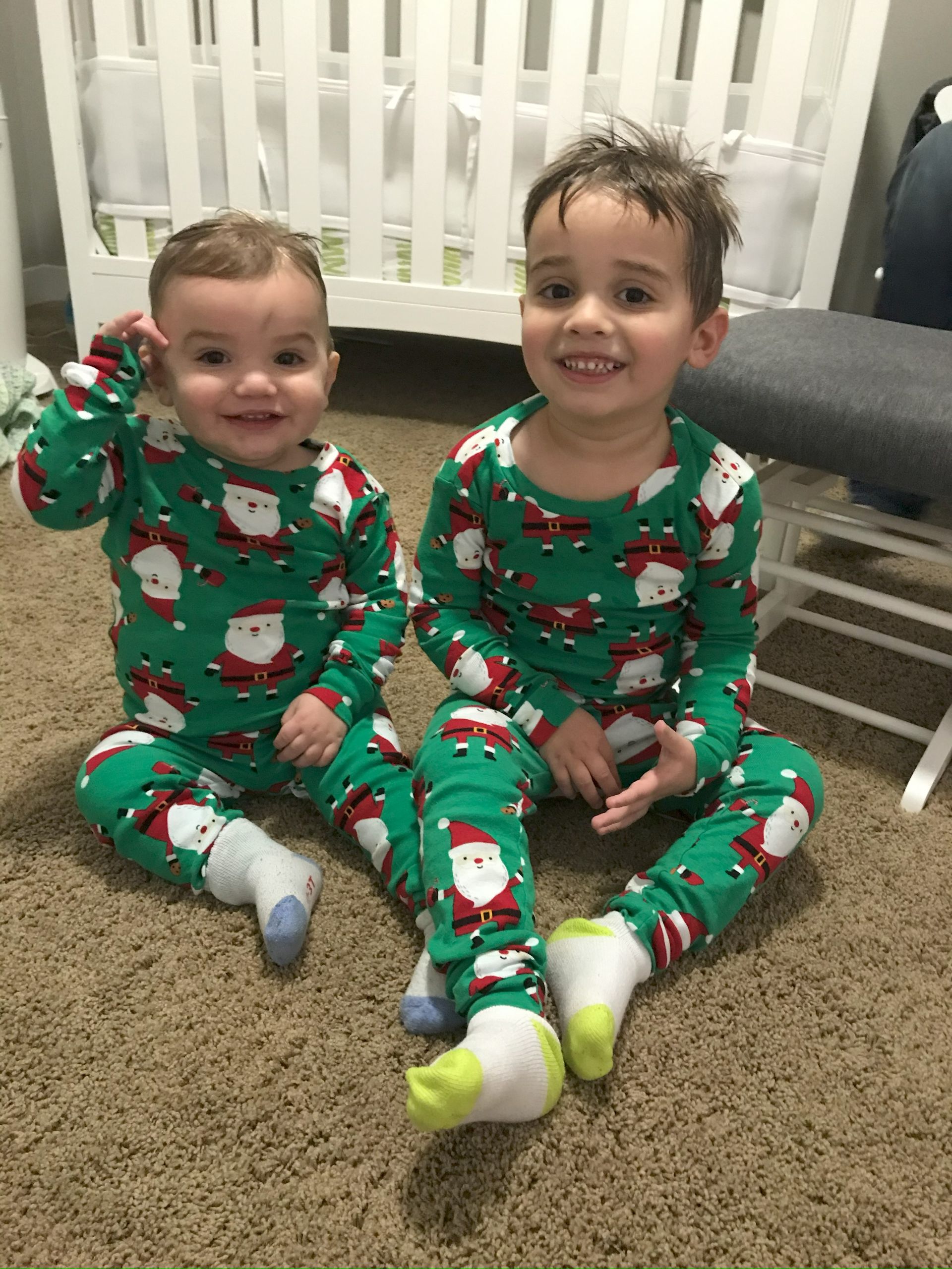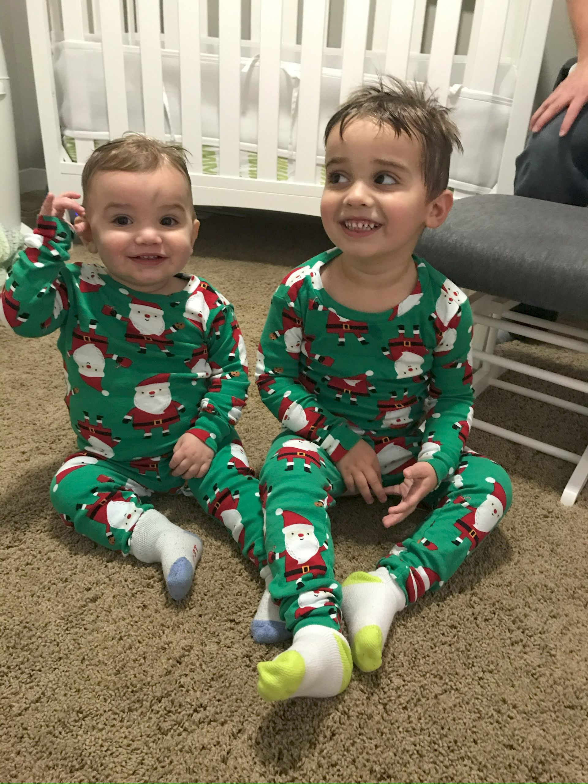 The boys got their cute Christmas pajamas on and I caught them both smiling!