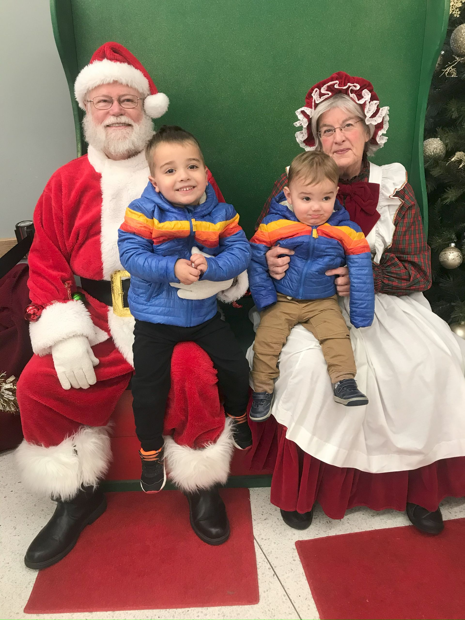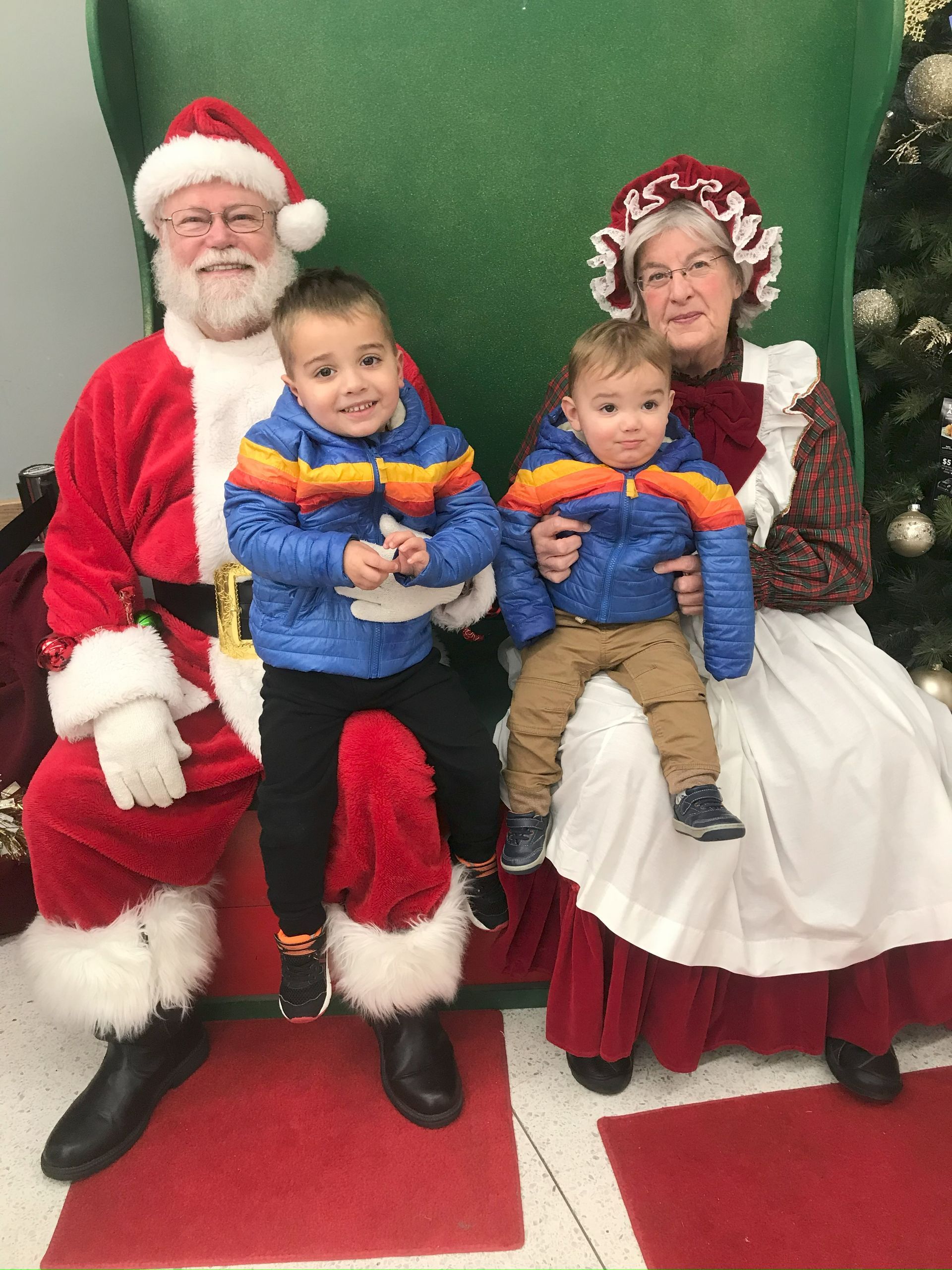 We went to Hy-Vee to go shopping and Santa and Ms. Claus were there! Grant was excited to see Santa but Blake wasn't too sure about them. You can see the tears are about to start flowing. :(
