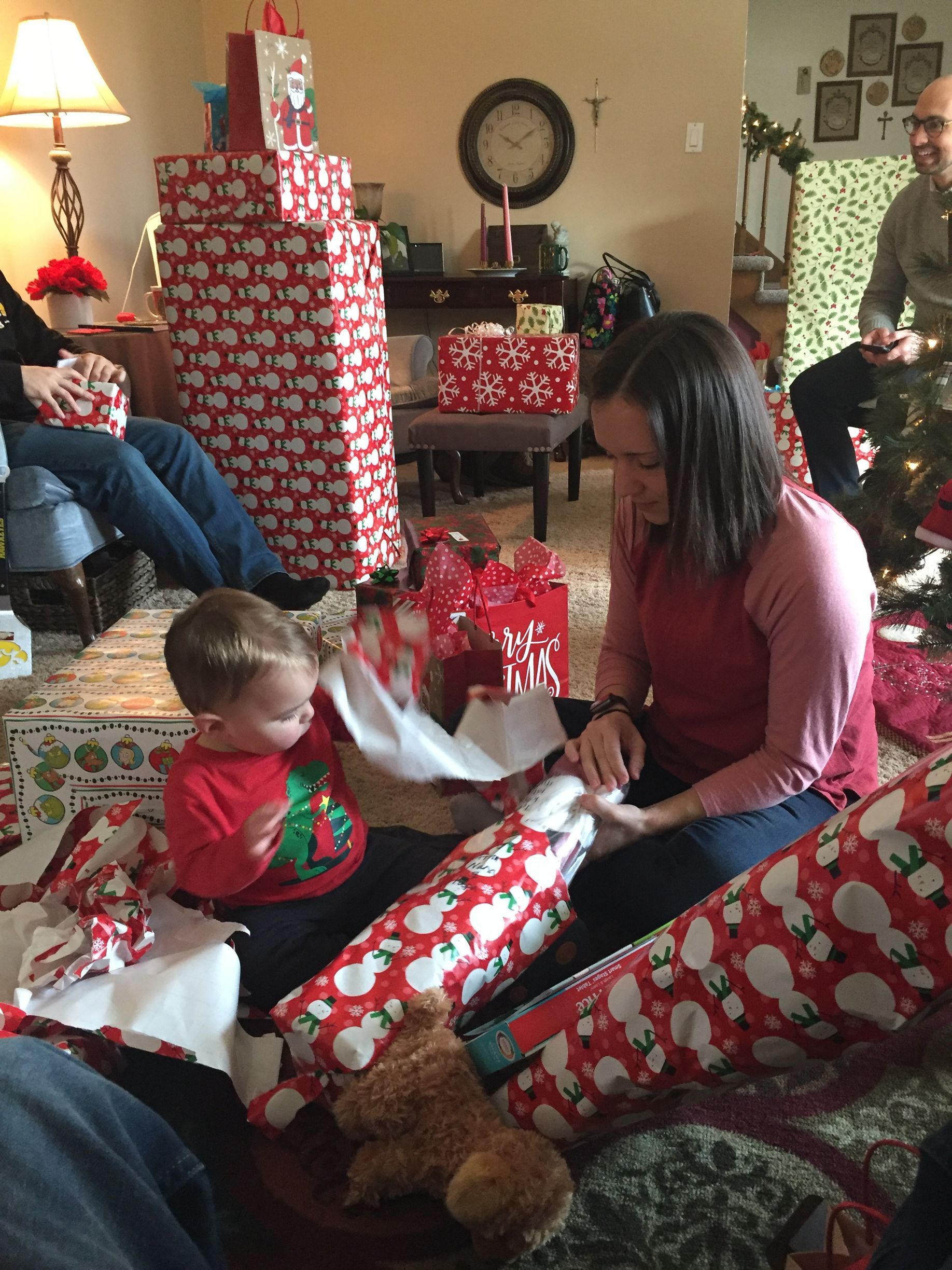 We went to Nana and Papas on Christmas Eve morning for presents and coffee cake! This was the start of our many Christmas's to come in the next two days. Later that evening we went to Aunt Randi's and had dinner and they opened a few more presents and Santa flew over her house! We had to get home after that to make sure Santa didn't miss our house.
