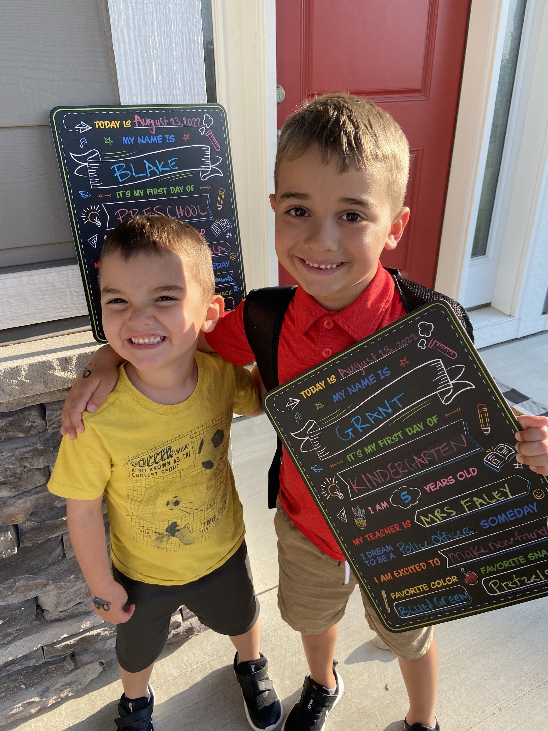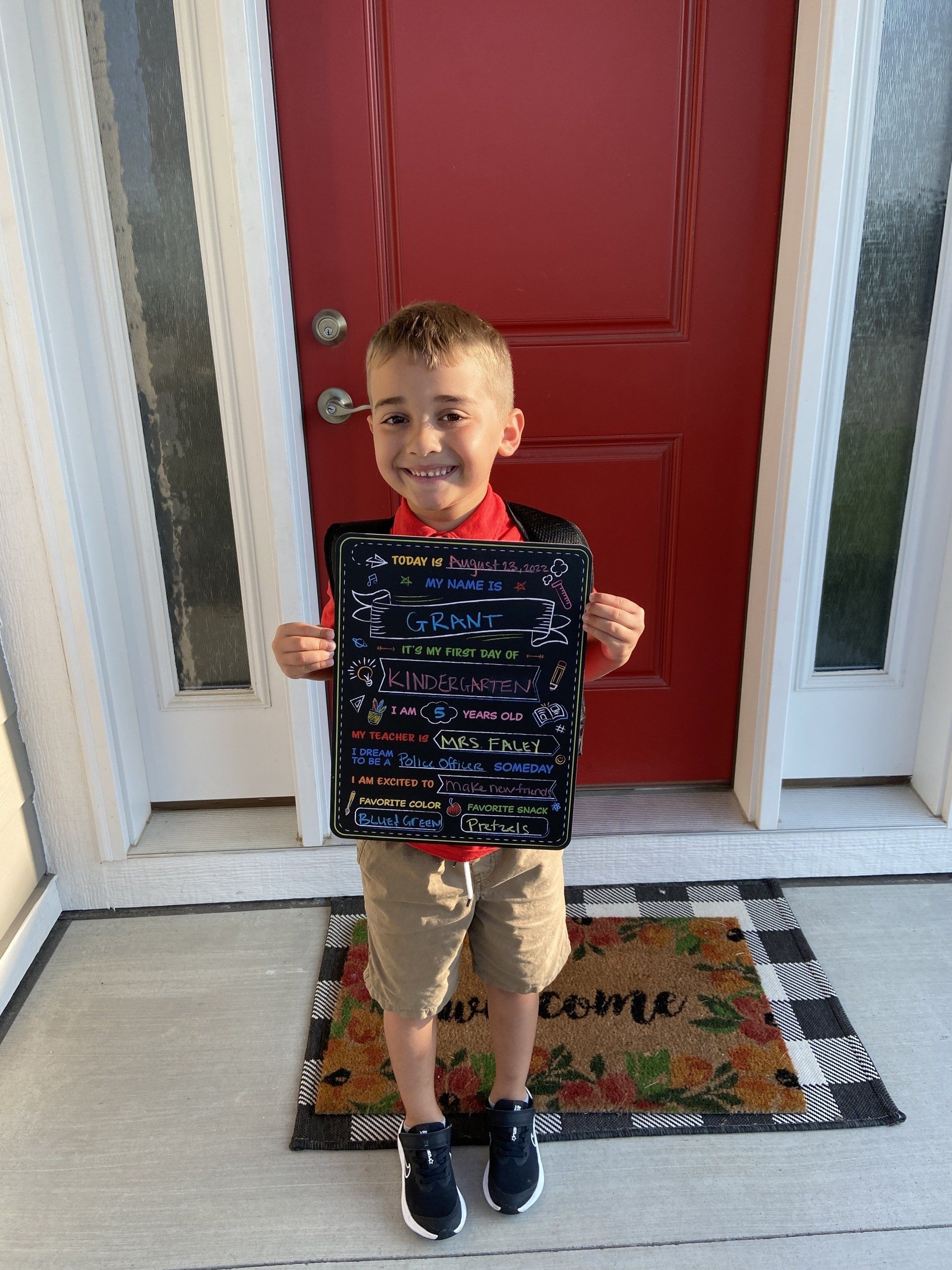 It was a big day this month. Grant started Kindergarten!!! He was nervous but SO excited! I teared up watching him walk in. He was so brave and walked inside all by himself. He has one friend, Camden, from daycare so that helped ease some of his nerves. We can't wait to watch him succeed this year!