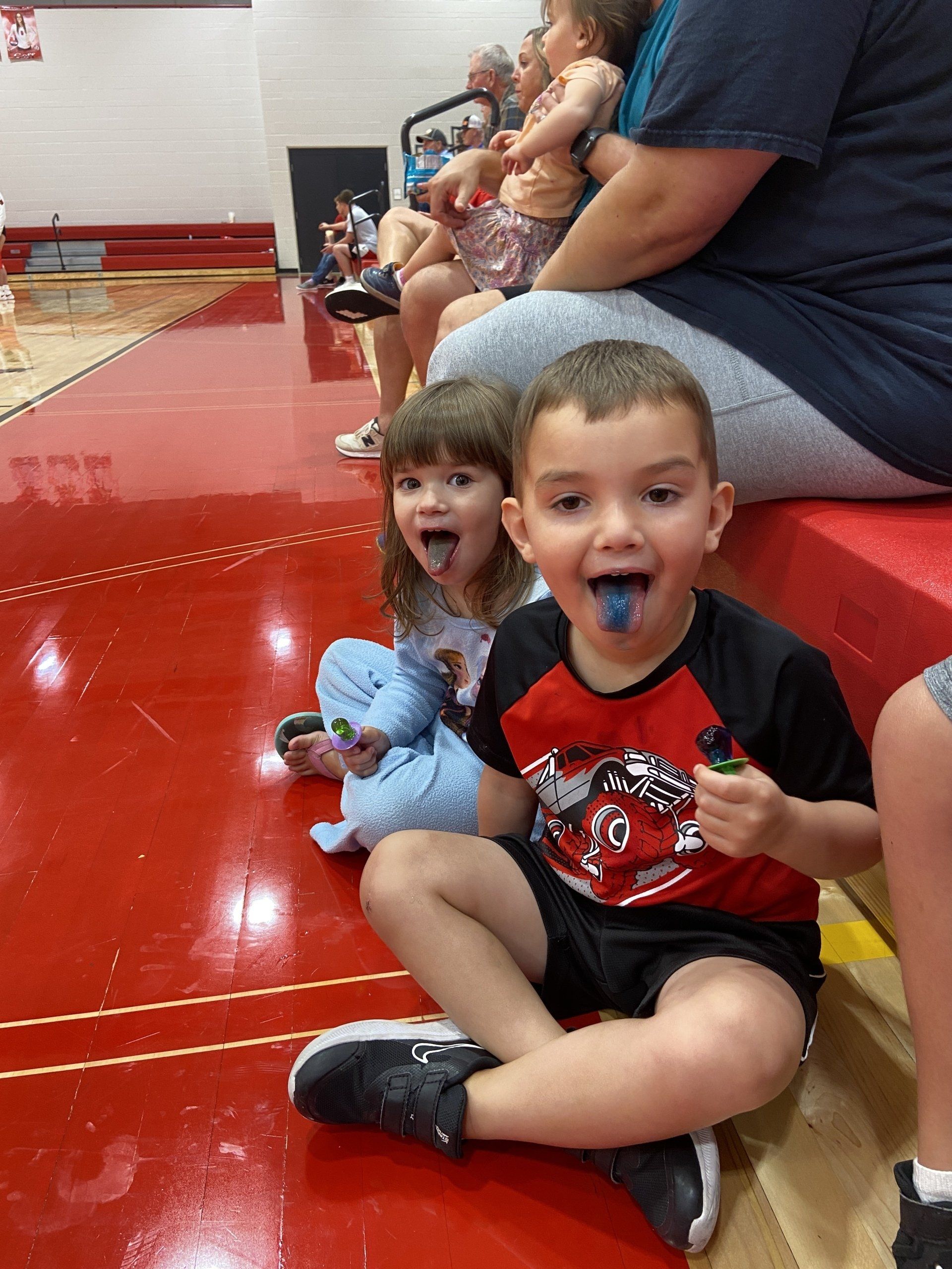 We went to watch Kailey play volleyball and the cousins had fun together while having ring pops!