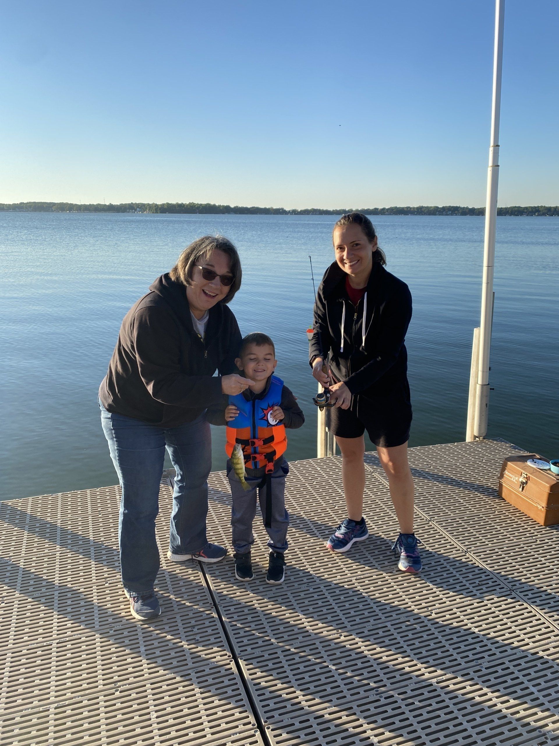 We went to Clear Lake at the end of September to celebrate Cal and spread some of his ashes on the lake. One of his favorite places to fish! It was a fun weekend with family. The house we stayed at was beautiful and had a beautiful view of the lake.It was a little colder than we would have liked but we were able to go on a ferry on the lake and out to dinner a few times. We were also able to fish Sunday morning before we left. Blake was the only one to catch a fish but we were glad to catch one!
