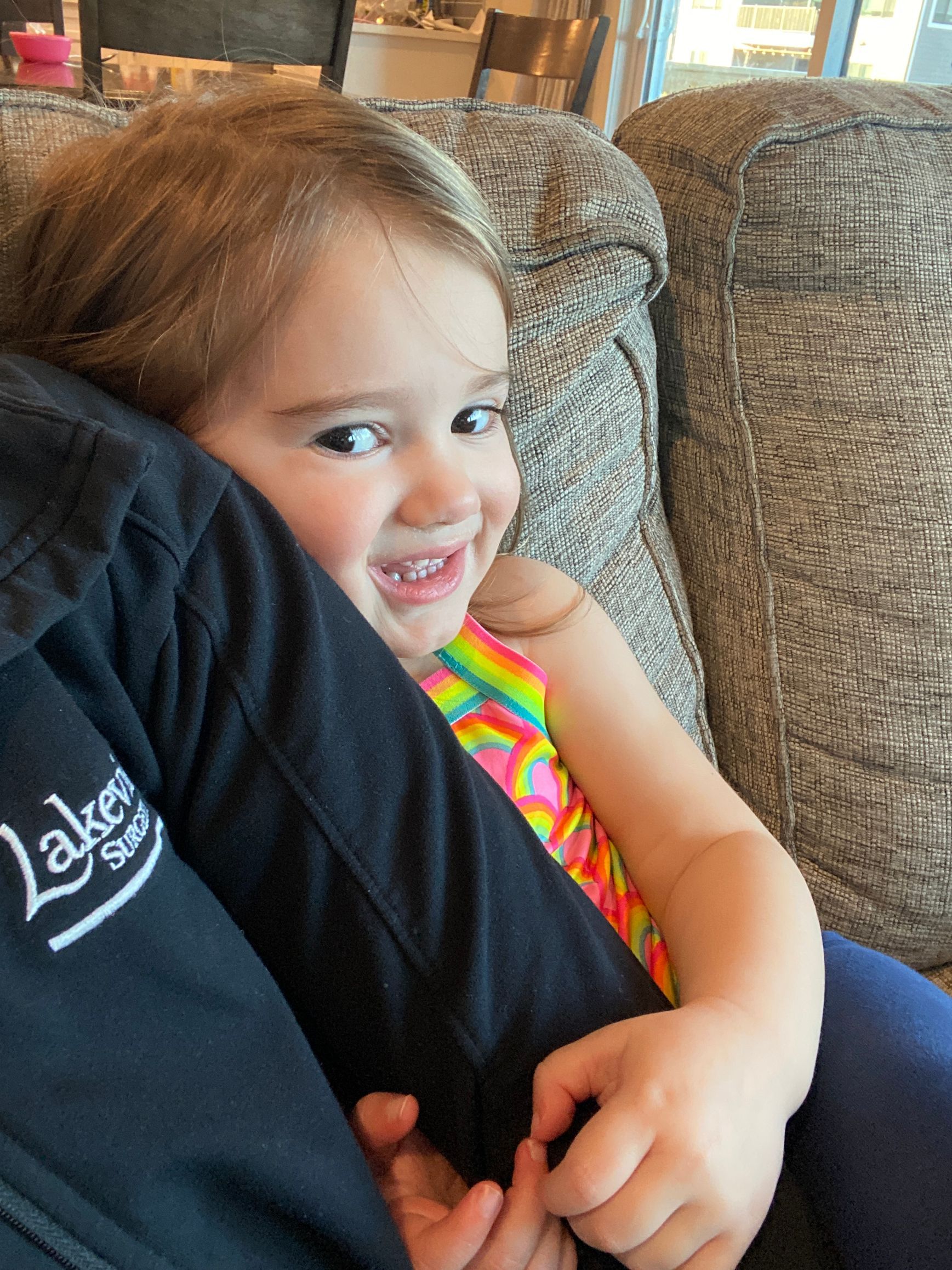 My coworker gave me some swim suits and Claire found them when she got home and HAD to put them on right away. Then she told me to take a picture and posed for me. So sweet but definitely turning into that threenager already.