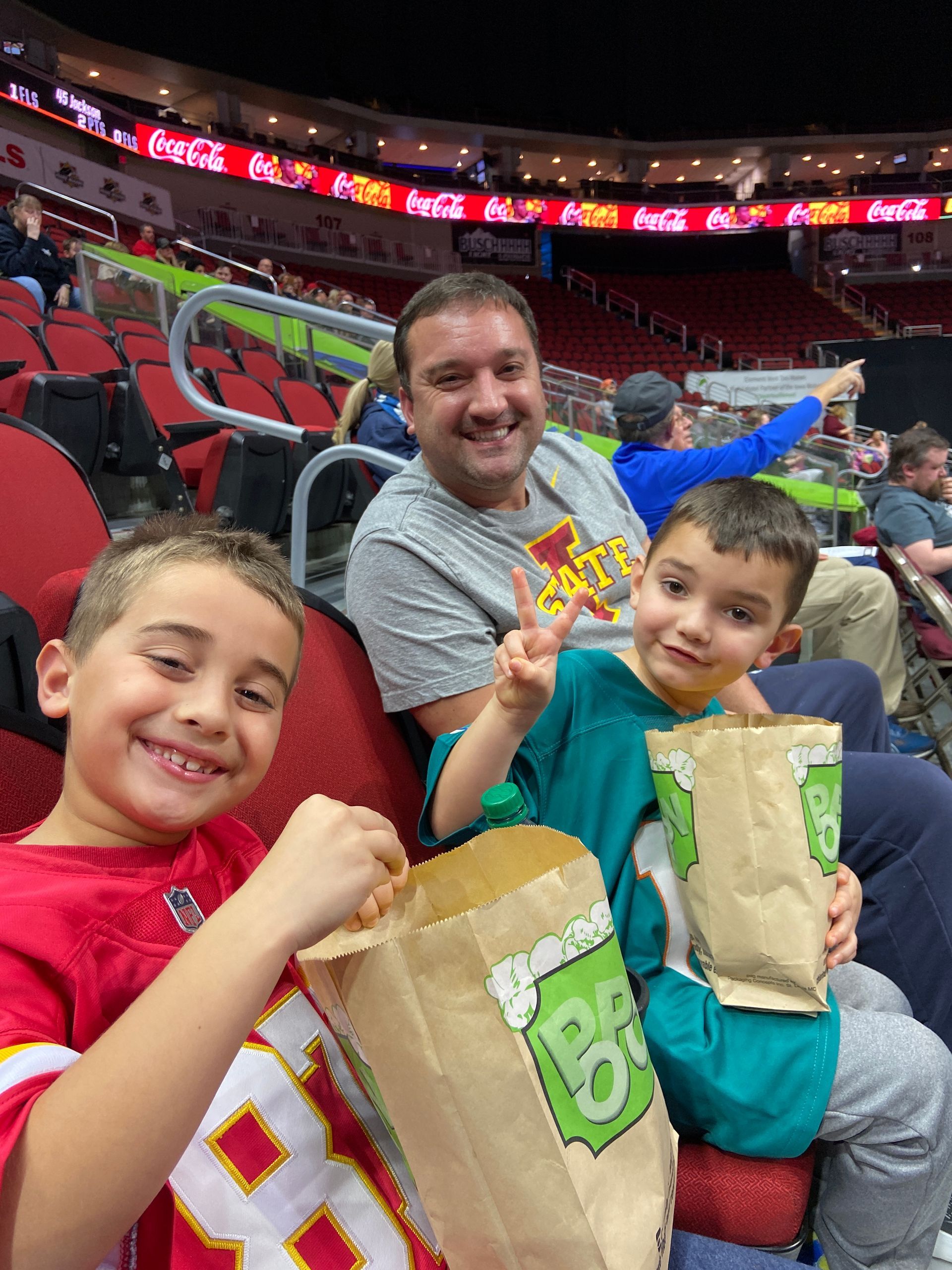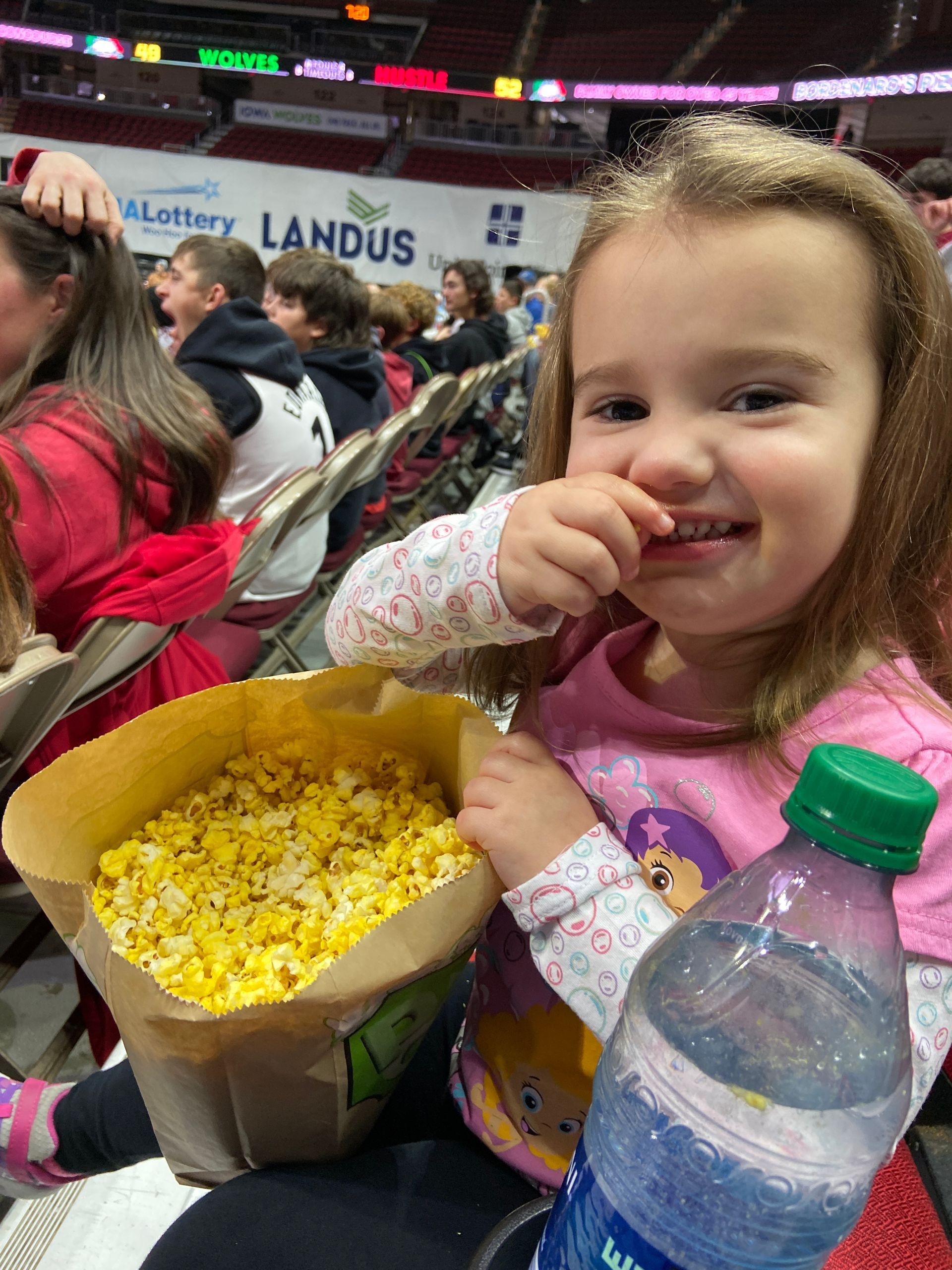 Greg won some free tickets to an Iowa Wolves basketball game. We weren't sure how Blake and Claire were going to do but everyone did great! Claire loved the music and just danced in her seat while eating popcorn. Blake enjoyed watching the game more than I expected. Both Claire and Blake were always watching the wolf mascot to see where he was. We had great seats and were pleasantly surprised with how smooth it went.