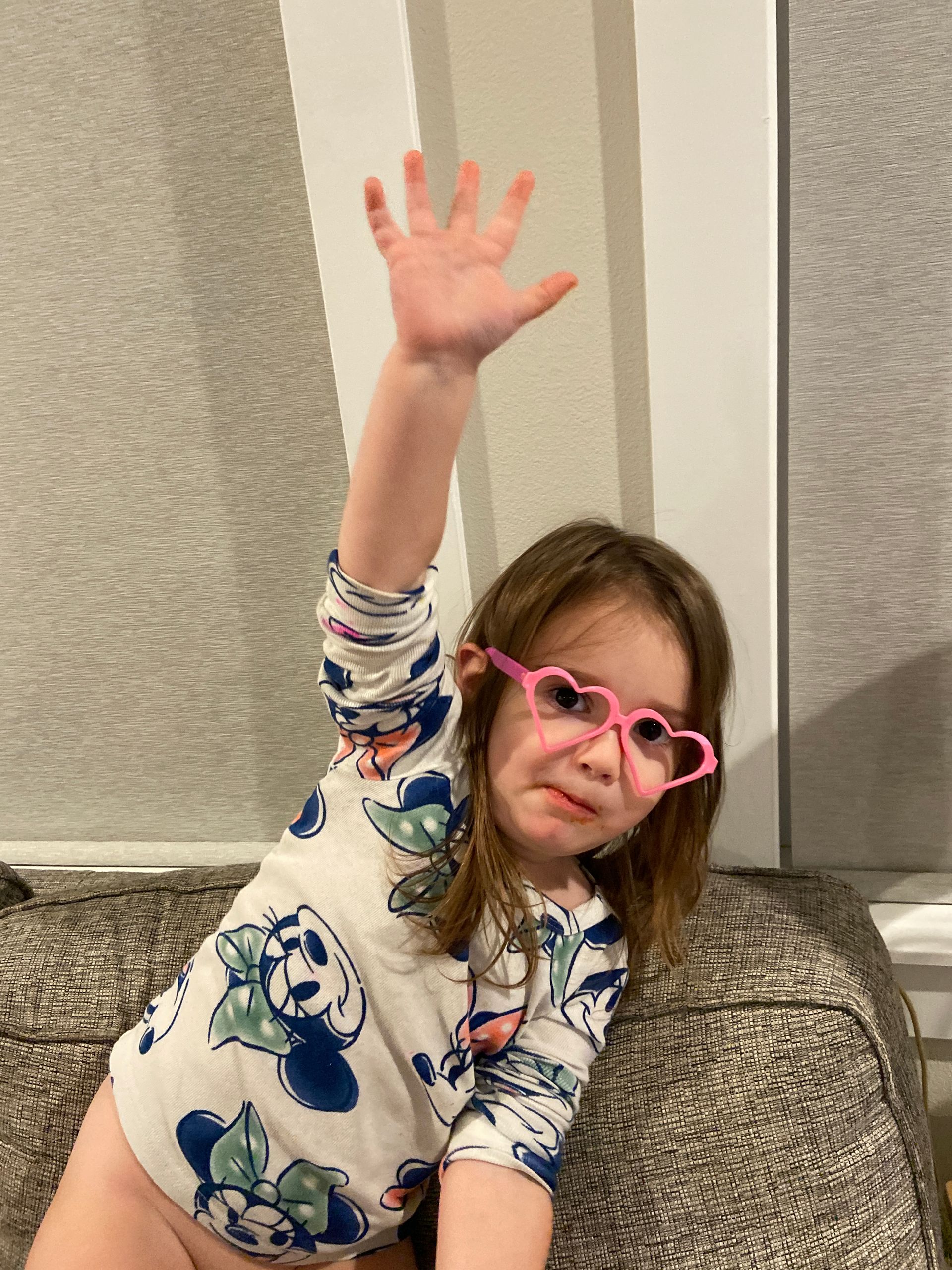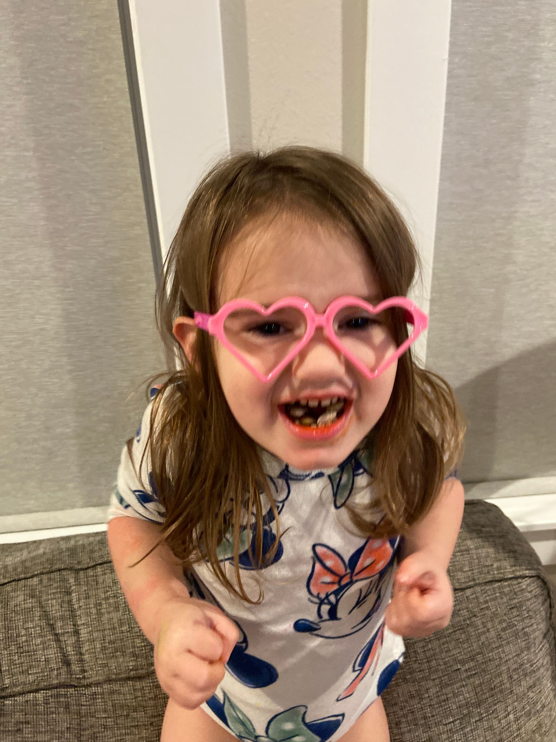 Claire (and even the boys) new favorite show is Gabby's Dollhouse. I caught her dancing to it (with a mouthful of blueberries)!