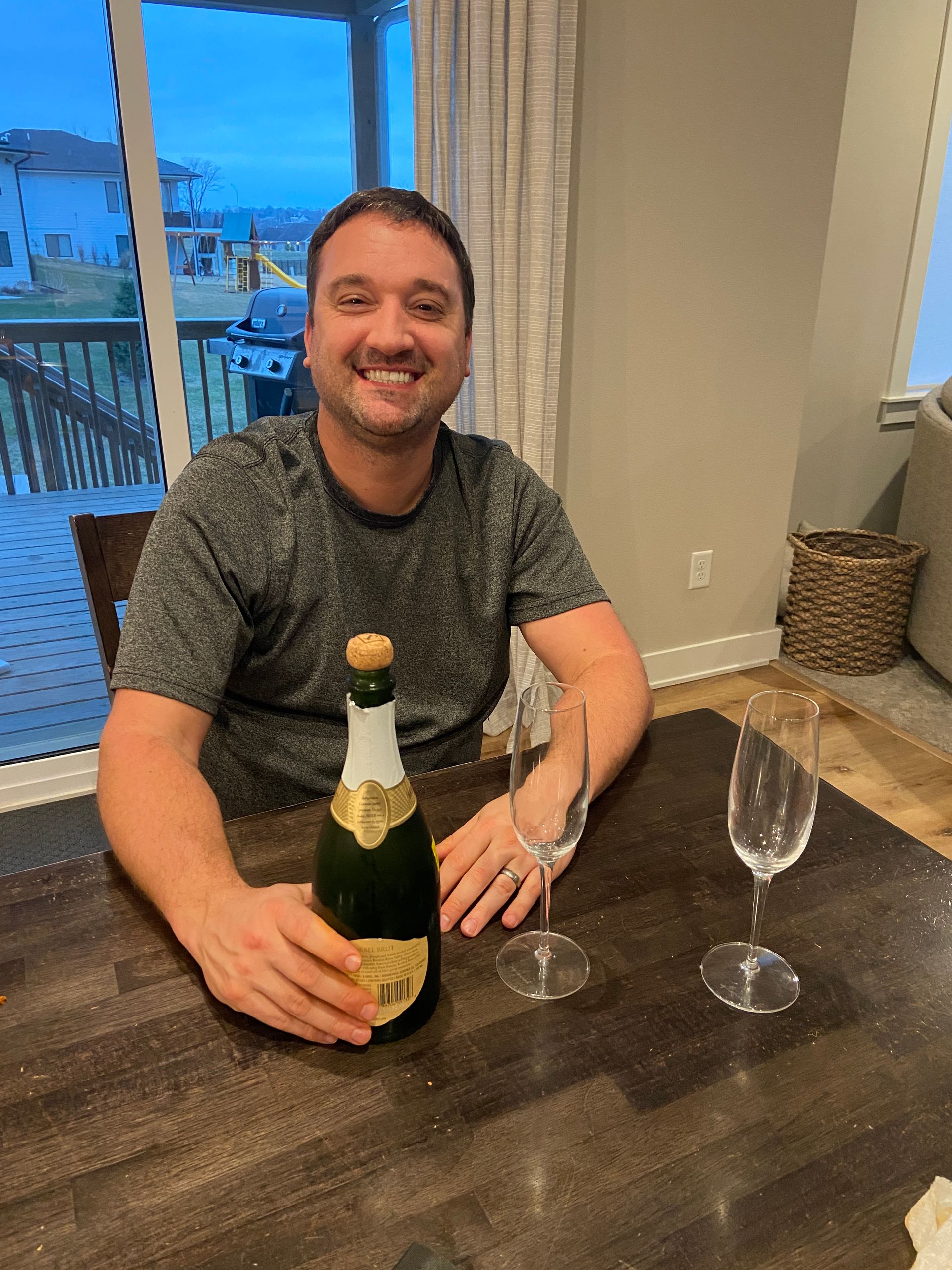 Greg's non compete is officially up! It was something to celebrate so I got him some champagne. He is still going to be cautious but is another step in the right direction!