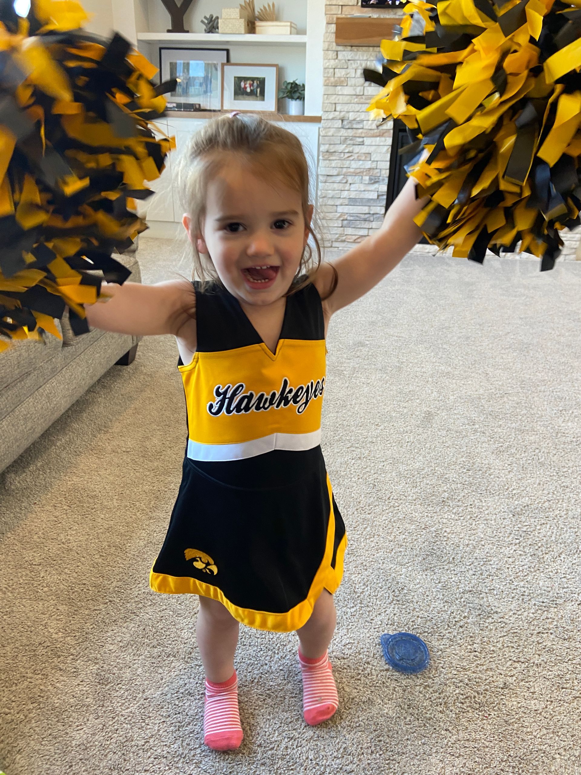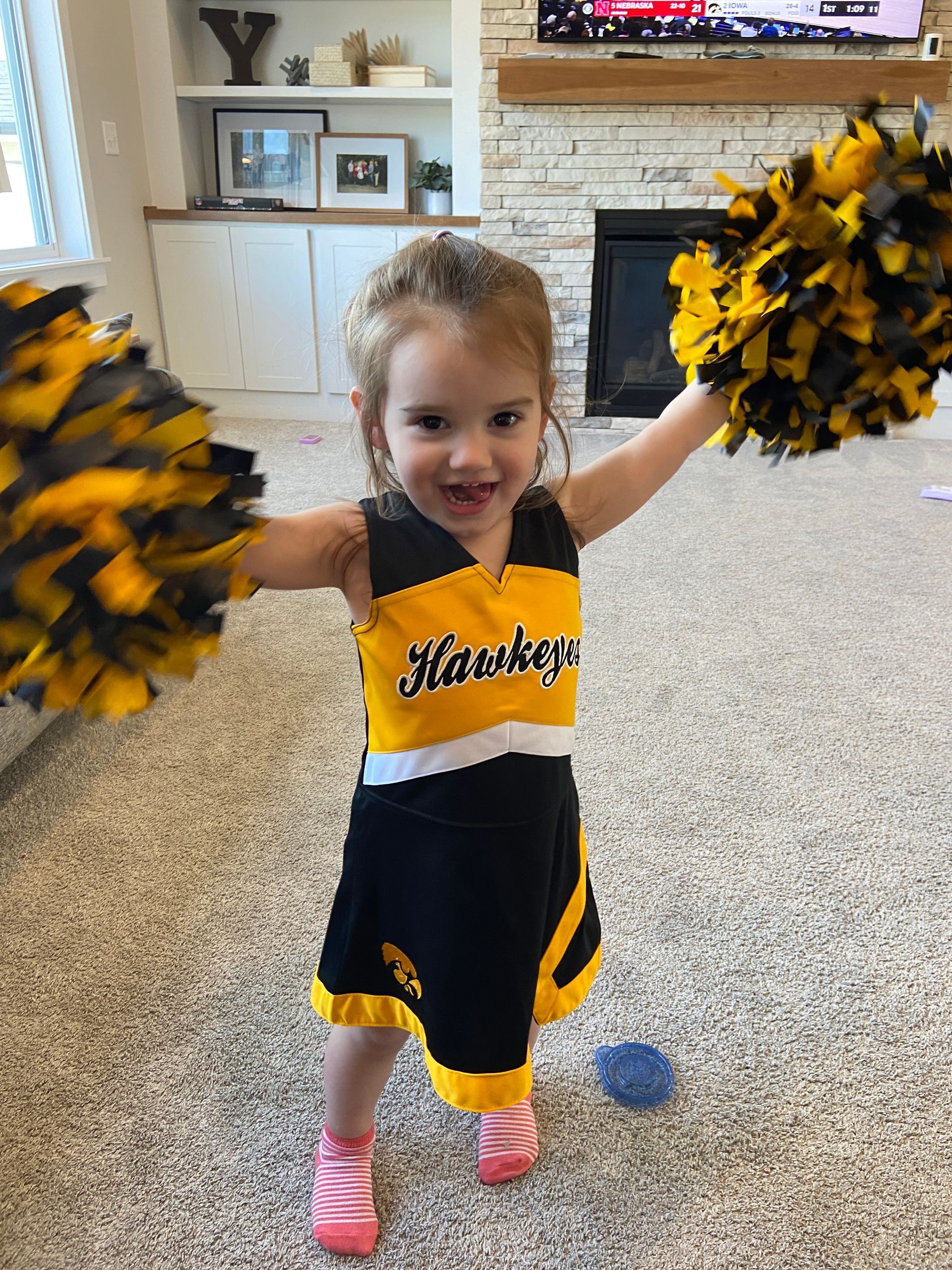 Claire put on her cheerleading outfit for Caitlin Clark's conference championship game! Cutest cheerleader there ever was!