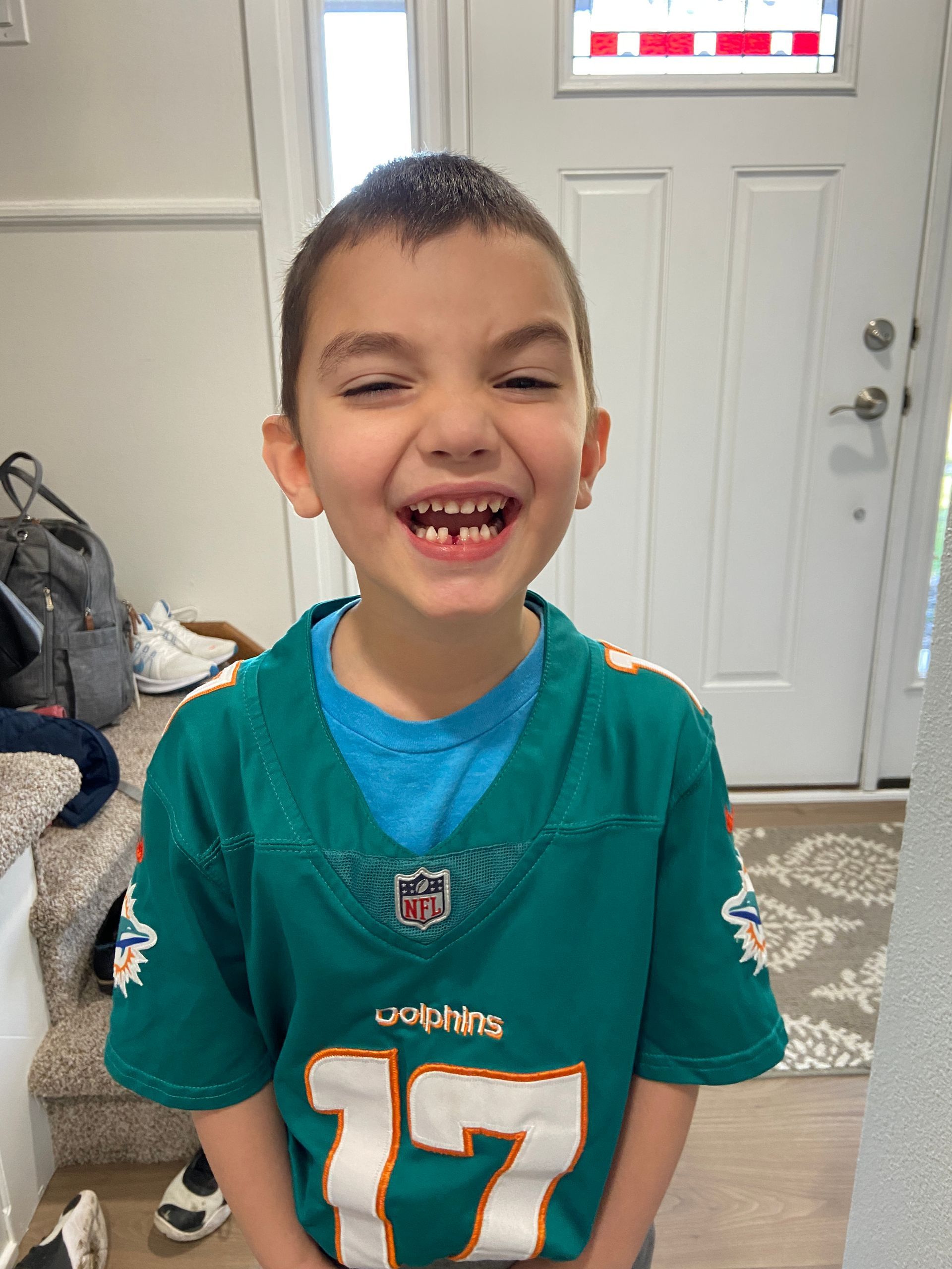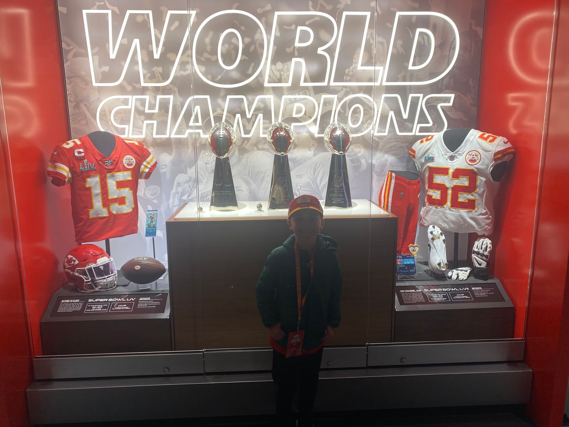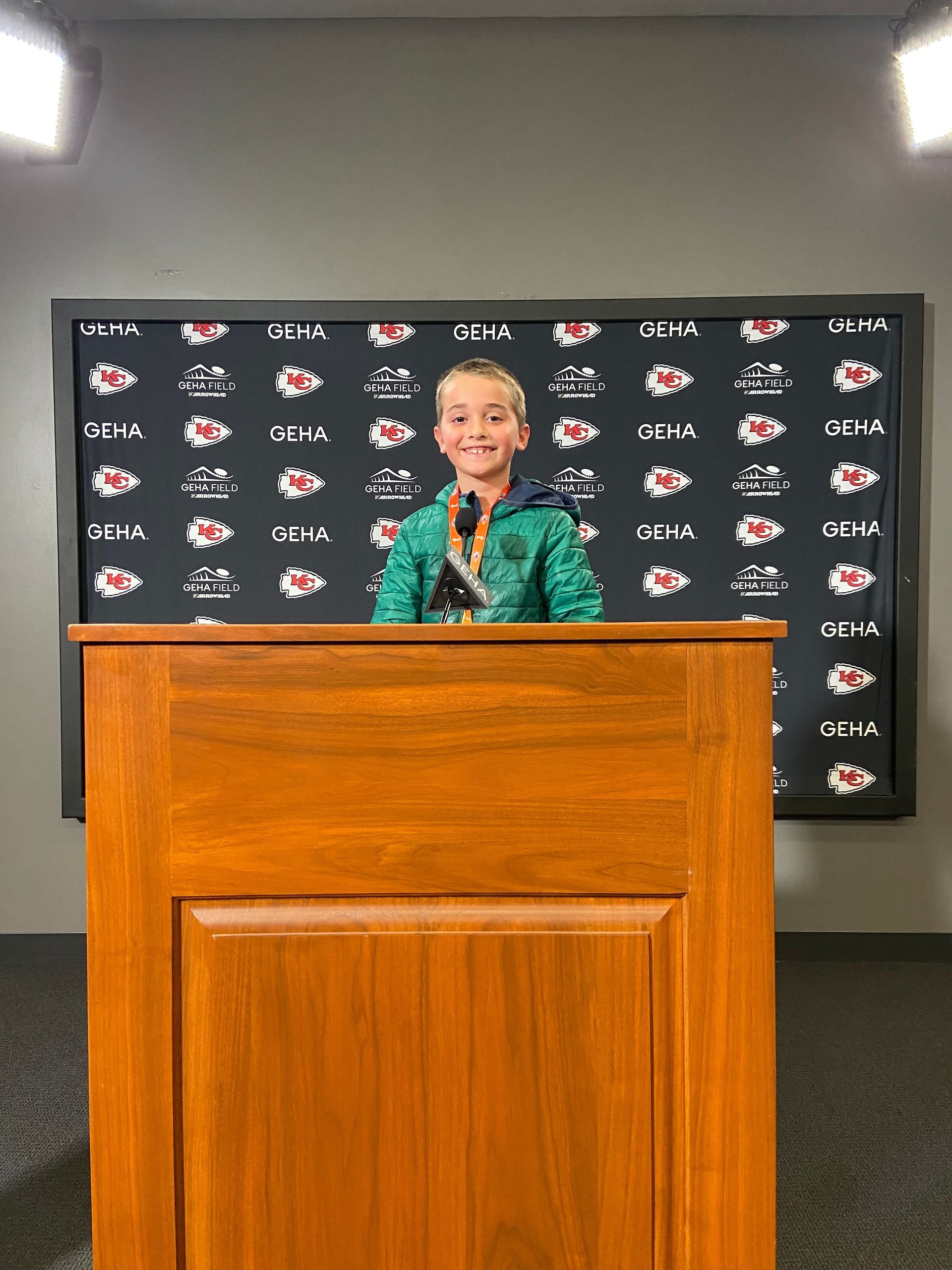 Grant had really good spring conferences with his teacher. He is doing really well in school and Ms. Galligos said he is ready for 2nd grade already! She also said he has a special voice when he is the quarterback so we had to hear it. He wants to sound just like Patrick Mahomes.