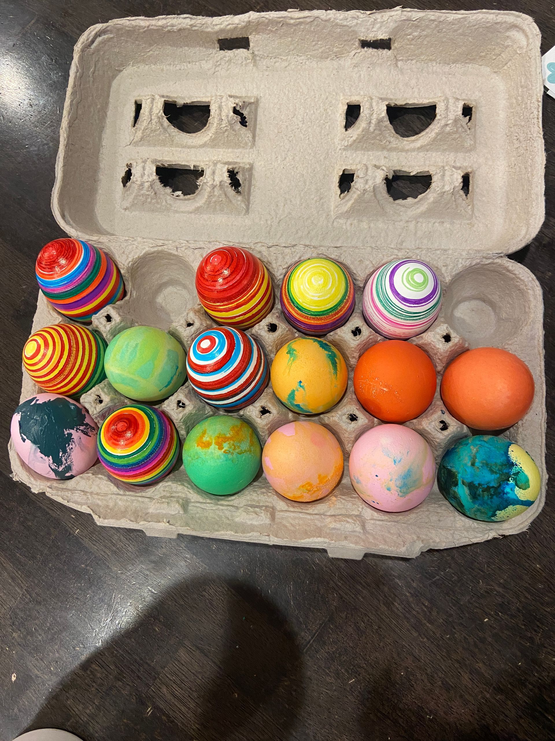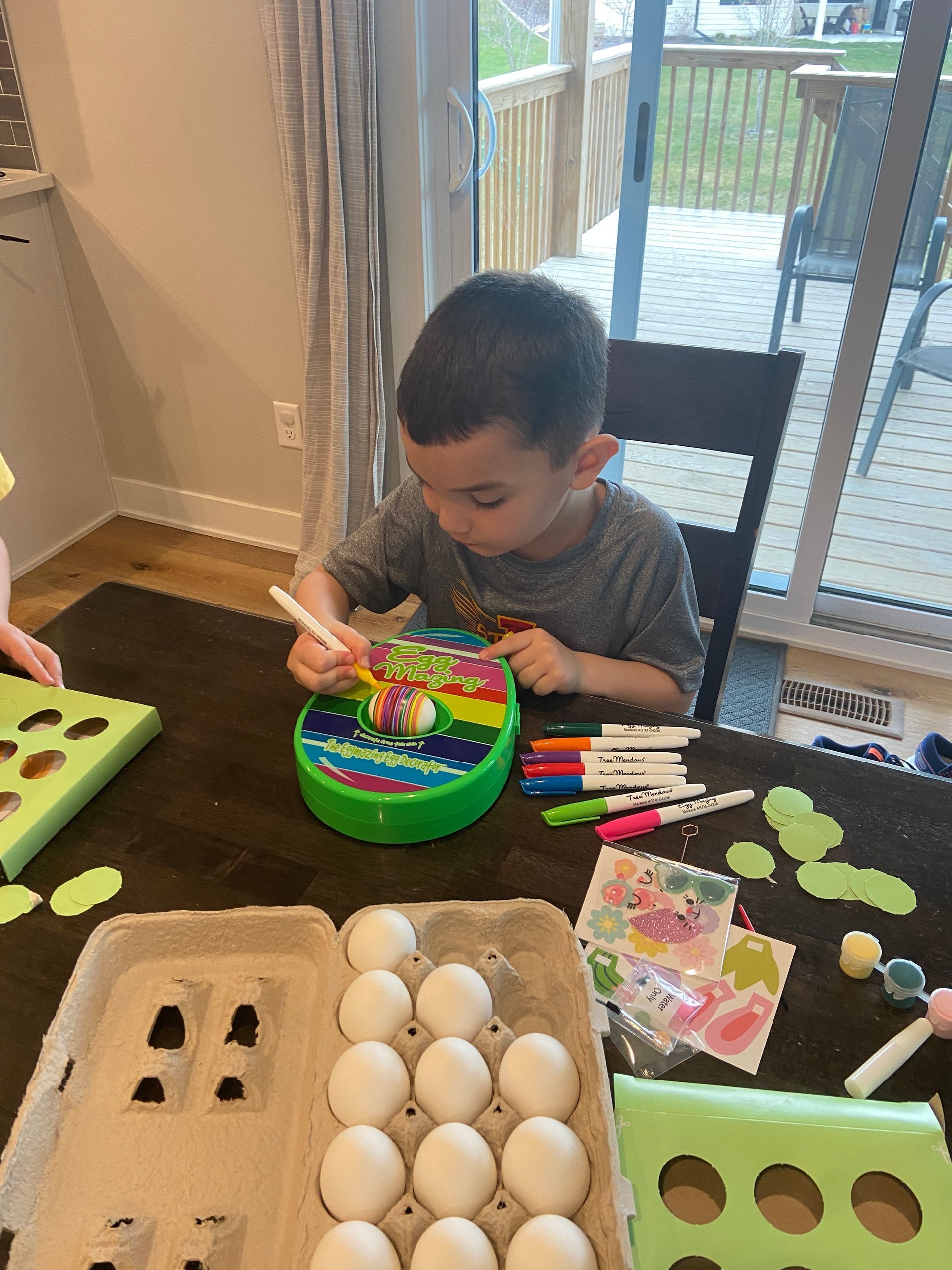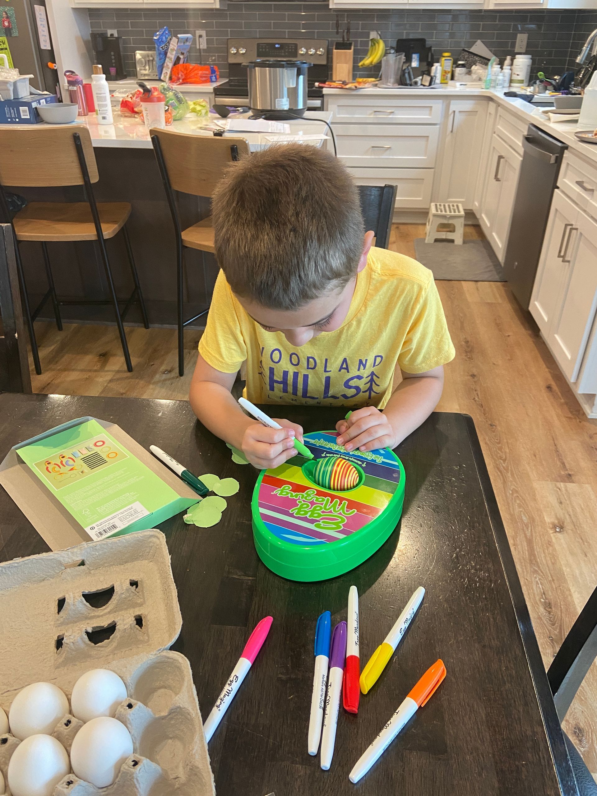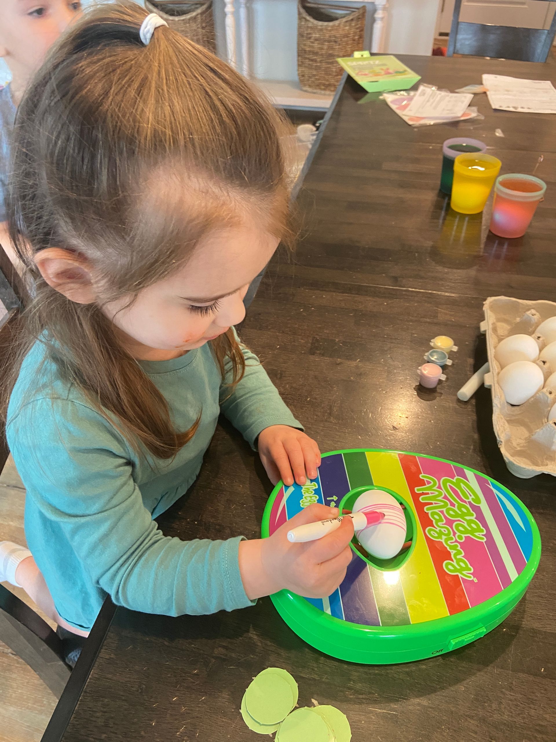 We did so many different type of eggs this year! I got this new egg contraption and the kids loved it. I think this will be our new go to and we will stop dying eggs. I got some other kits that dye the eggs and even some that make them tie dye but the coloring of the eggs was the true hit!