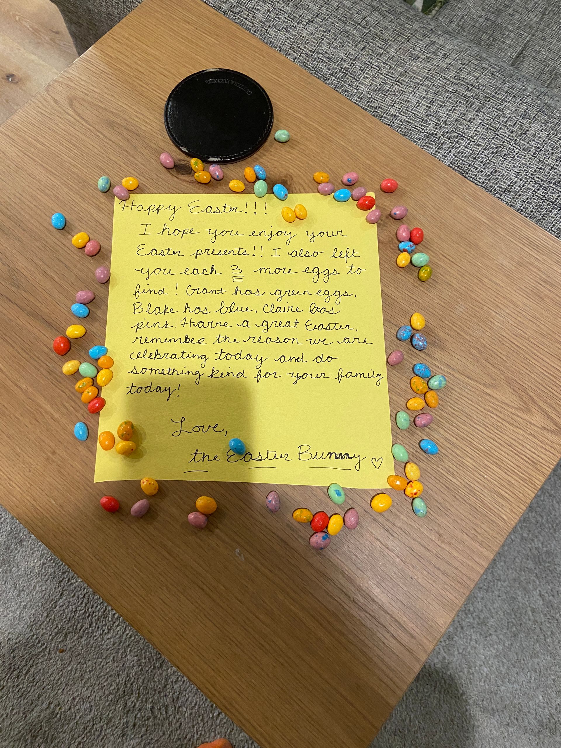 The Easter Bunny came! She did a great job hiding their baskets and the boys got new bikes! They also got way too much candy. We went to church after that and it was packed. Then we went to the Chalik's for Easter dinner. It was a great Easter!