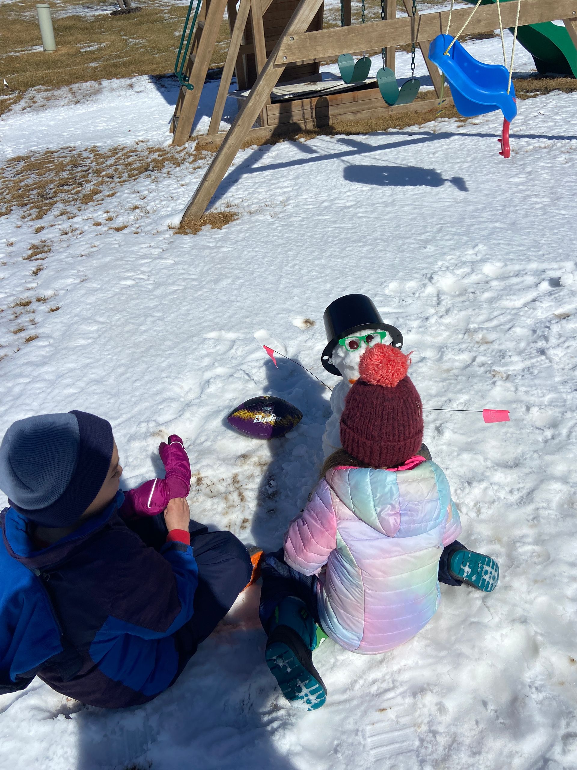 We had another snow day! Our family has been sick with the stomach flu. Blake got sick the day before the snow day so it was nice to have the extra day off for him to recover. The day after the storm was nice outside so it was fun to go and play in the snow and not be freezing! We made a cute small snowman!