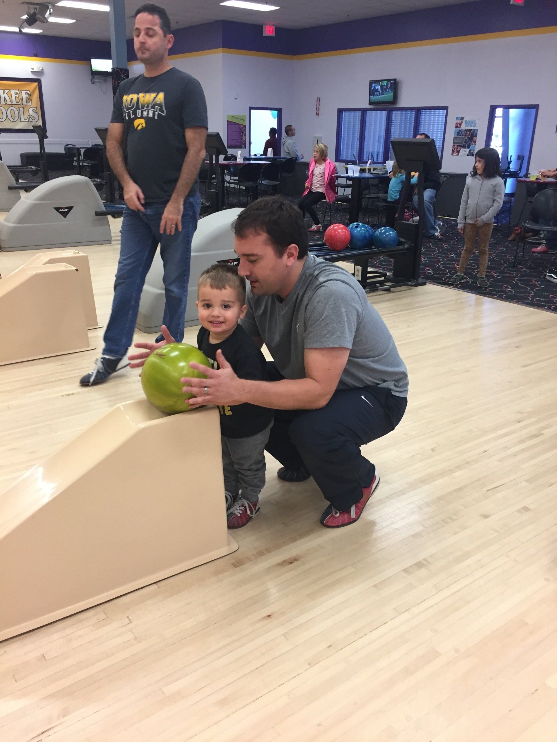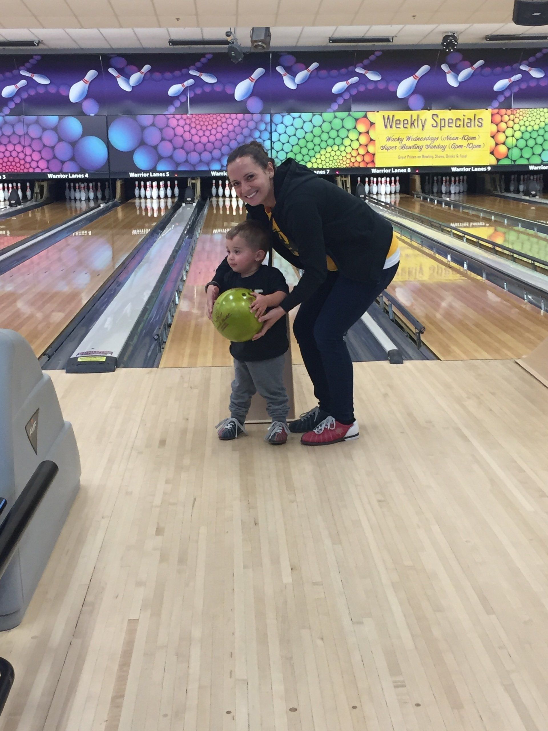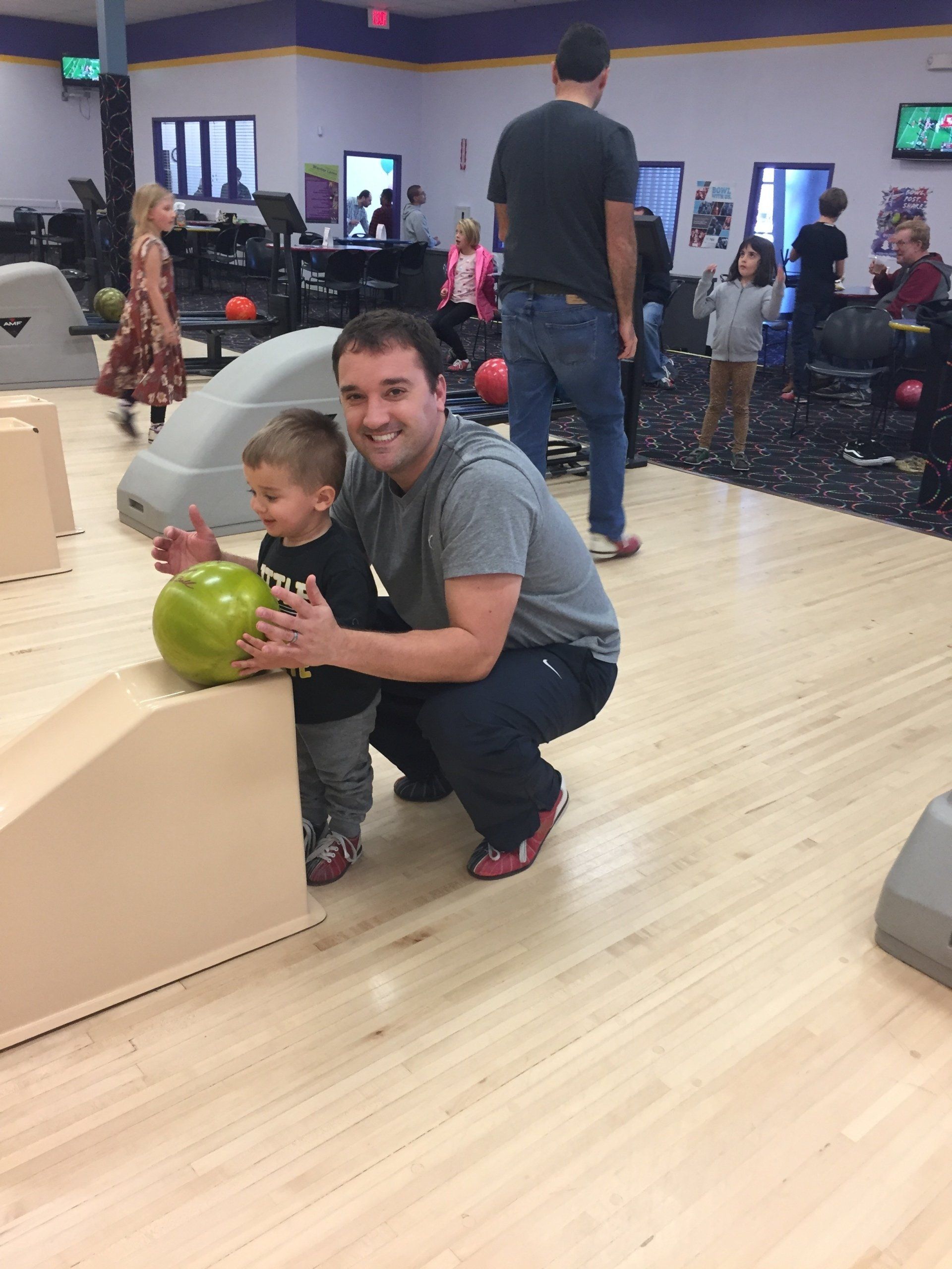We wanted to do something fun with Grant so we took him bowling and he loved it! He didn't understand the concept of taking turns so we just let him play for us as well!