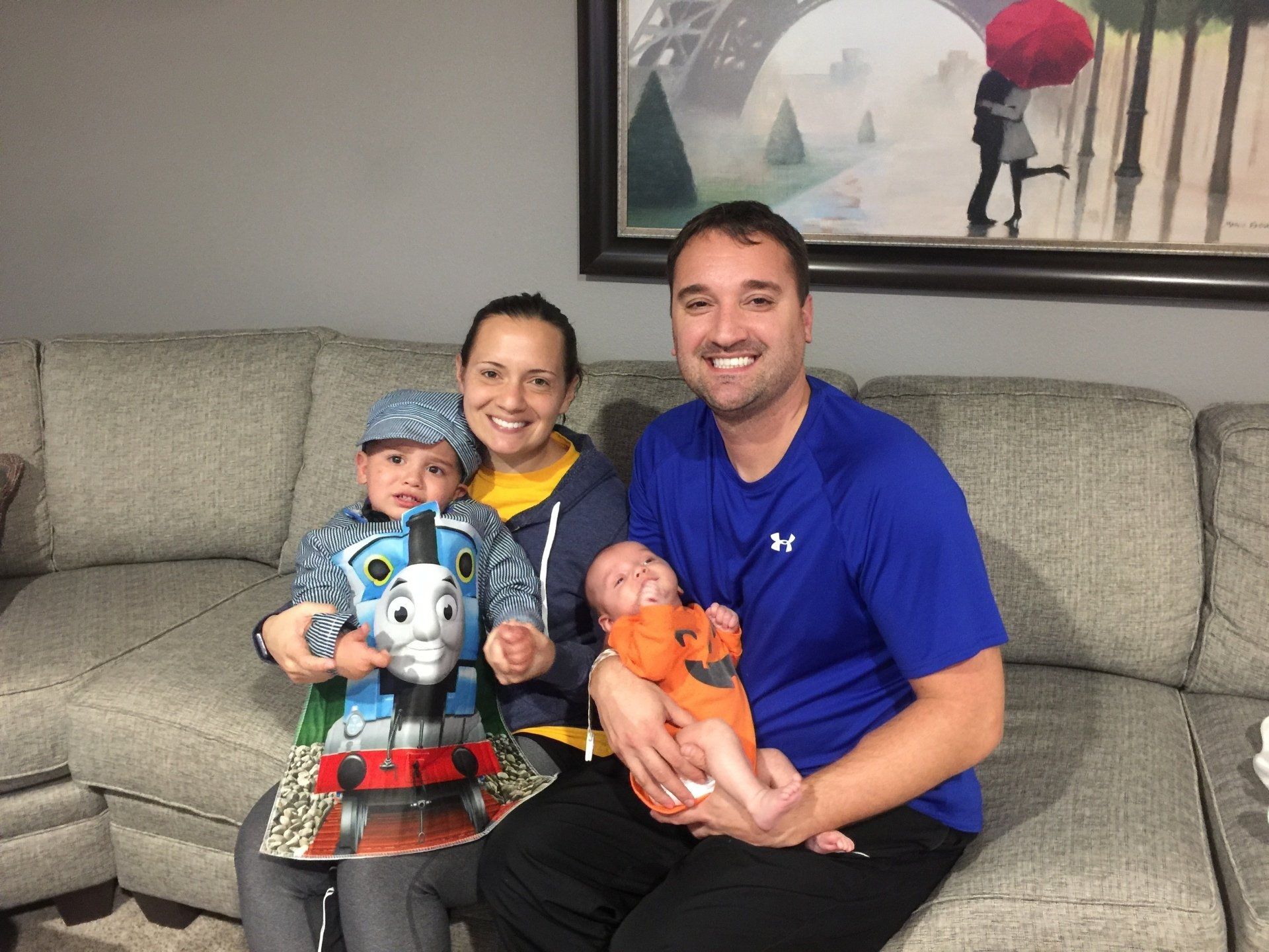 This year for Halloween Nana so graciously offered to watch Blake and hand out candy at our house so we could take Grant around the neighborhood. His favorite thing of all time right now is trains and Thomas, so of course, he dressed up at Thomas! The cutest Thomas and pumpkin I have ever seen. :)